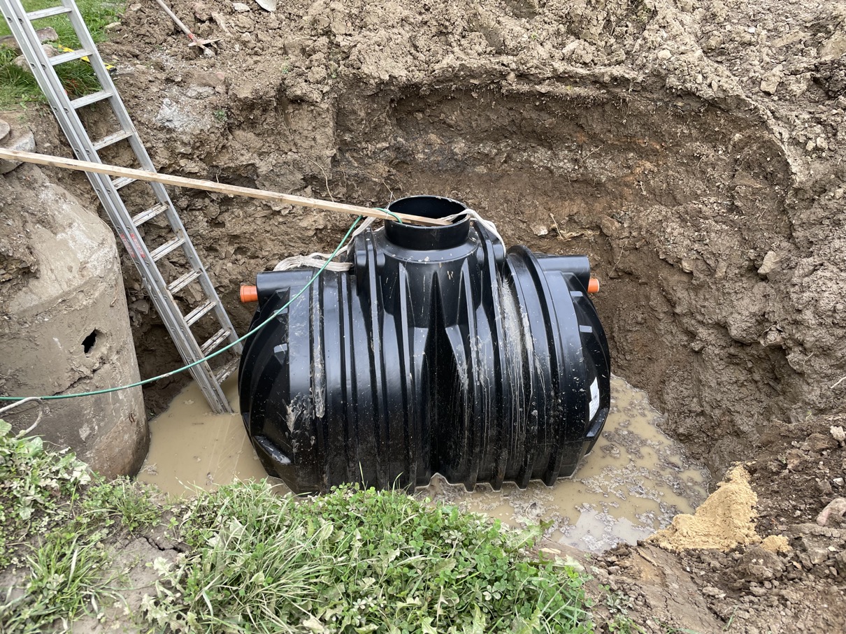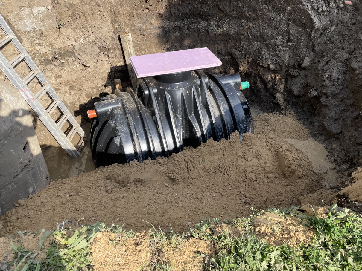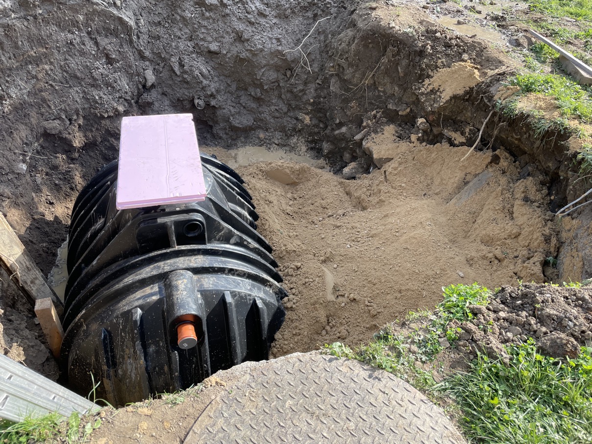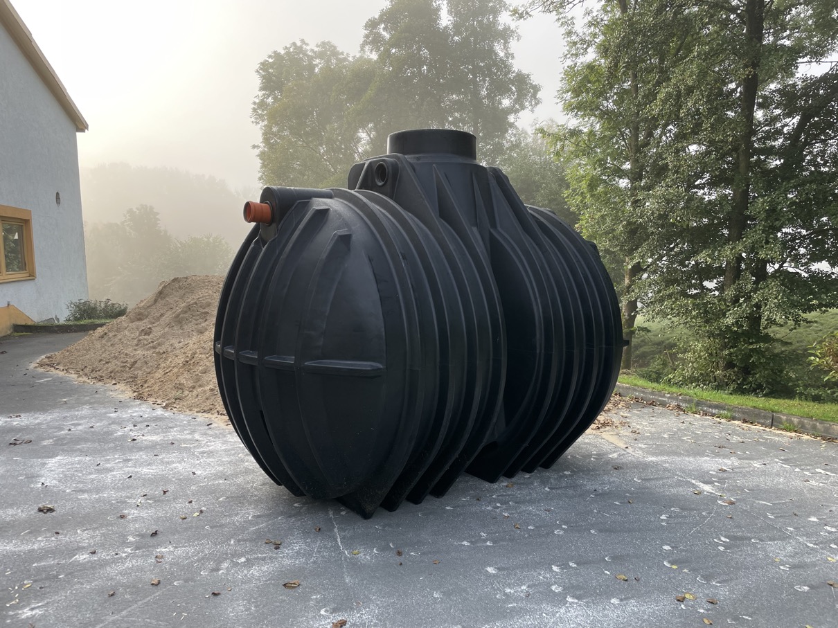 Das Thema ist nur, dass ich eine ziemlich tiefe Grube ausheben muss, da die Einläufe in meiner jetzigen Auffanggrube 1,40 m unter Erdgleiche liegen - nimmt man den Einlauf (oben links) und das die gesamte Höhe des neuen Behälters, so muss die Grube mindestens 3,80 m tief ausgebaggert werden -> eine Herausforderung ohne Abspunten!