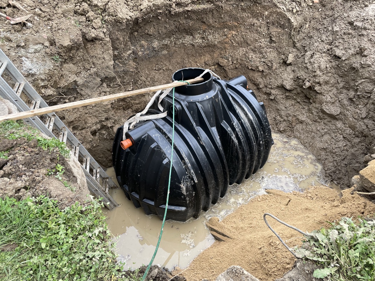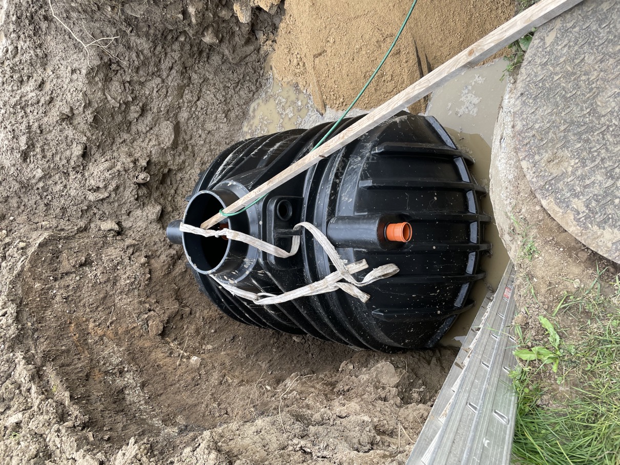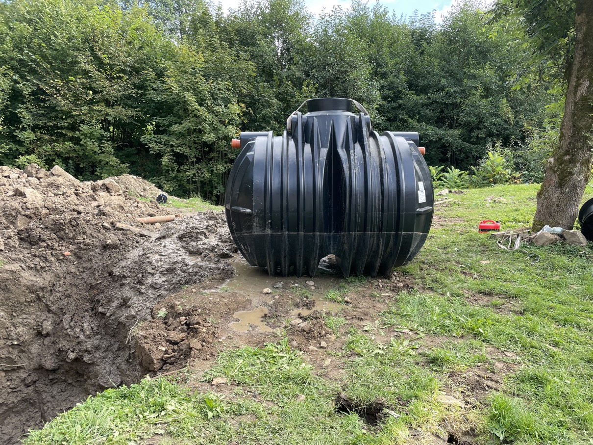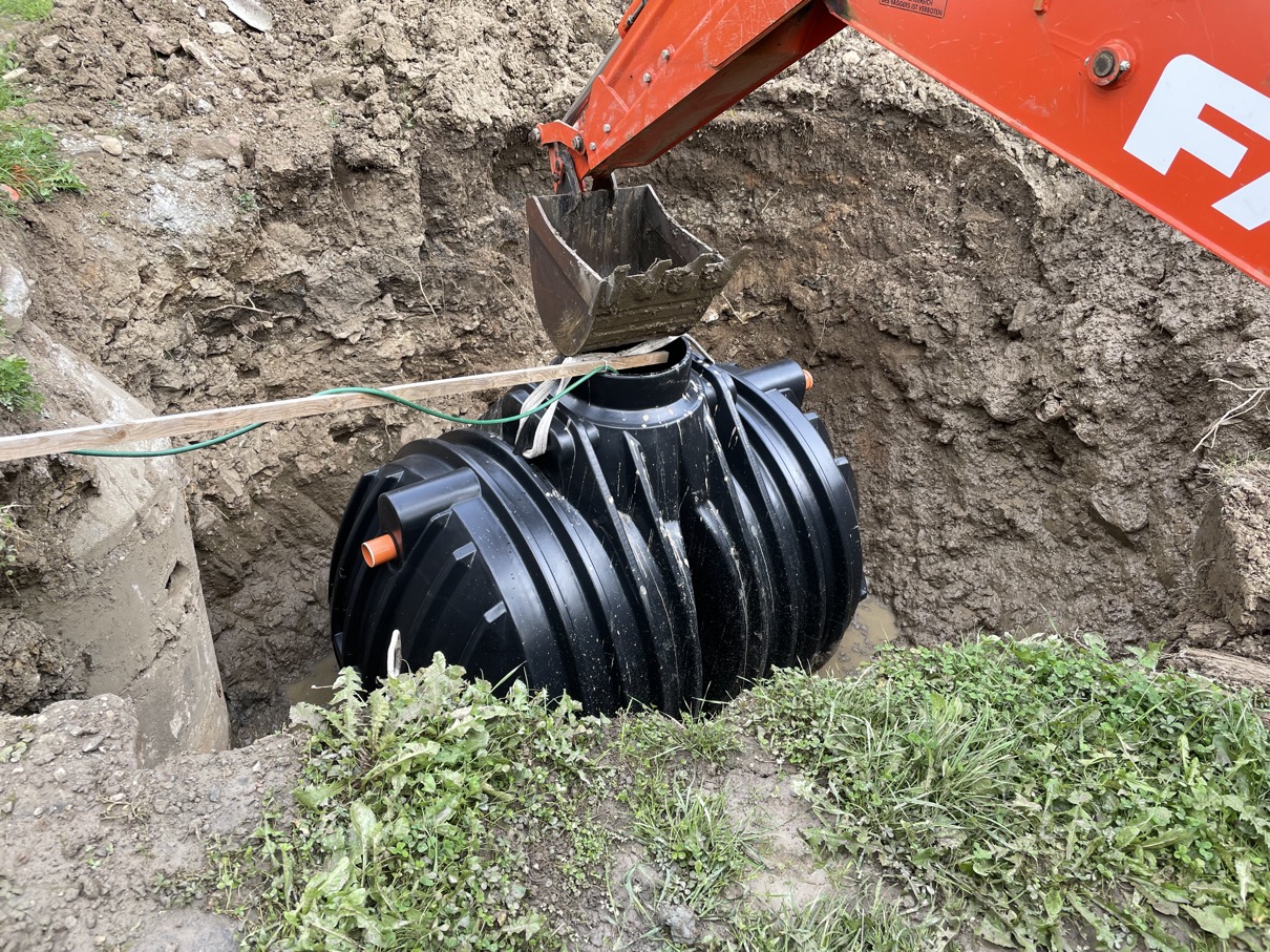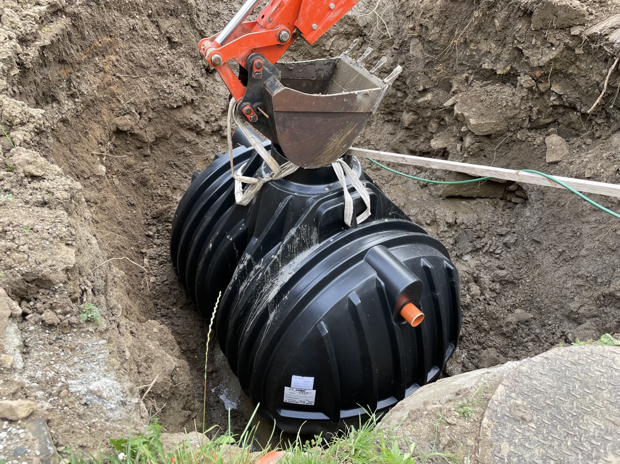 Das Thema ist nur, dass ich eine ziemlich tiefe Grube ausheben muss, da die Einläufe in meiner jetzigen Auffanggrube 1,40 m unter Erdgleiche liegen - nimmt man den Einlauf (oben links) und das die gesamte Höhe des neuen Behälters, so muss die Grube mindestens 3,80 m tief ausgebaggert werden -> eine Herausforderung ohne Abspunten!
