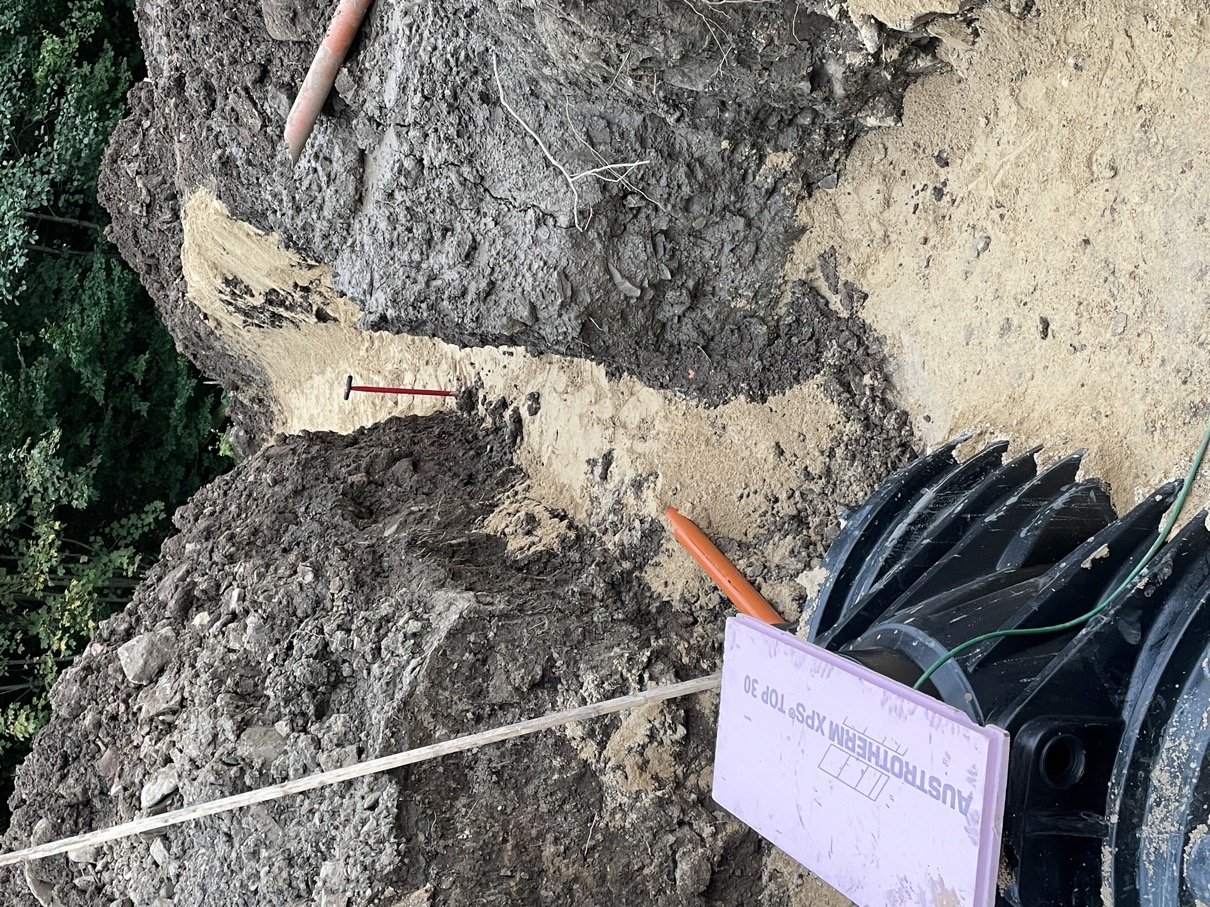 Da die maximale Länge der Druckluftschläuche dieses SBR-Systems auf 10 m beschränkt ist, musste Sohnemann auch noch einen neuen Standplatz für den Installationsschrank finden und Platz für das notwendige 100er-Leerrohr ausheben.