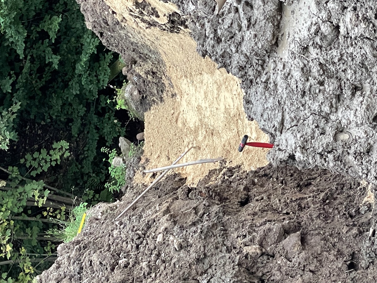 Leider brechen auch die Wände ein (Nachteil, wenn nicht gespuntet) -- aber nicht immer ist "Profizeugs" verfügbar. Dann werde ich nochmals Nachbaggern müssen, bevor ich den Tank einsetzen kann. |