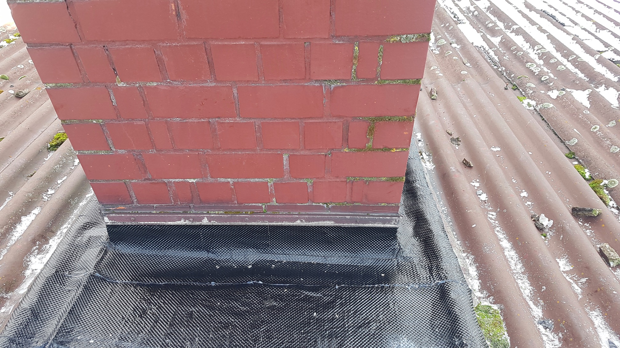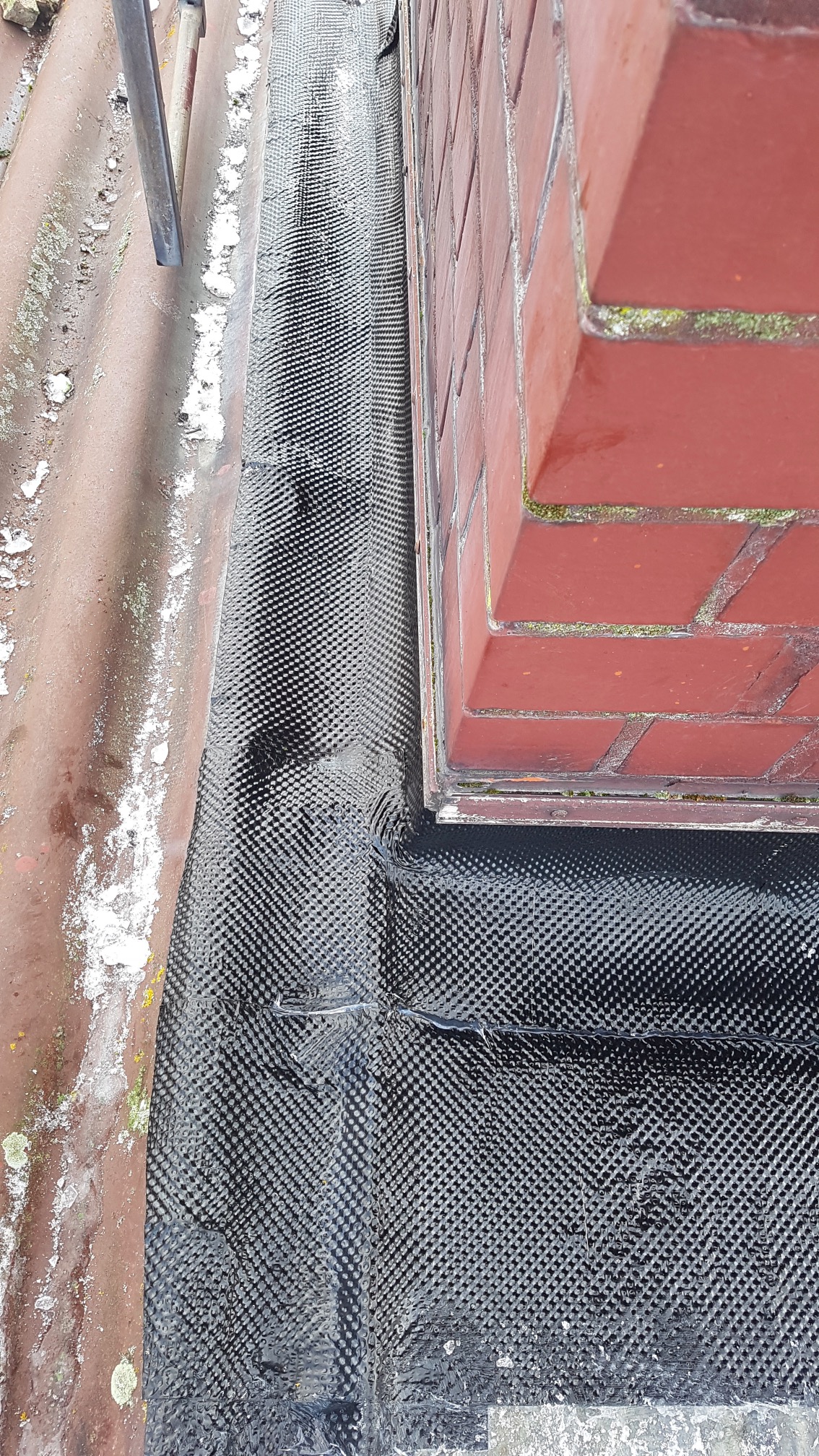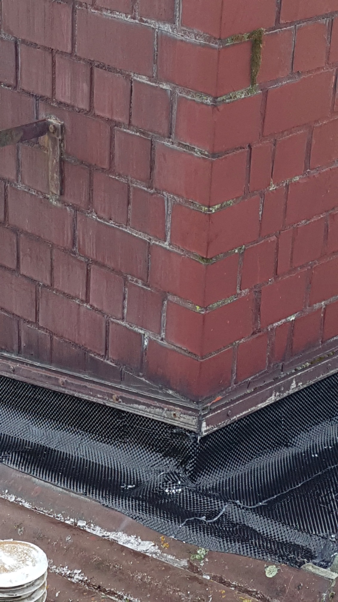 Eine dauerhafte Reparatur läßt sich nur mit Walzblei herstellen, die dann aber auch wieder teuer ist .... und insbesondere bei diesem Riesenkamin; hilft aber nichts, muß gemacht werden - das Ergebnis läßt sich sehen: