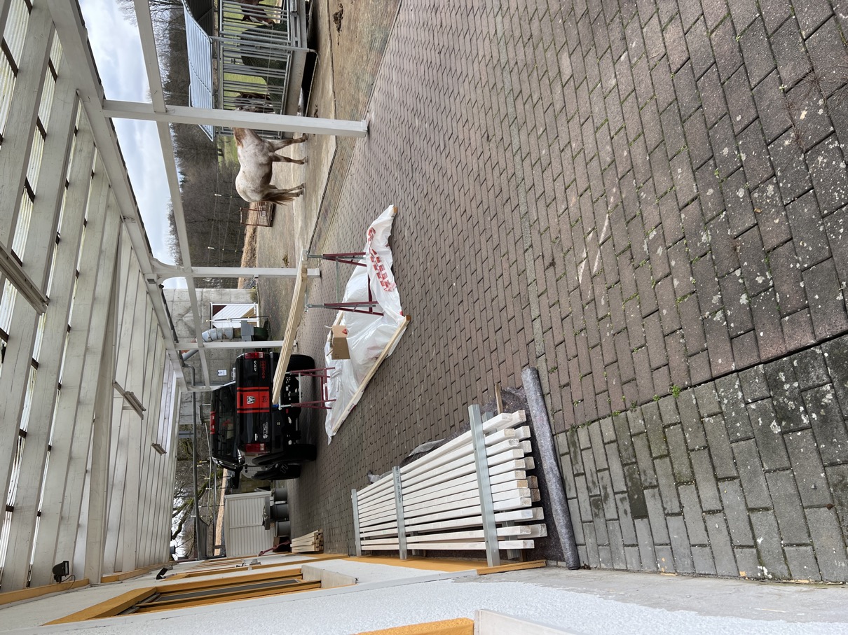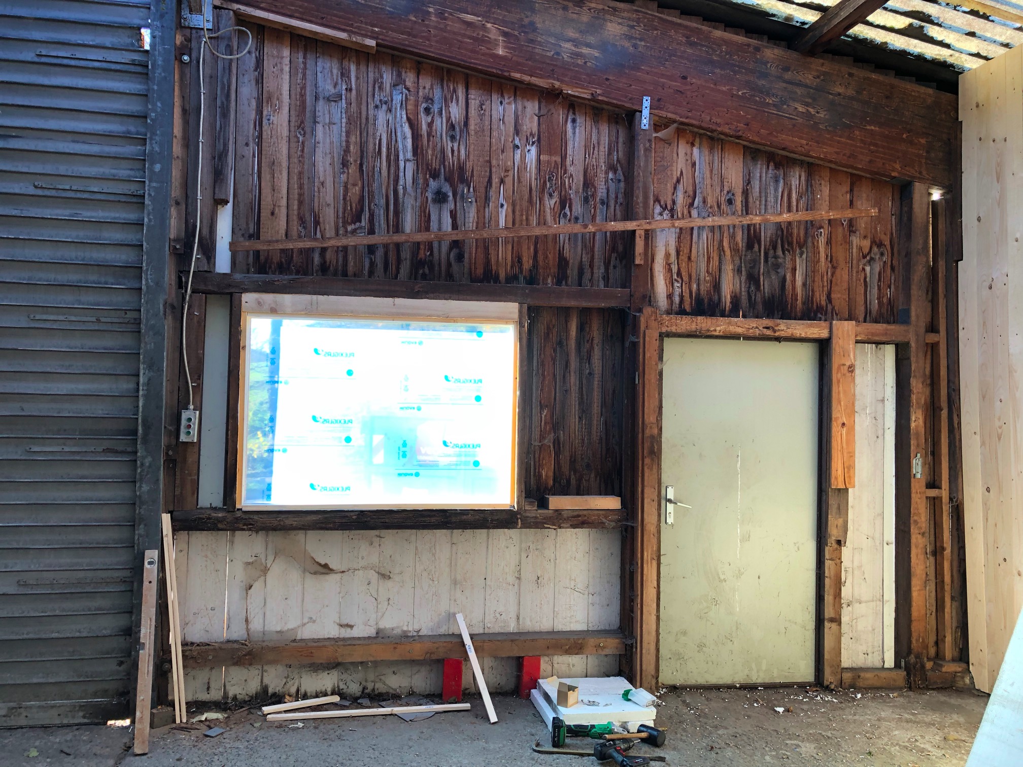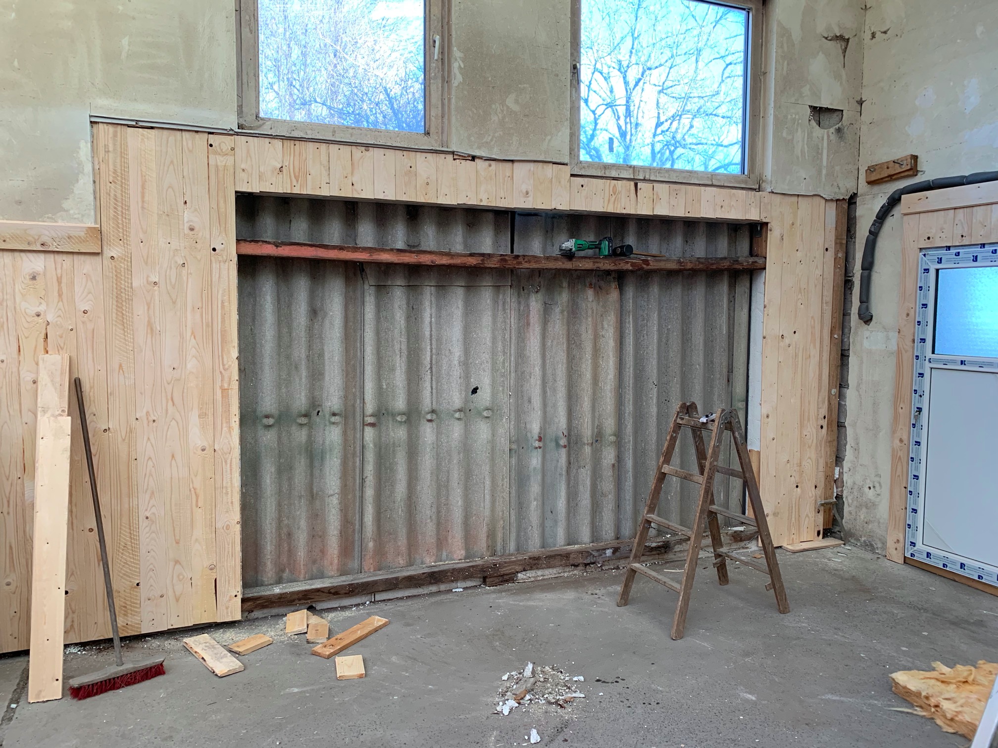 Es gibt ja auch noch "gröbere" Arbeiten zu tun: Ausgang zum künftigen Paddock aus dem zu etablierenden Offenstall als Beispiel. Schwierigkeit hier - das Ganze so zu stabilisieren, dass die beiden Fenster über dem künftigen Ausgang während des "Umbaus" nicht herunterfallen.