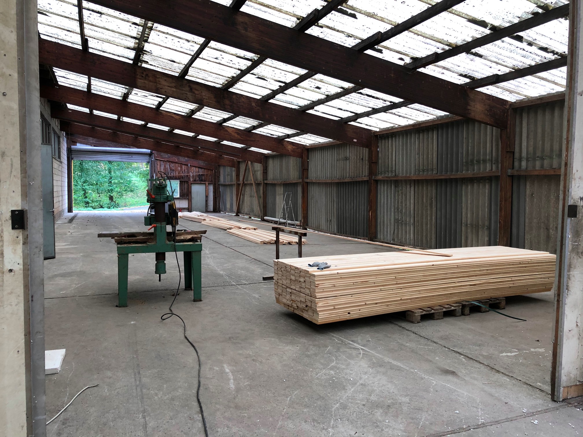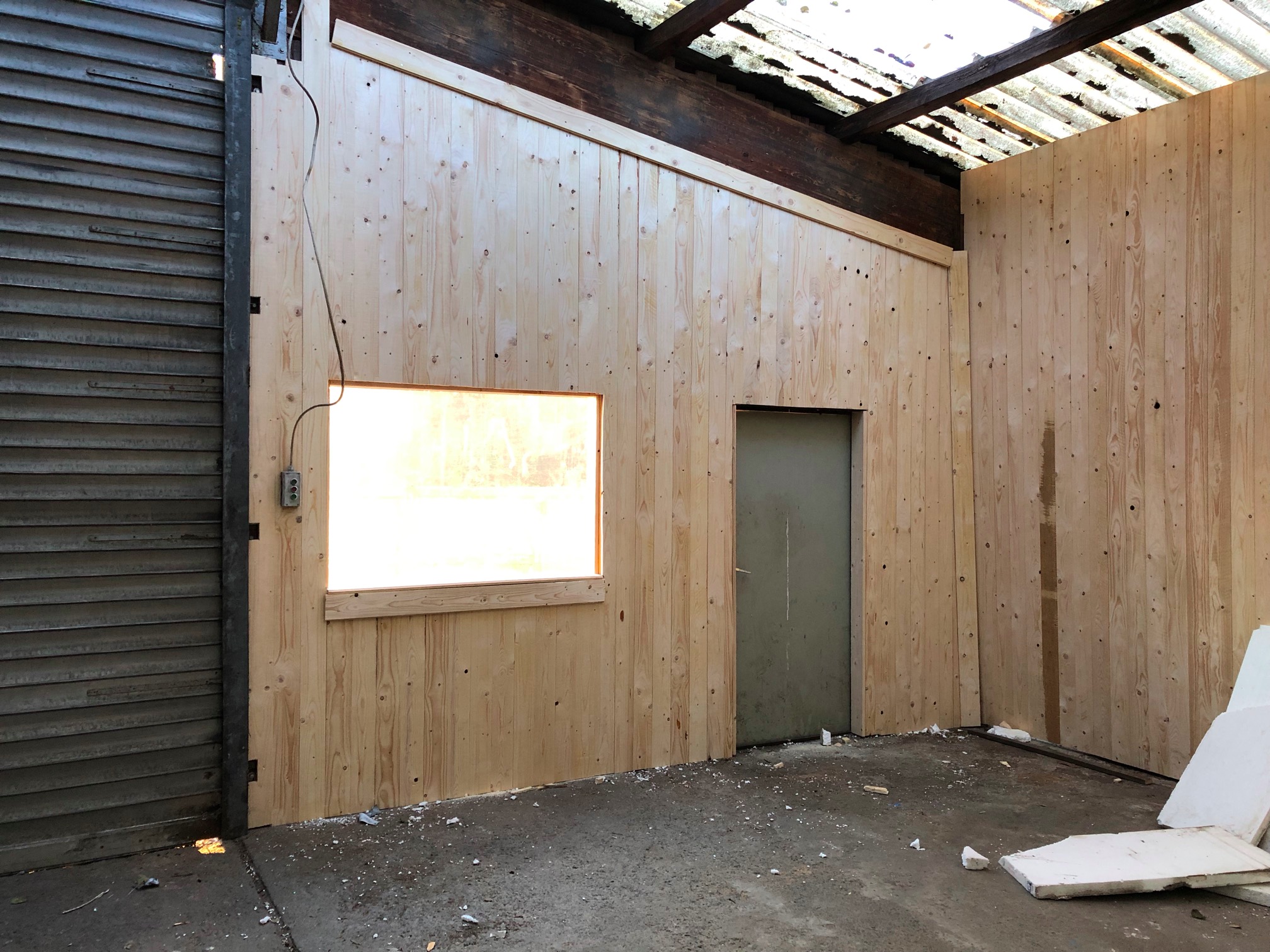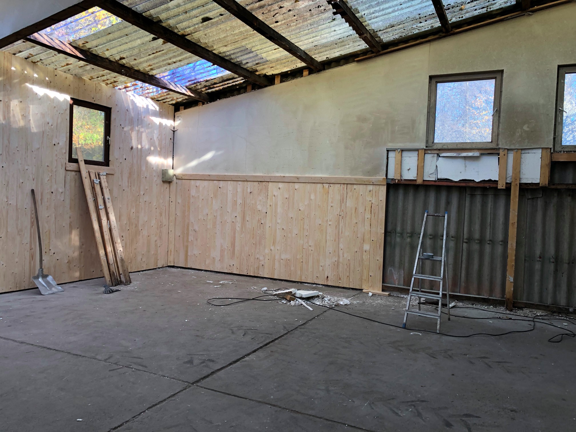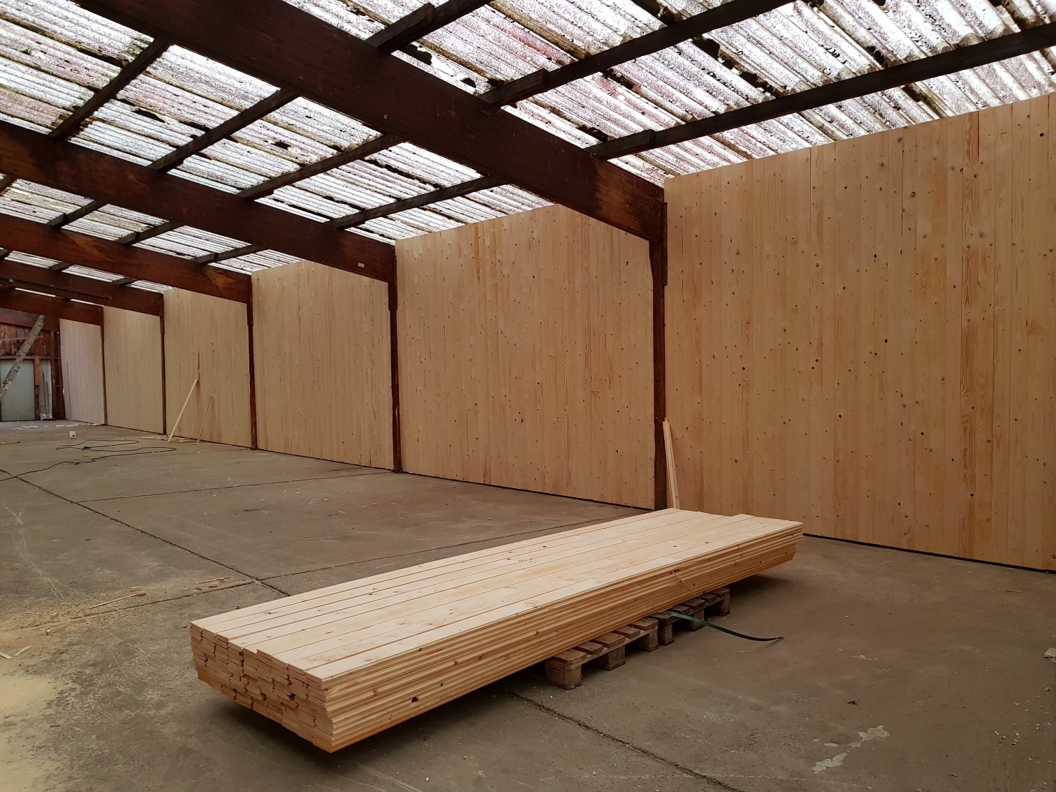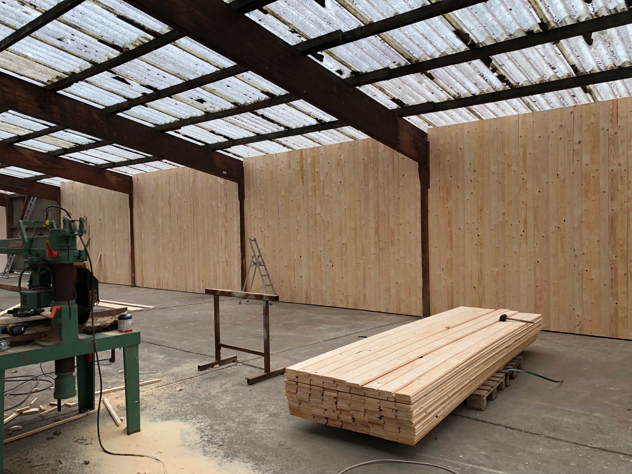 Es beginnt mit der Holzverkleidung (Rauspund) der Außenwand im künftigen Offenstall: