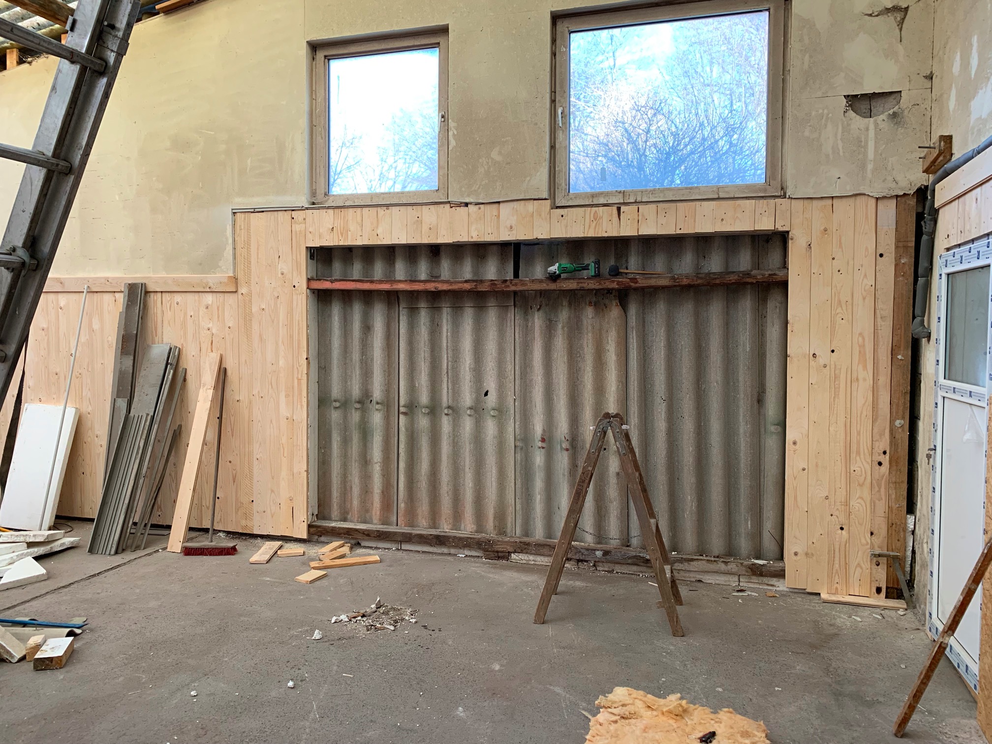 Und, da das "Loch" vom künftigem Offenstall zur Futter-/Sattelkammer ebenfalls für die Tiere verschlossen bleiben soll (