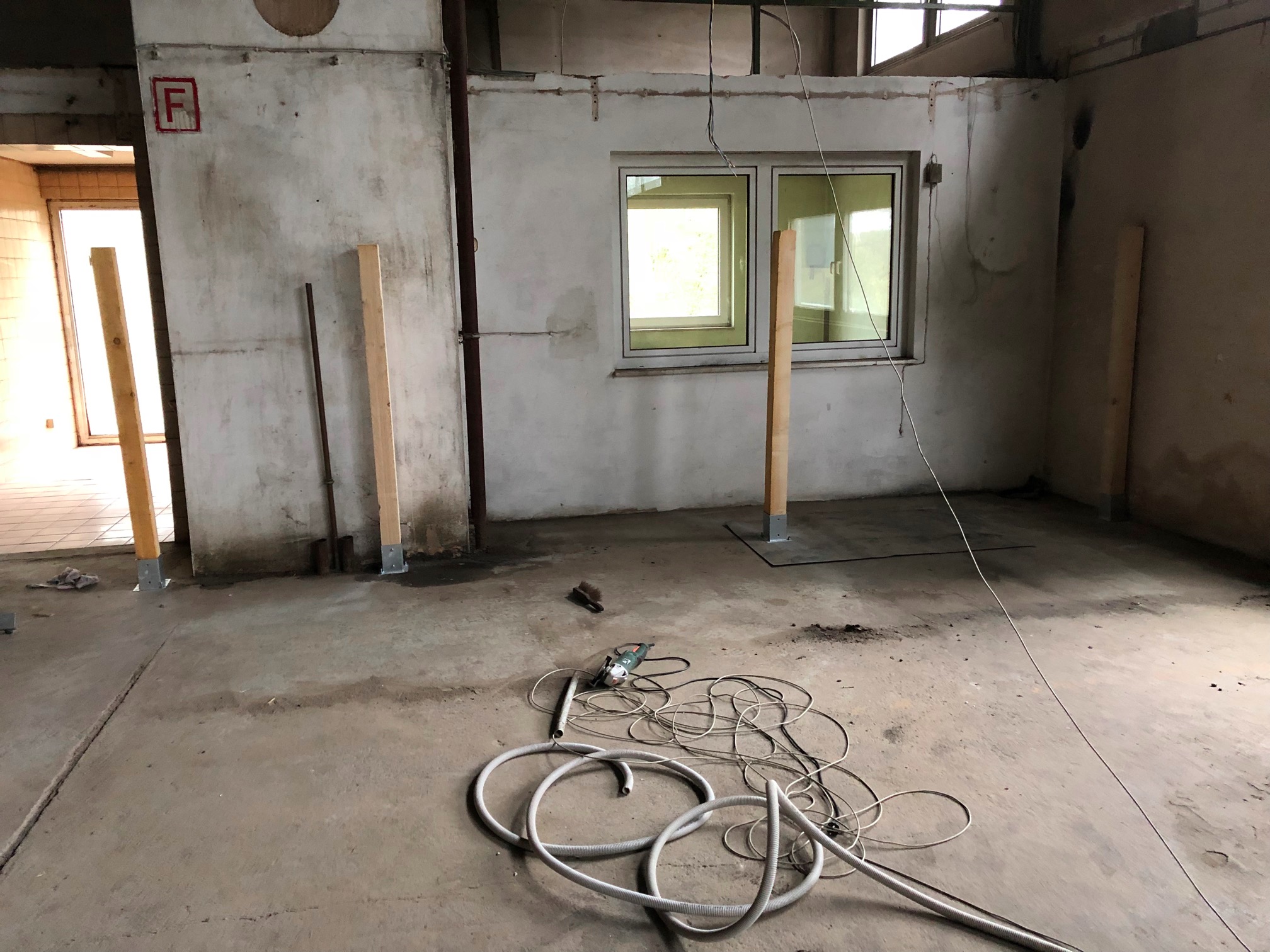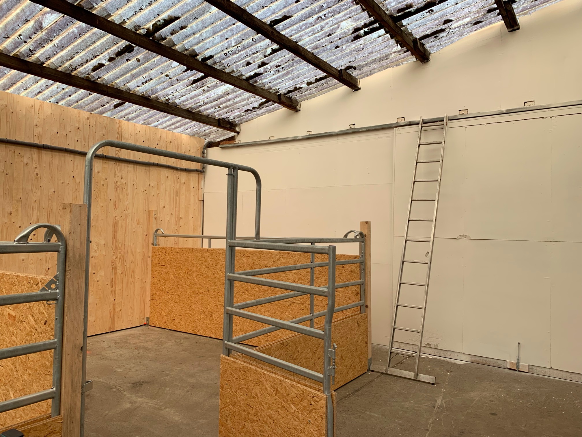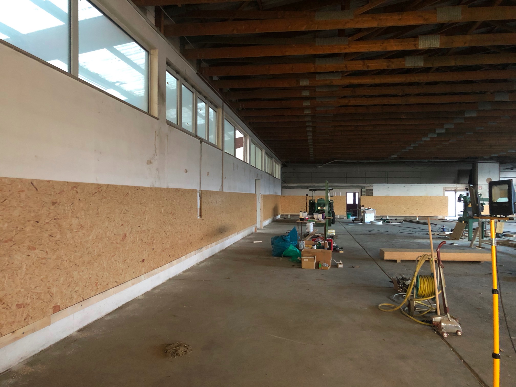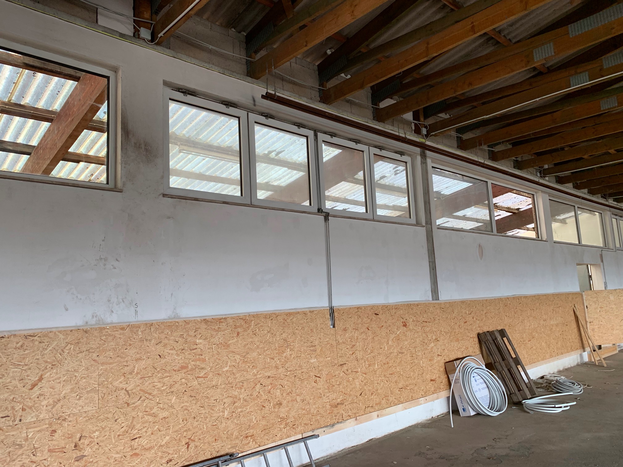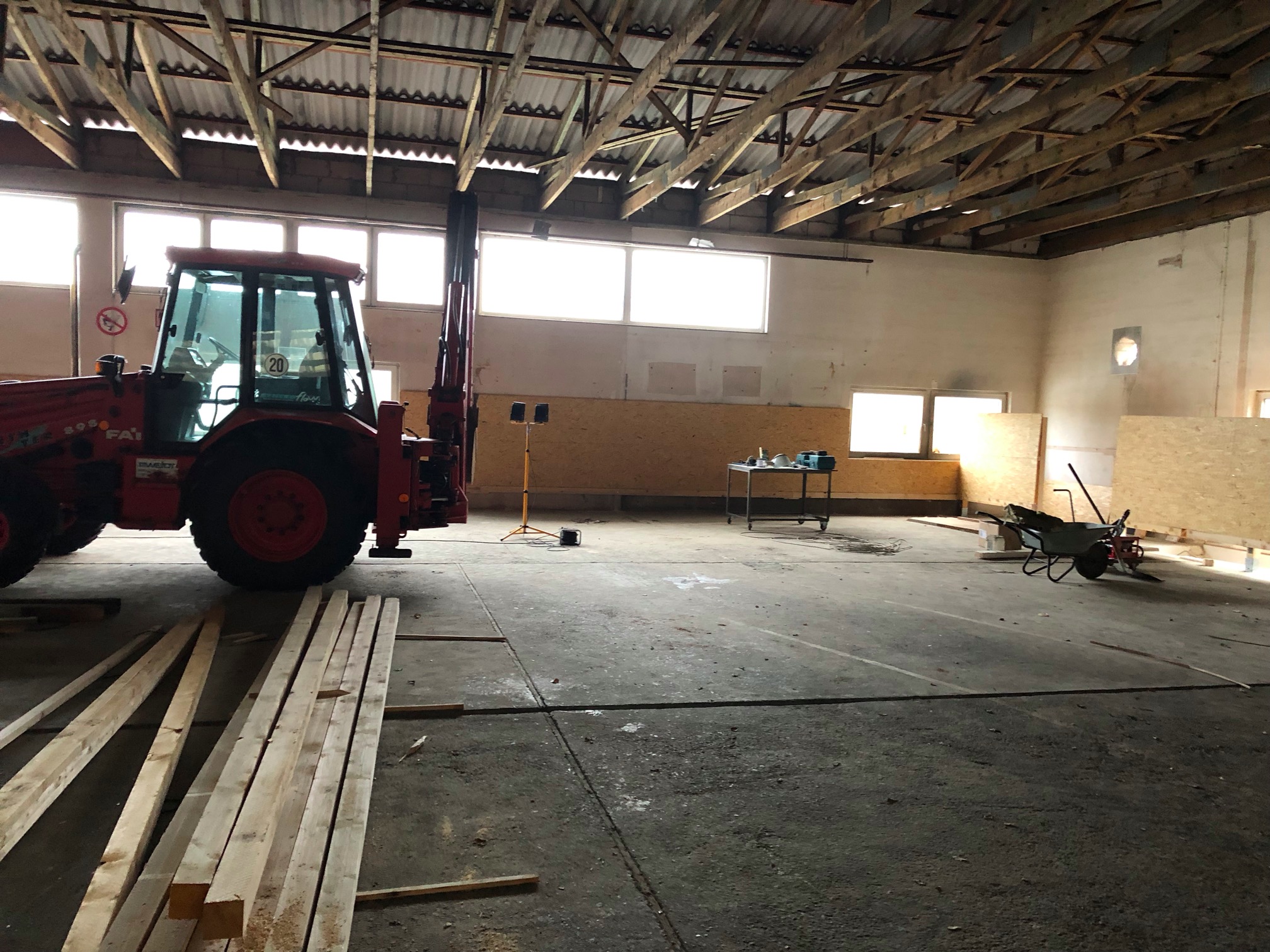 Aus der Industriehalle mit Anschleppung soll ja mal eine Bewegungshalle mit Stallung und gleichzeitigem Zugang zum Offenstall werden - dafür ist noch richtig viel zu tun.
