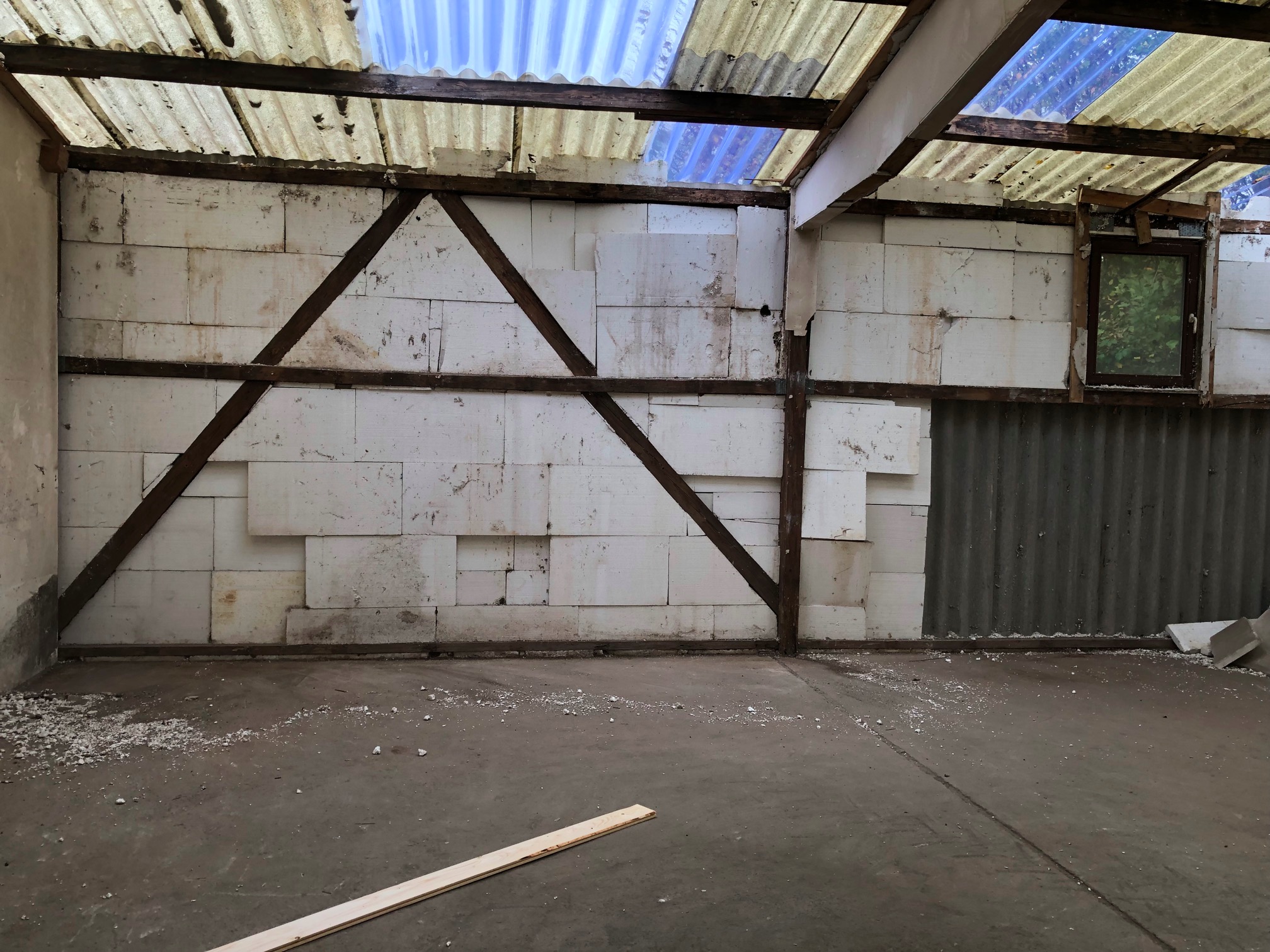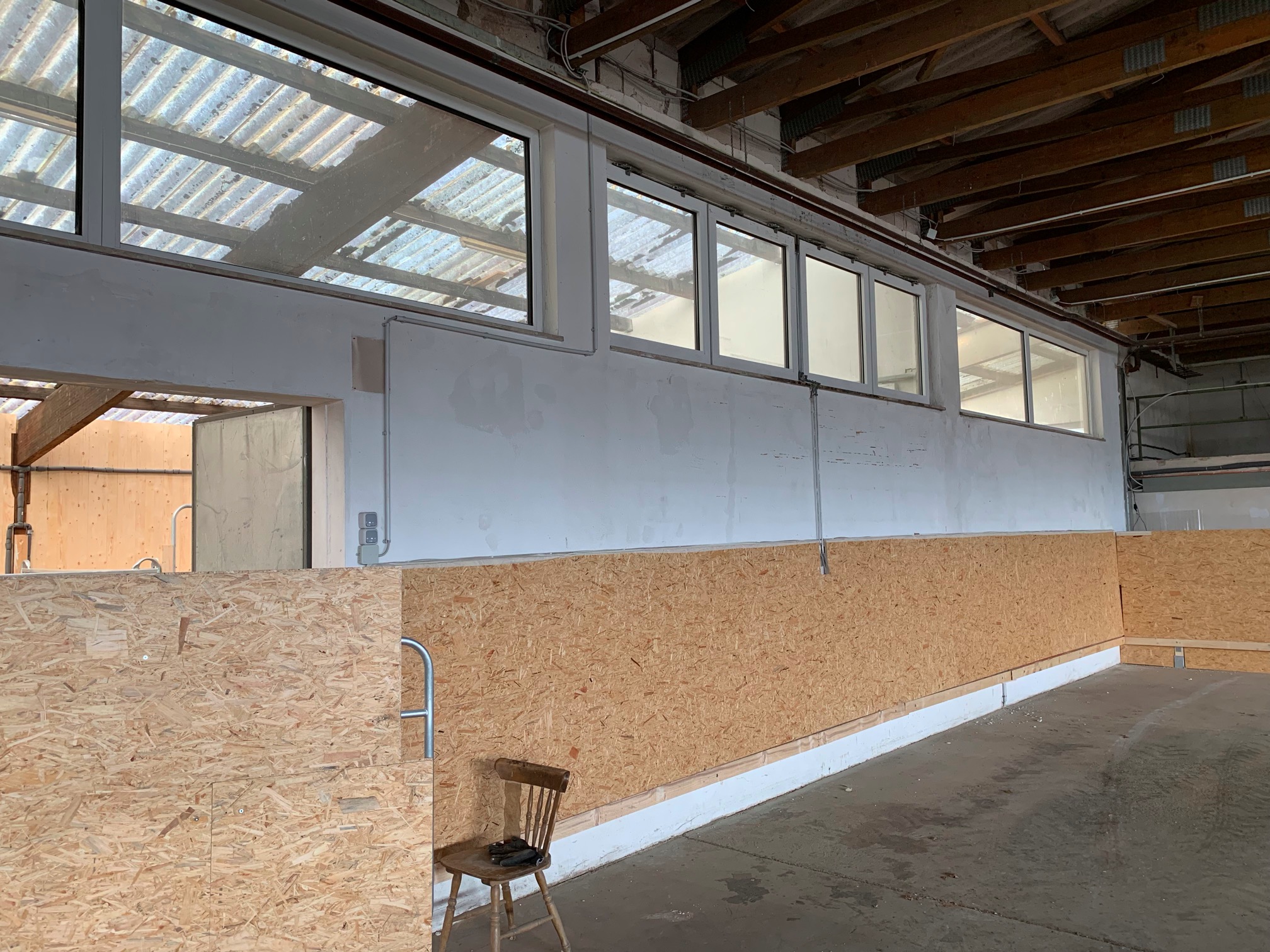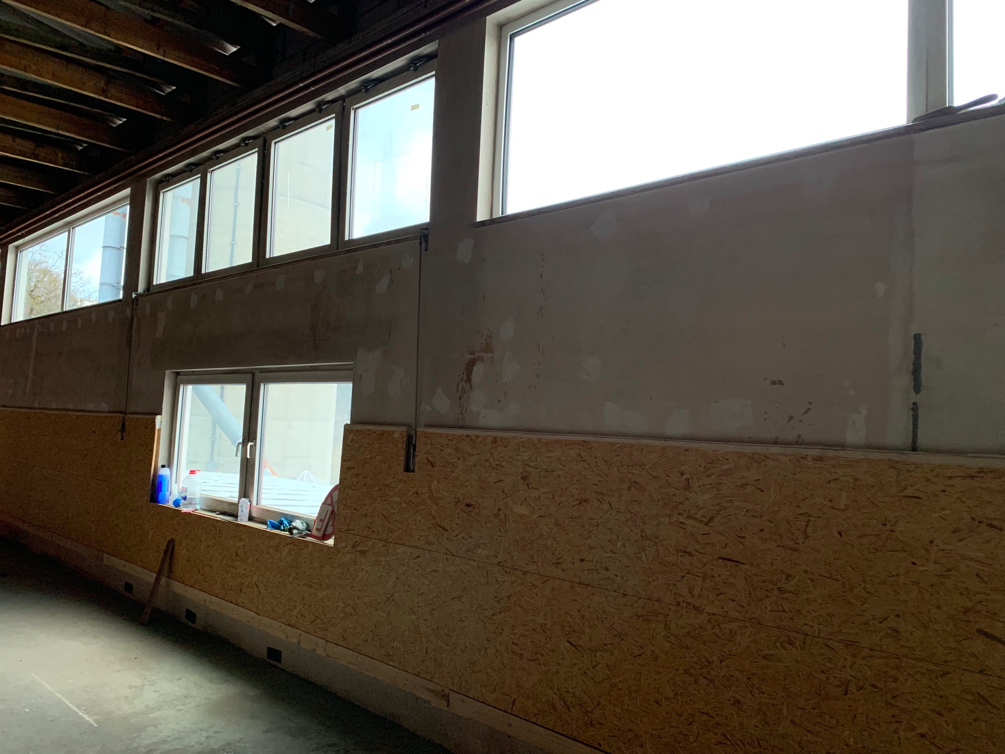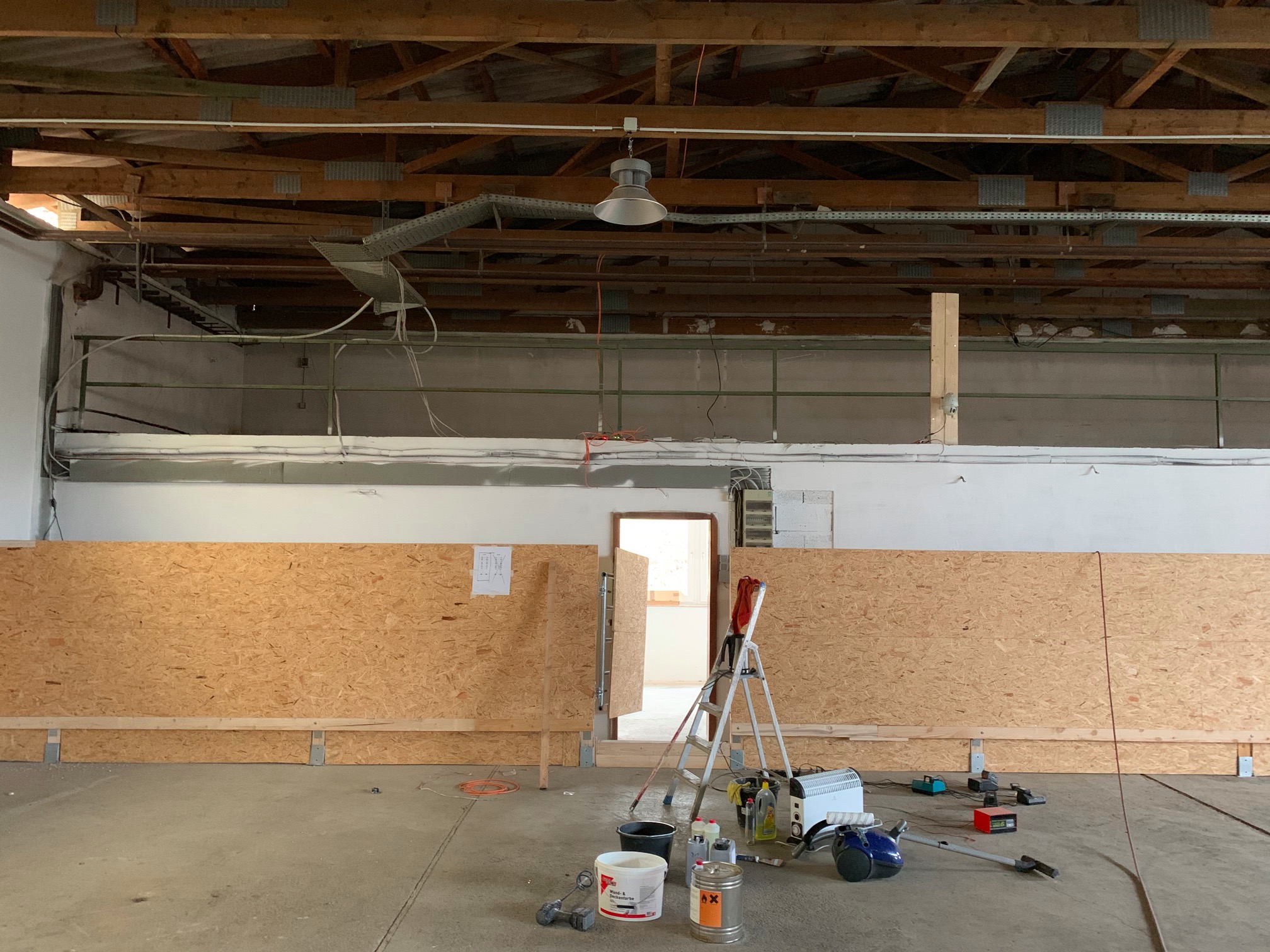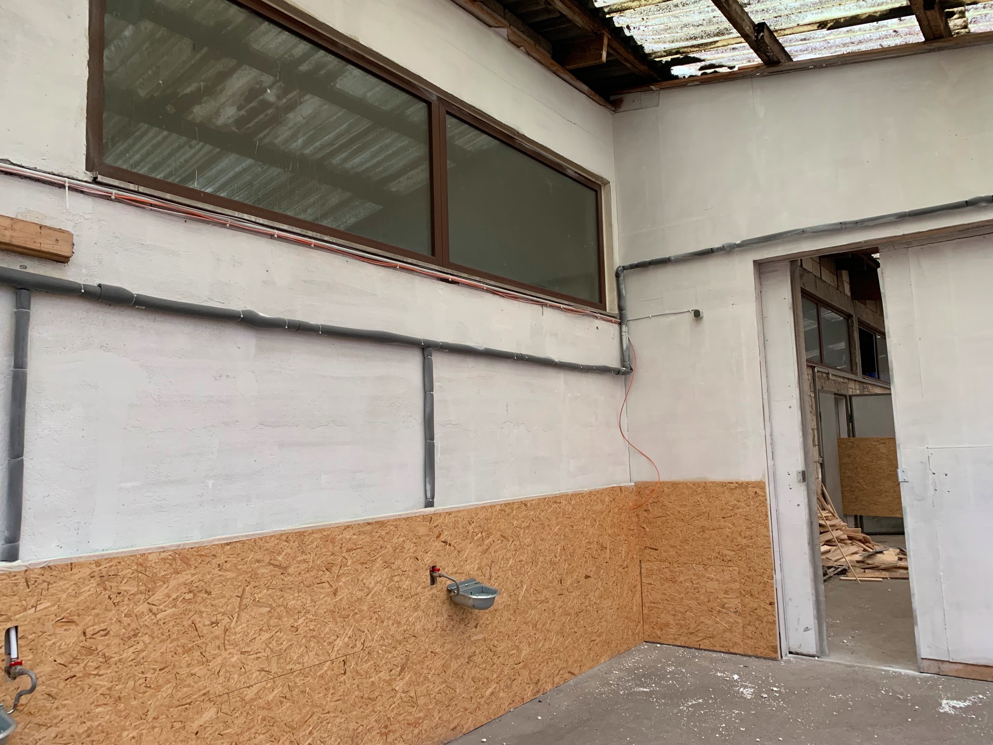 Aus der Industriehalle mit Anschleppung soll ja mal eine Bewegungshalle mit Stallung und gleichzeitigem Zugang zum Offenstall werden - dafür ist noch richtig viel zu tun.