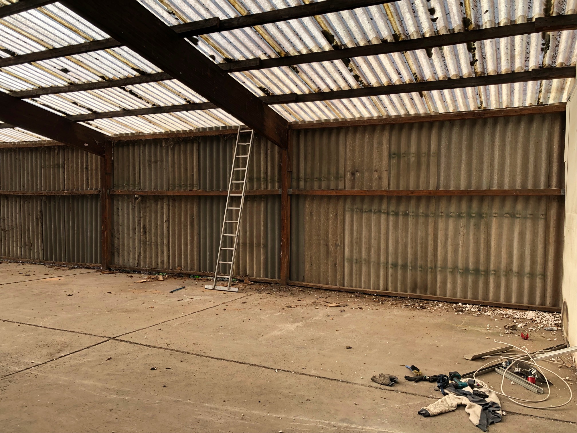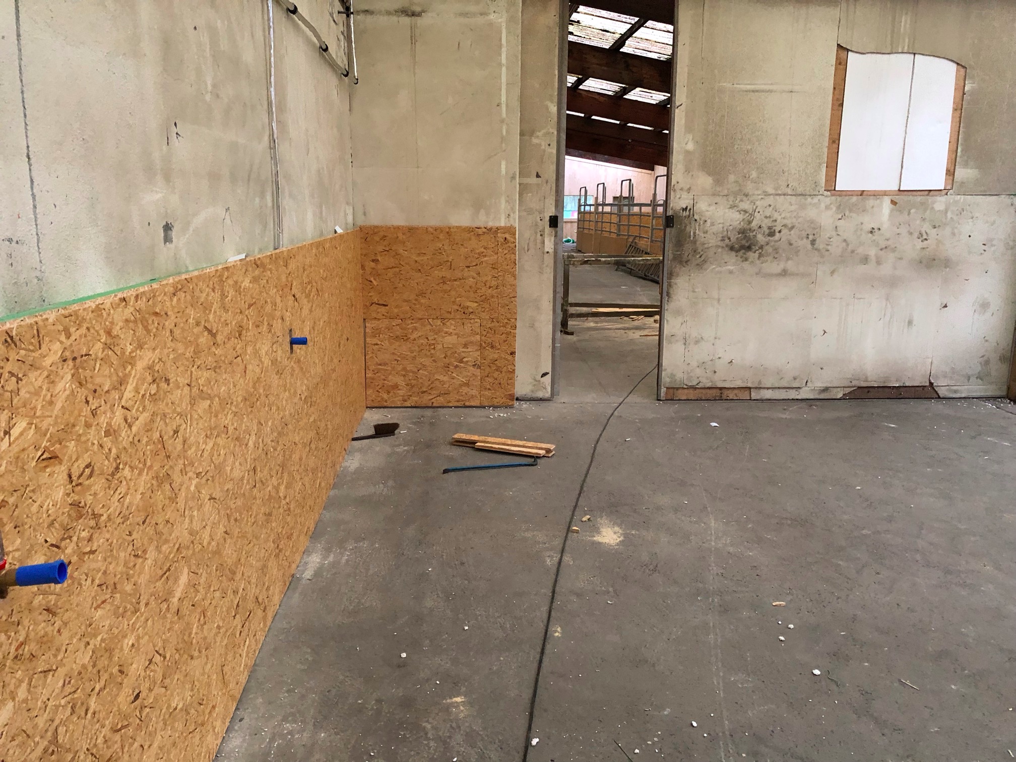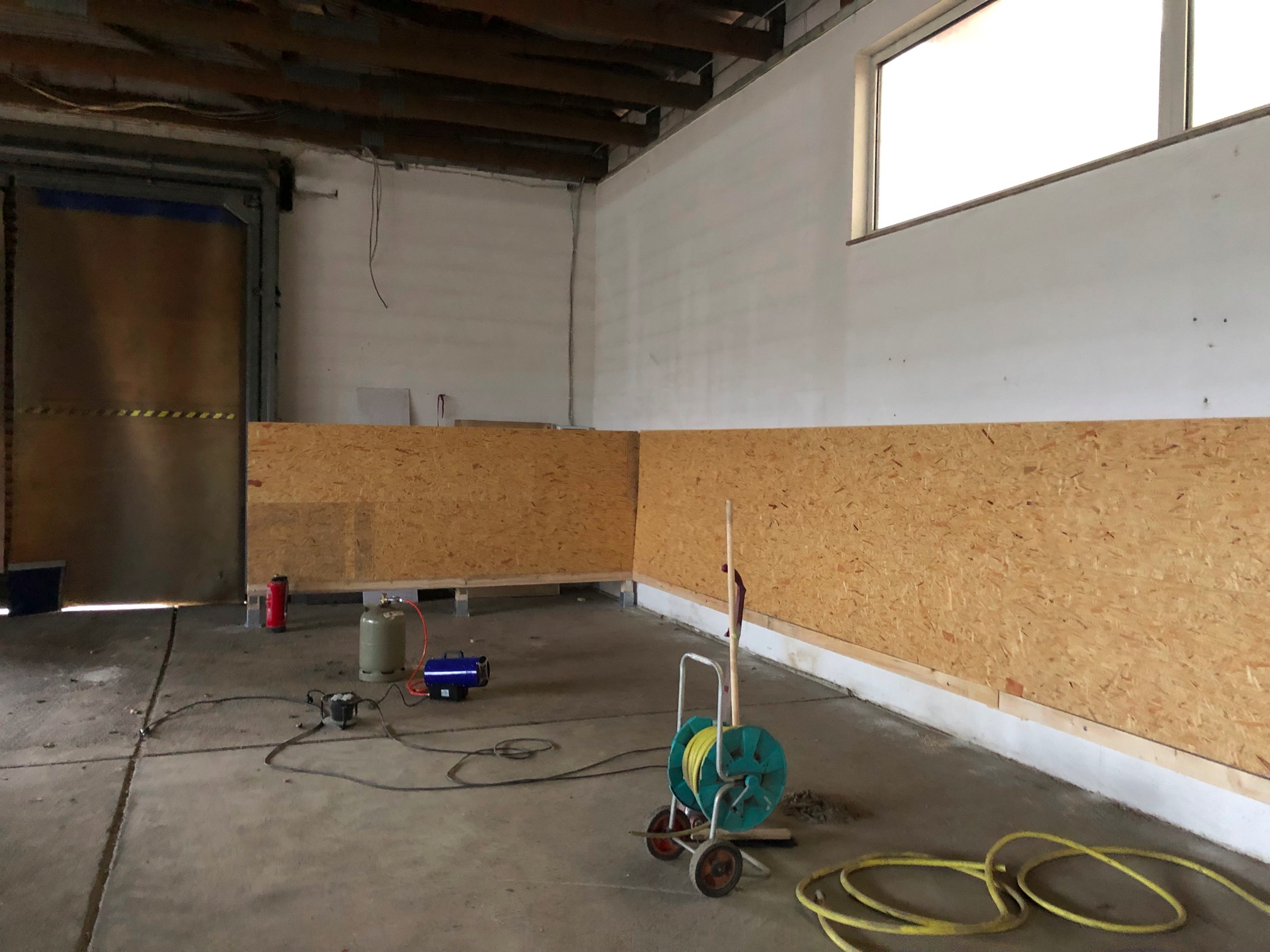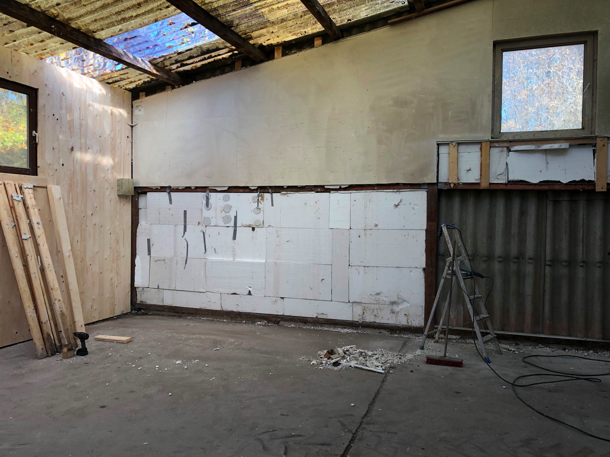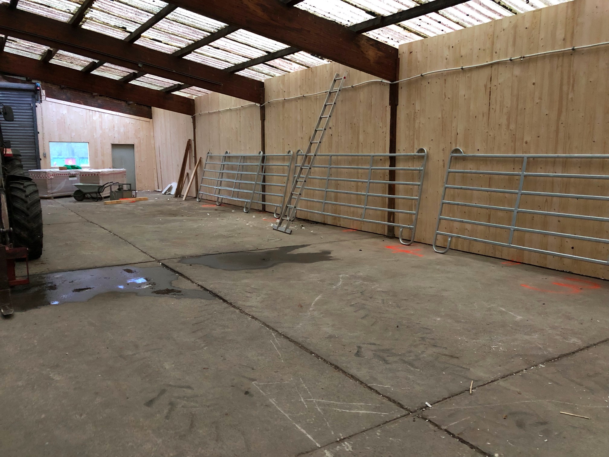 Aus der Industriehalle mit Anschleppung soll ja mal eine Bewegungshalle mit Stallung und gleichzeitigem Zugang zum Offenstall werden - dafür ist noch richtig viel zu tun.
