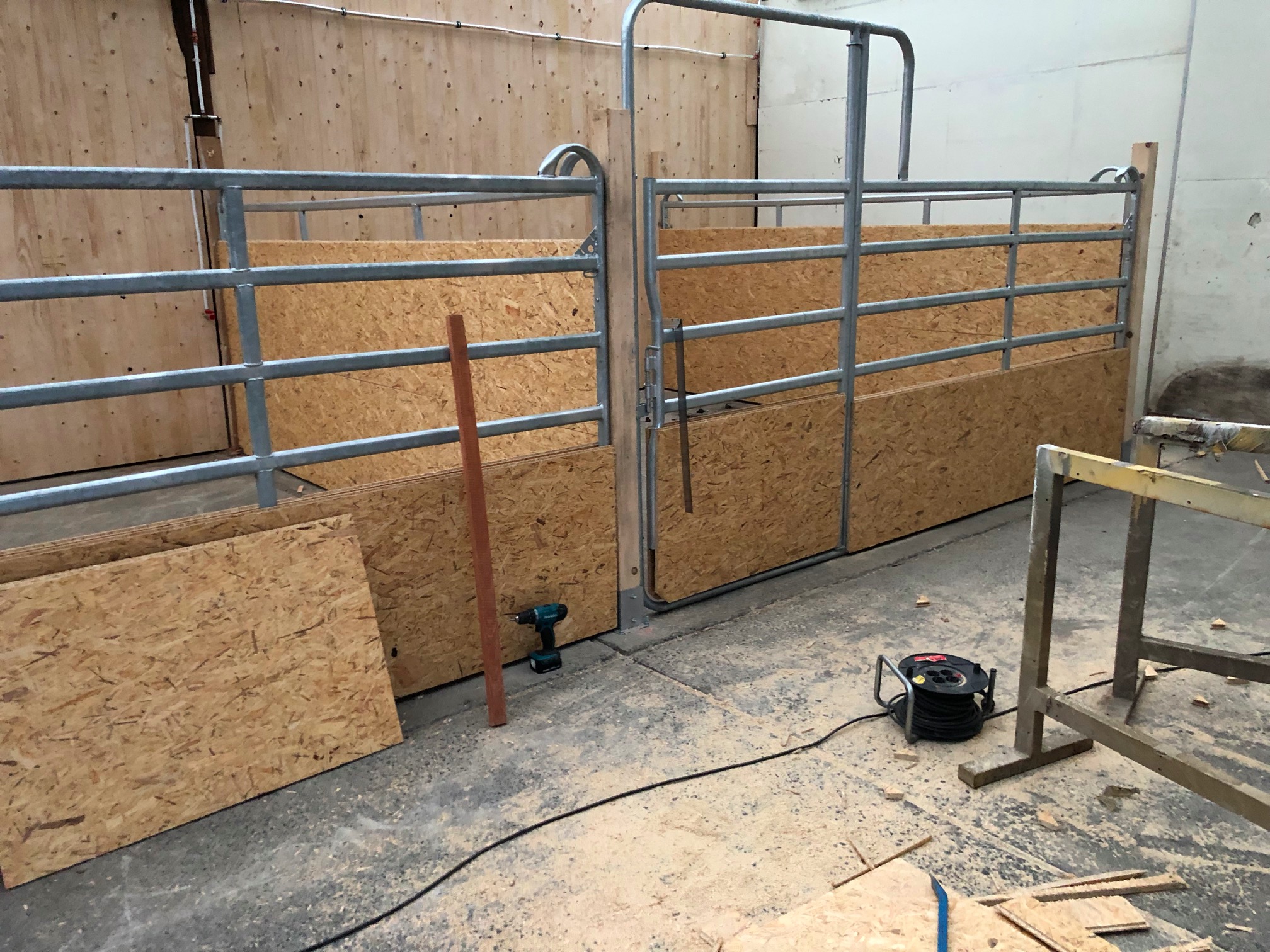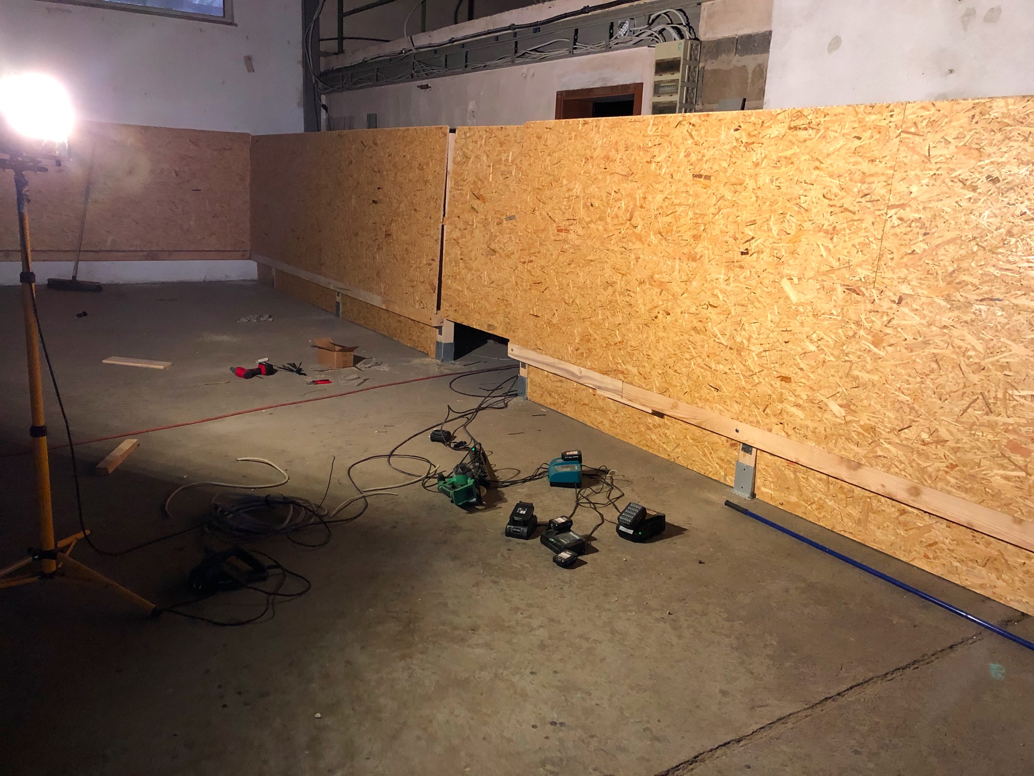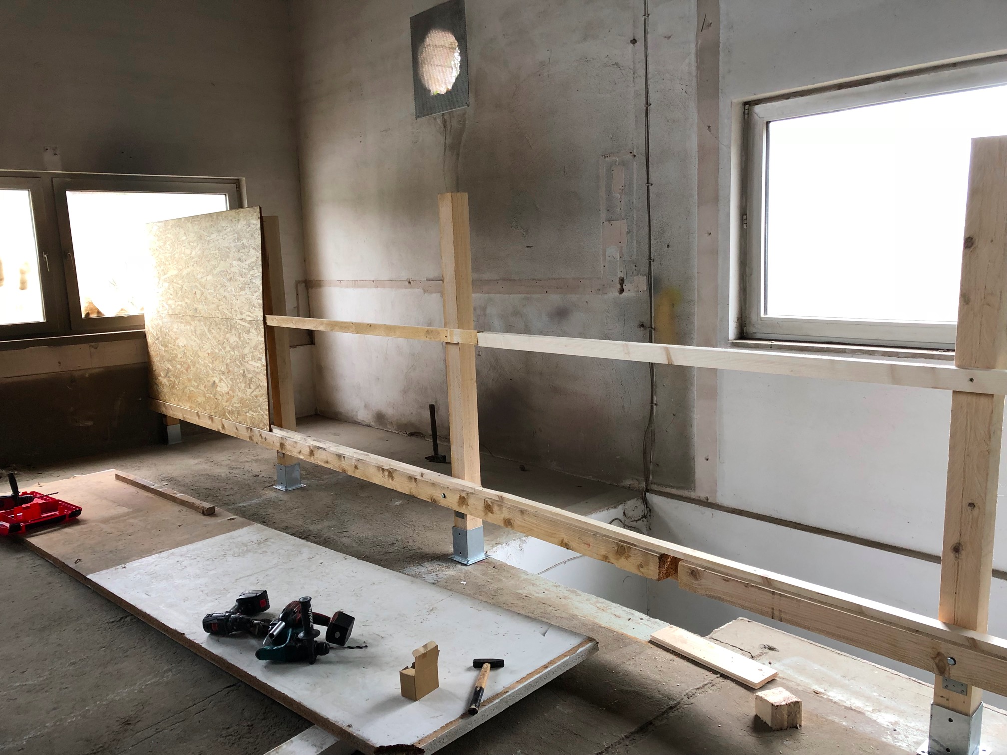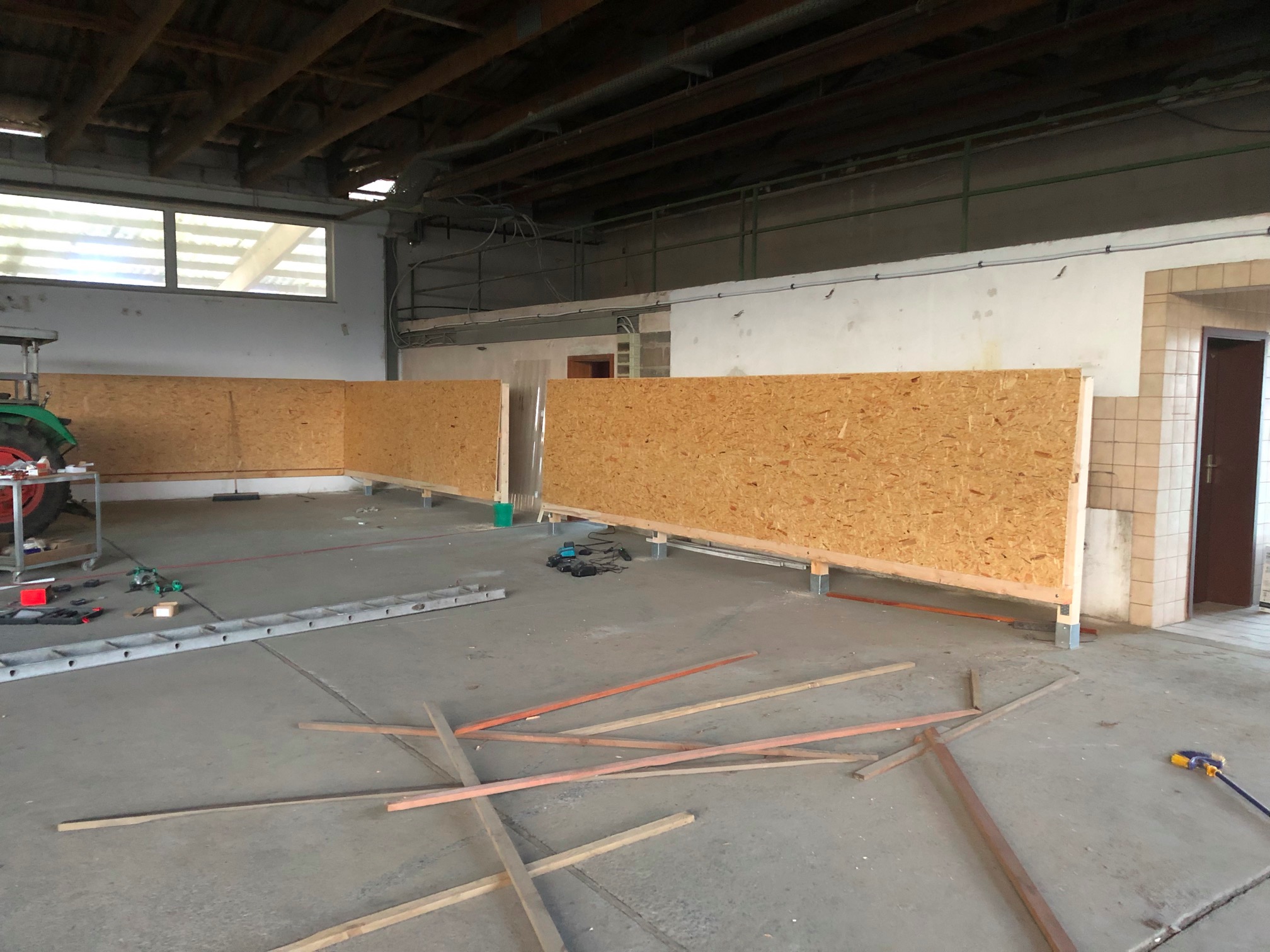 Und damit es nicht langweilig wird schon mal begonnen in der künftigen Reithalle die Bandenköpfe vorzurichten: