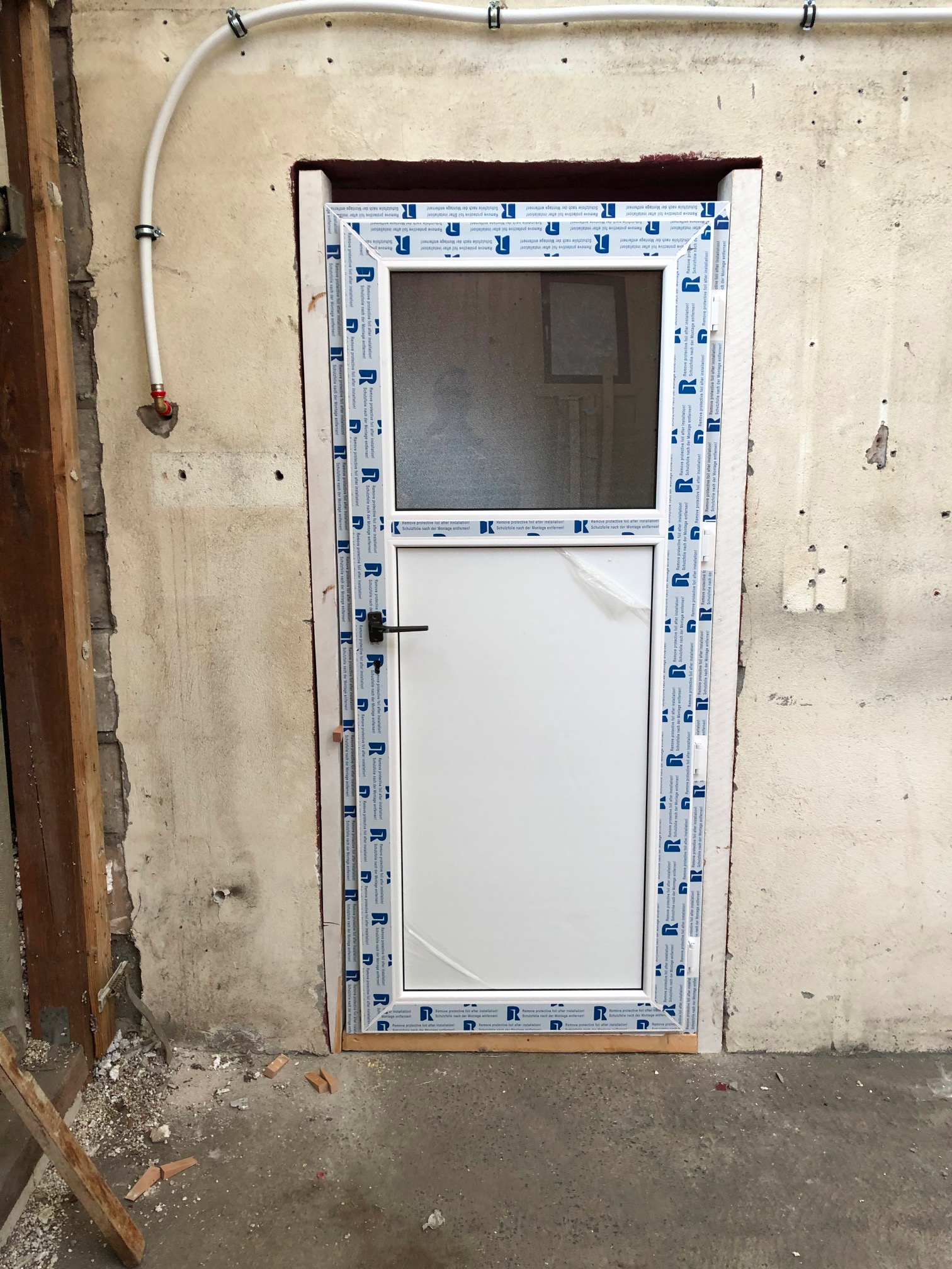 ... und der Ausgang ist (fast) fertig. Das Durchtrennen (und entnehmen) der beiden Längsträger (oben und unten im Fußraum) werde ich aber erst im Frühjahr machen bzw. wenn die Temperaturen wieder aufwärts gehen, denn draußen muss auch noch der Schuppenanbau abgerissen werden, damit ich die Betonwellplatten im Ausgangsbereich entfernen kann.