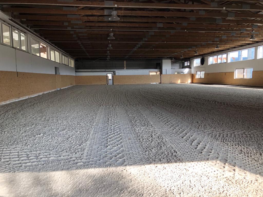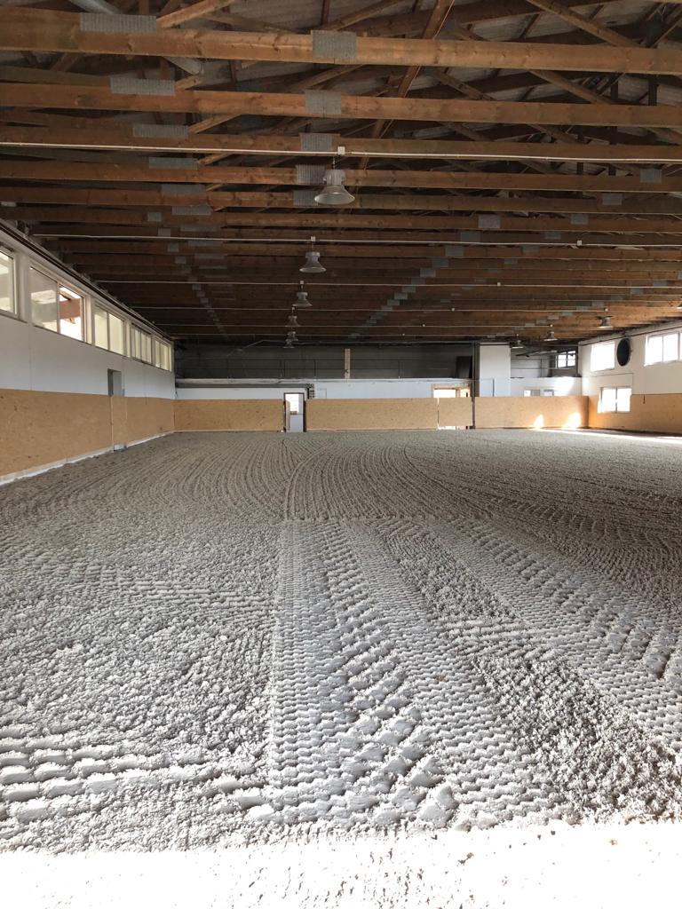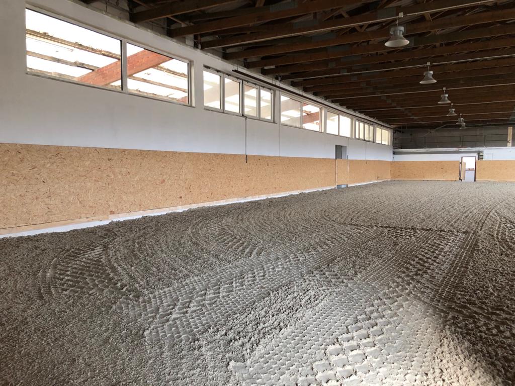 Damit ist die Halle fertig für das Einbringen des Reitbodens (was in der KW 12 auch passieren soll, jedenfalls wenn unser Reitbodenbauer zuverlässig arbeitet