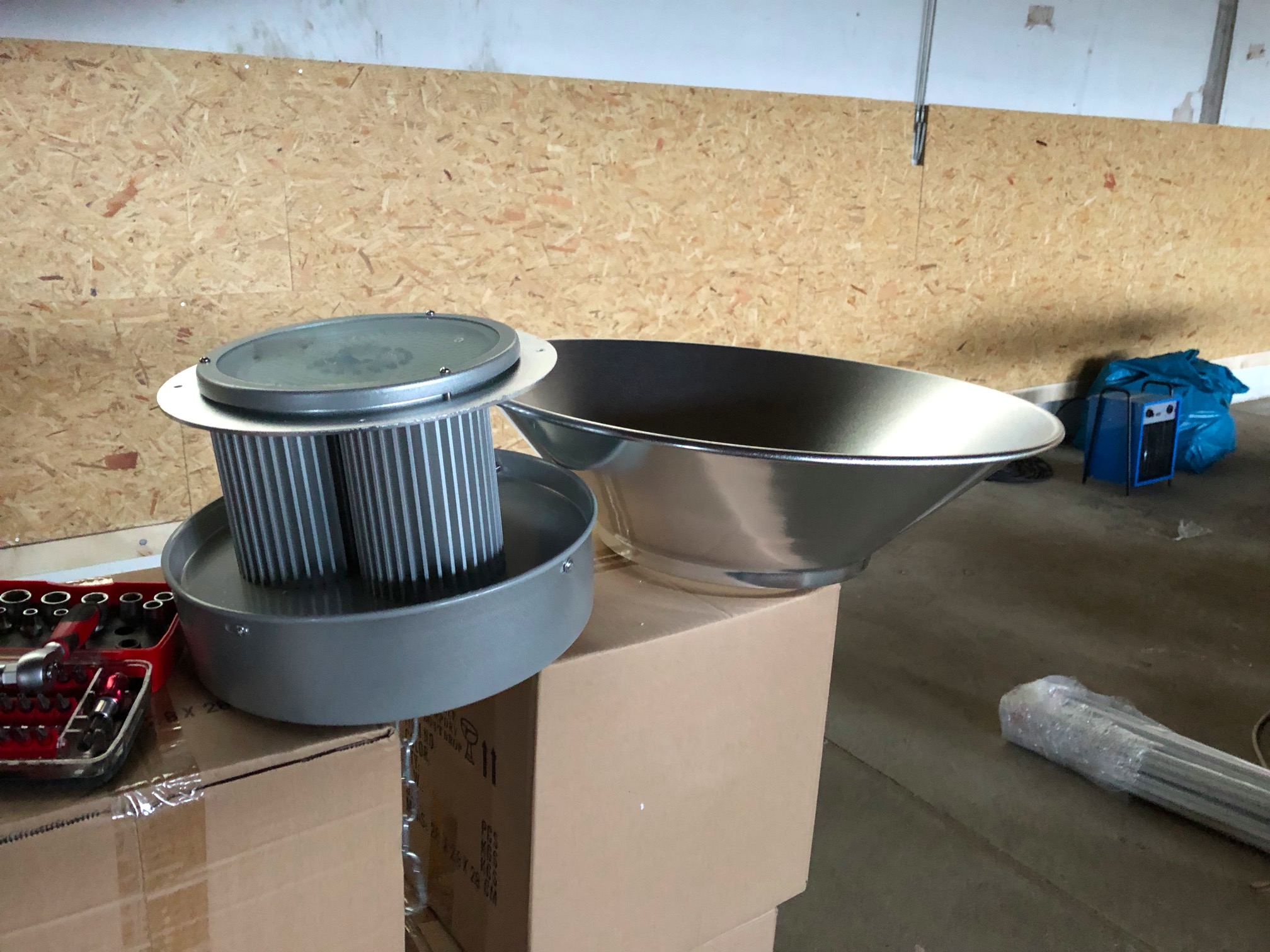 Als Lichtquelle haben wir uns für 150-W-Strahler (natürlich) LED kaltweiß entschieden: