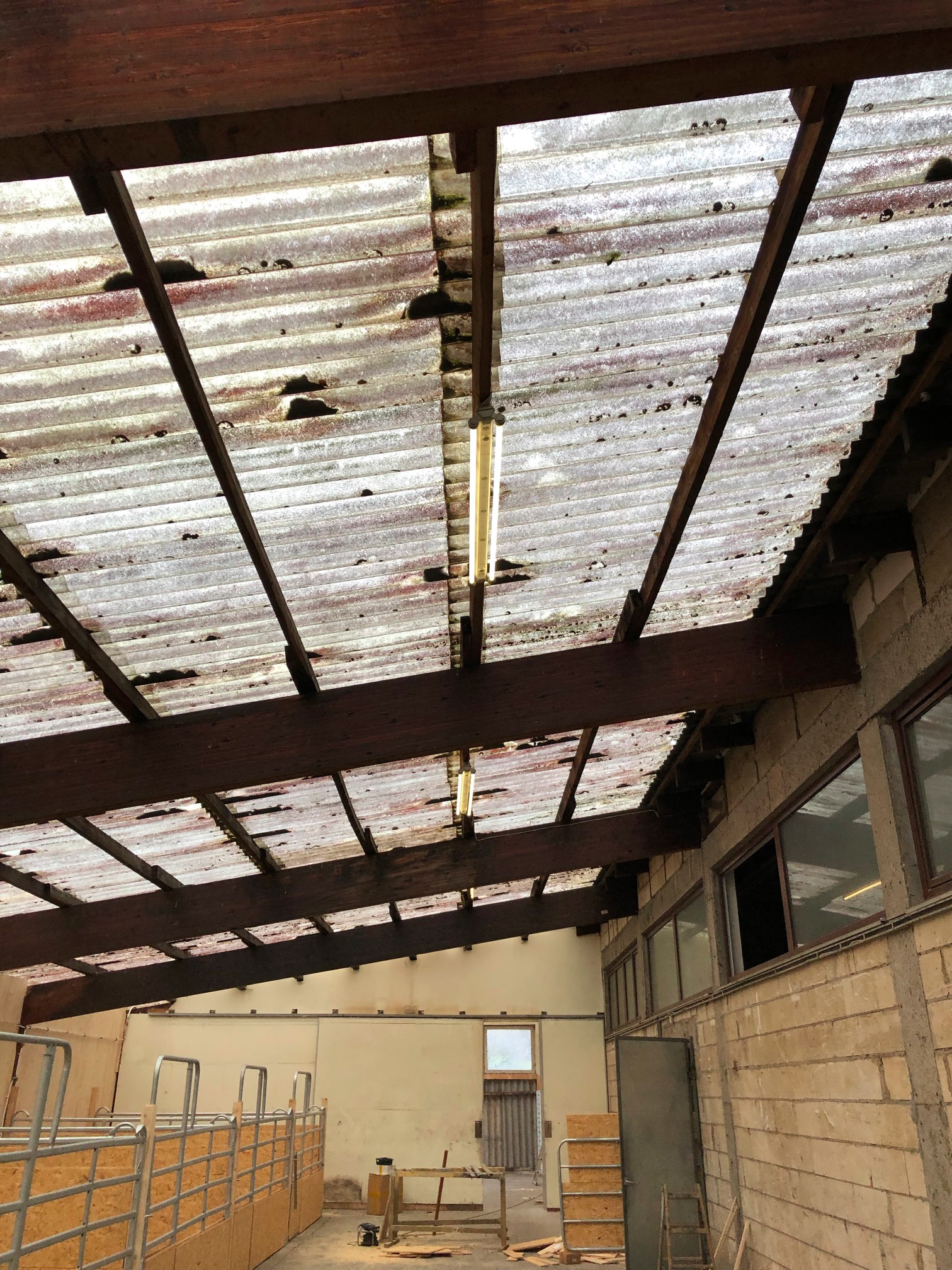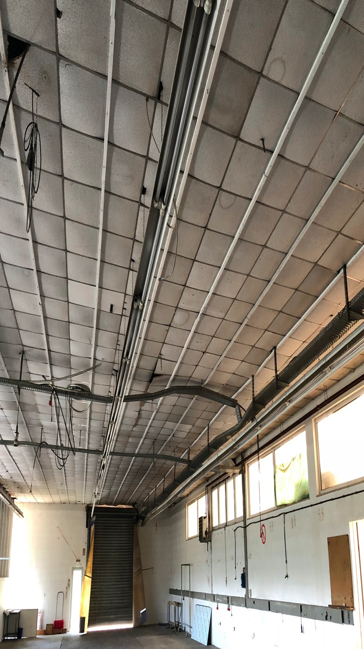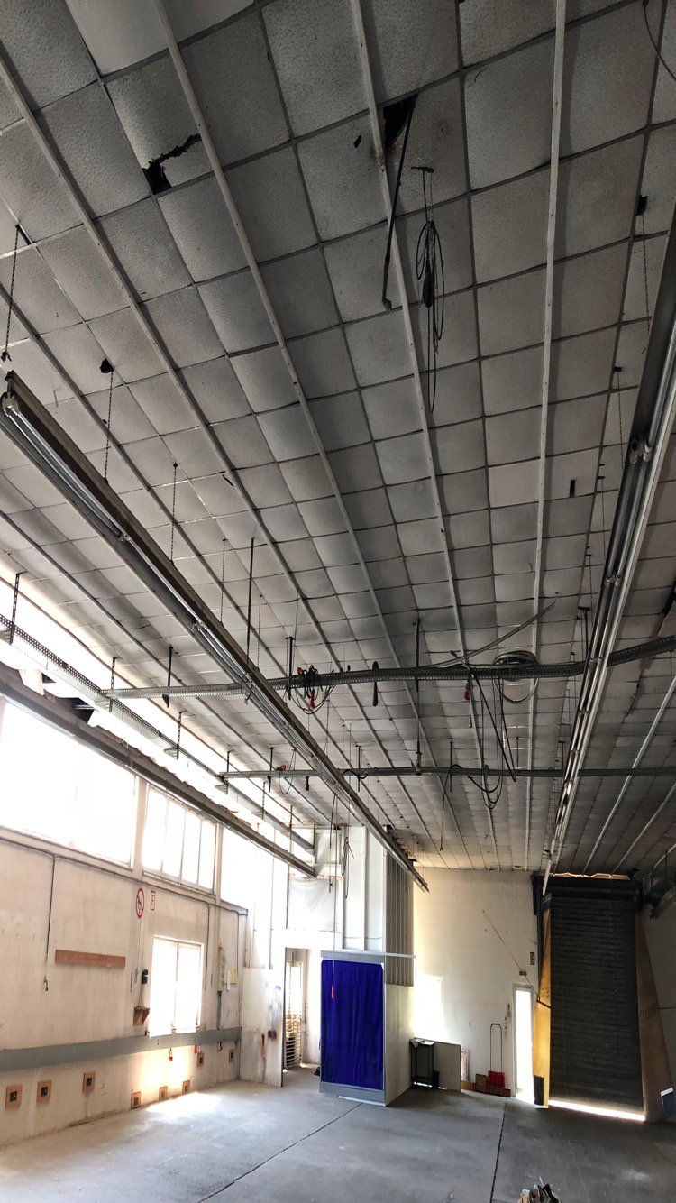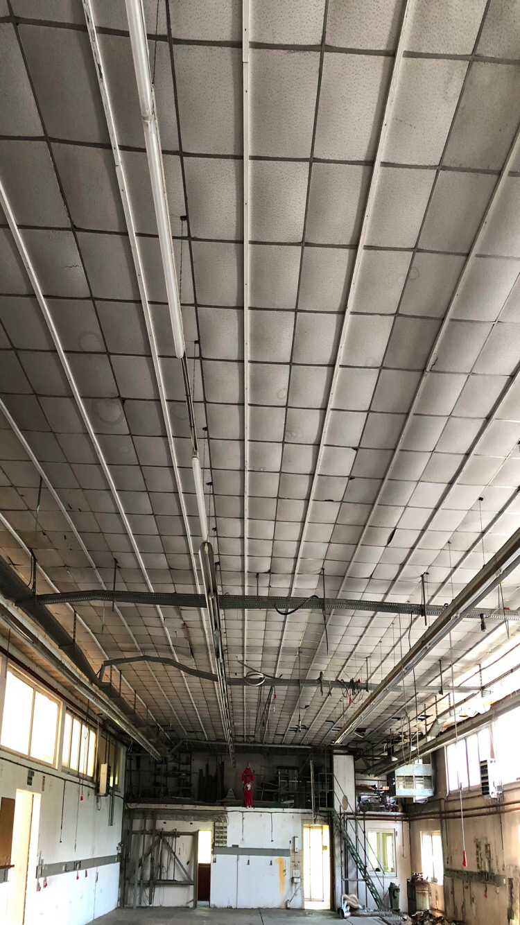 Die abgehängte Decke sah nicht wirklich gut aus, wie man auf den beiliegenden Fotos sieht und so hatten wir entschieden, diese komplett zurück zu bauen - Nachfrage bei unserem Entsorger ergab: das sind KMF-Platten, die in speziellen, verschließbaren BigPacks verpackt und entsorgt werden müssen = Sonderabfall (die Tonne zu 550,-- EUR) ... 800 qm Decke sind dann mal ganz schnell rechnerisch 7 Tonnen KMF-Platten, dazu noch mindestens 2 Tonnen Holzlattung, die ganzen nicht mehr funktionierenden Lichtbänder und auch die Kabeltrassen mit Kabeln, die noch zurück gebaut werden müssen!!