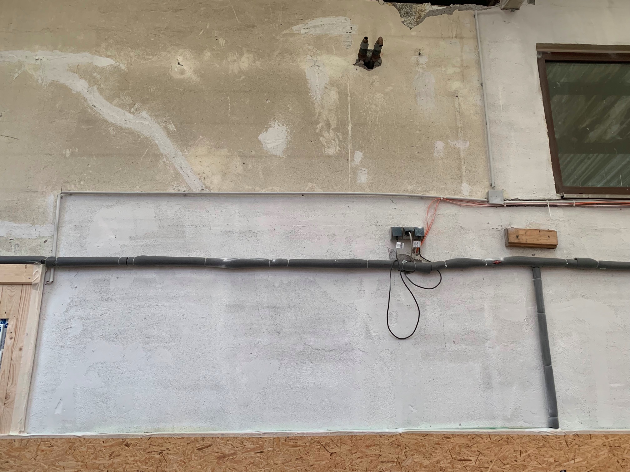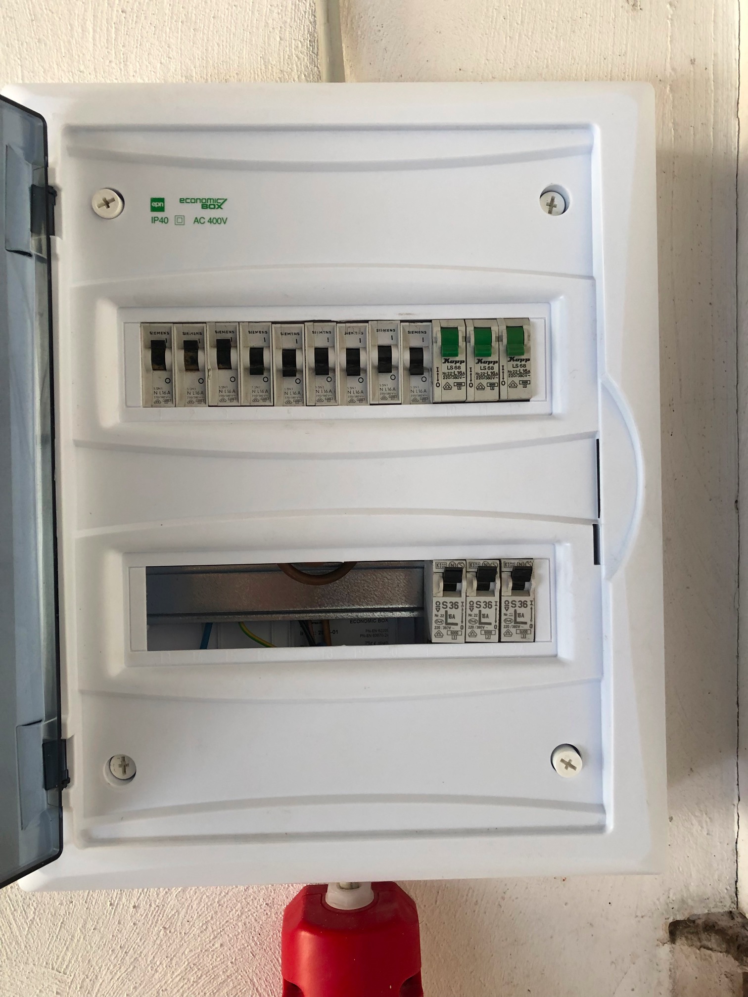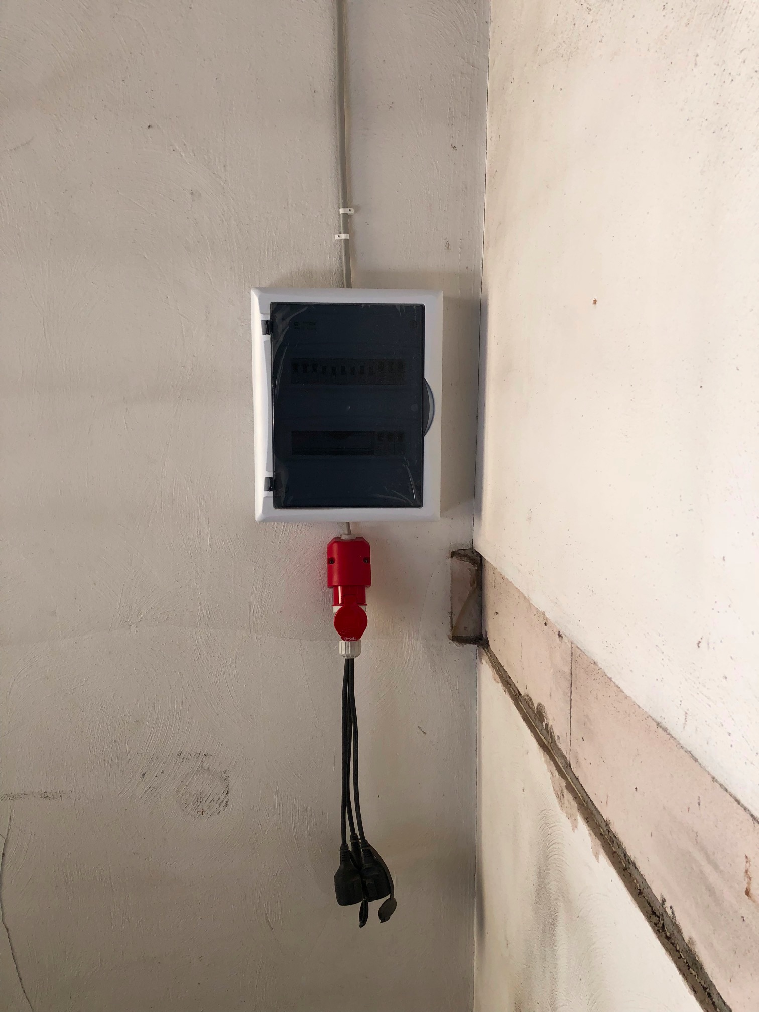 Jetzt noch am Eingangstor eine weitere neue Unterverteilung (Stromkreis für die großen Tore) erstellt, damit auch die letzte störende Kabeltrasse ausgebaut werden kann ...