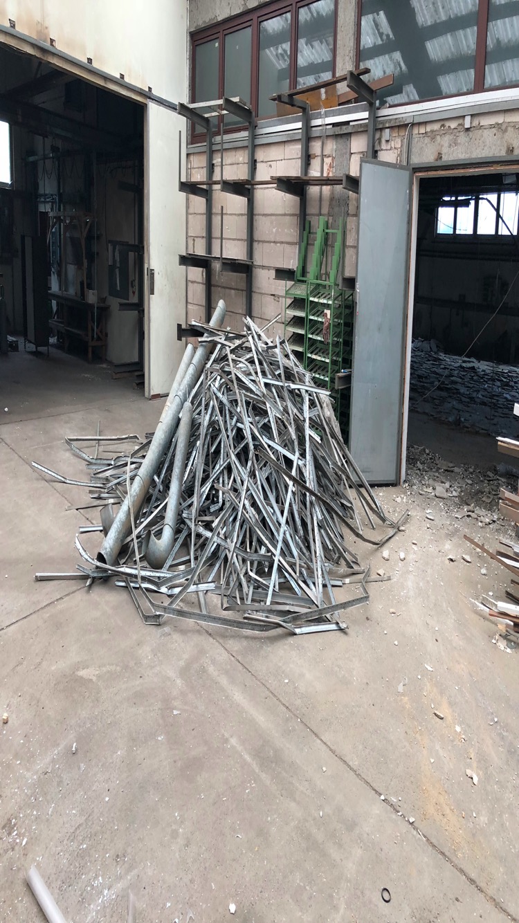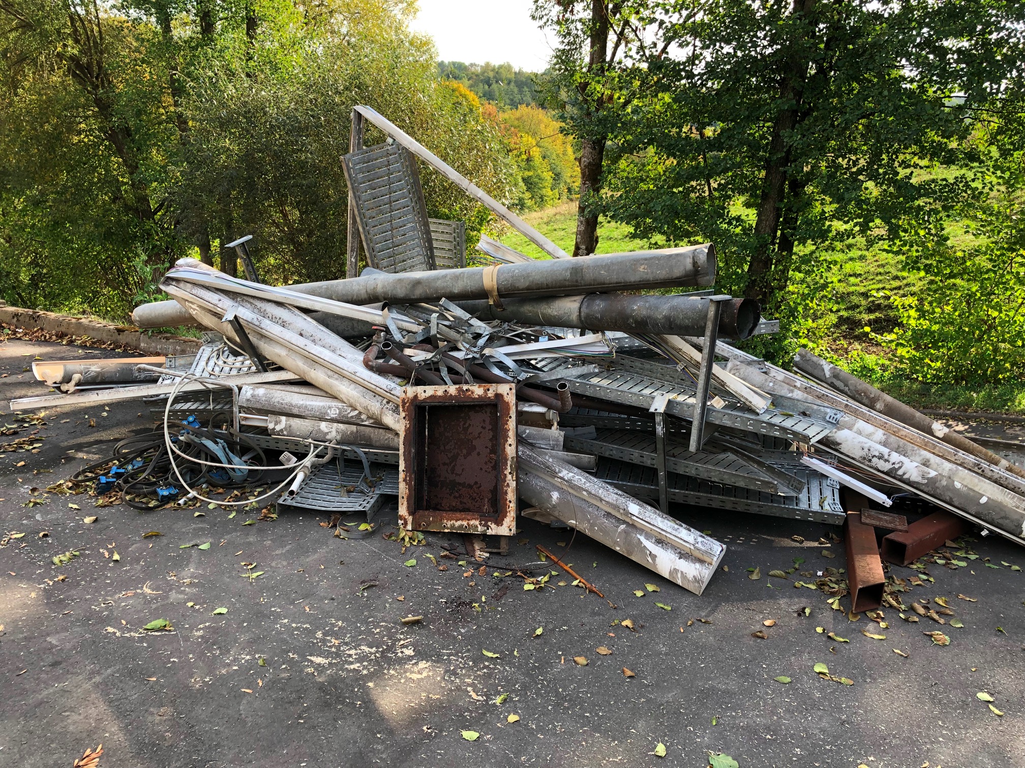 : alles fein säuberlich nach den Metallarten getrennt für unseren Schrotti, der schließlich mehrere LKW-Ladungen Metalle abtransportiert hat und uns auch noch eine Kleinigkeit bezahlt hat
