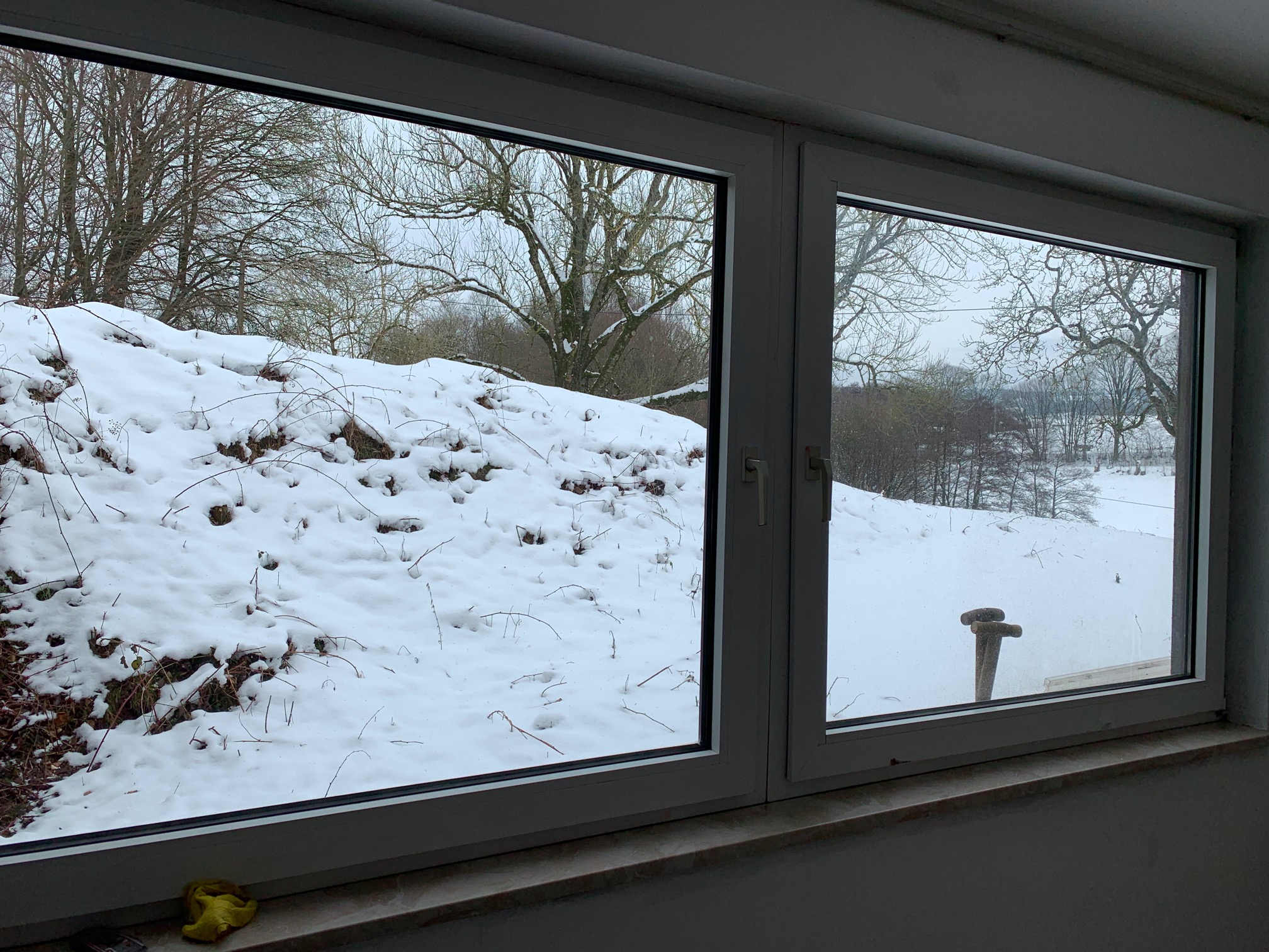 und wie man den letzten beiden Bildern entnehmen kann: auch Schnee und klirrende Kälte haben Christine nicht abgehalten die Fenster in einen quasi Neuzustand zu erheben.