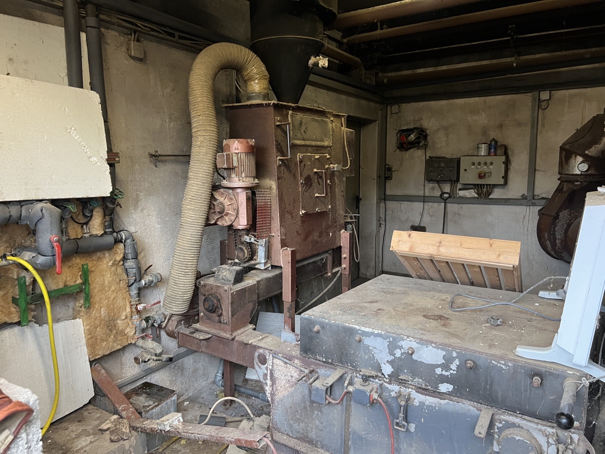 ein voll gepackter alter Heizraum mit einer Spänemühle, einer Spänezuführung etc. |