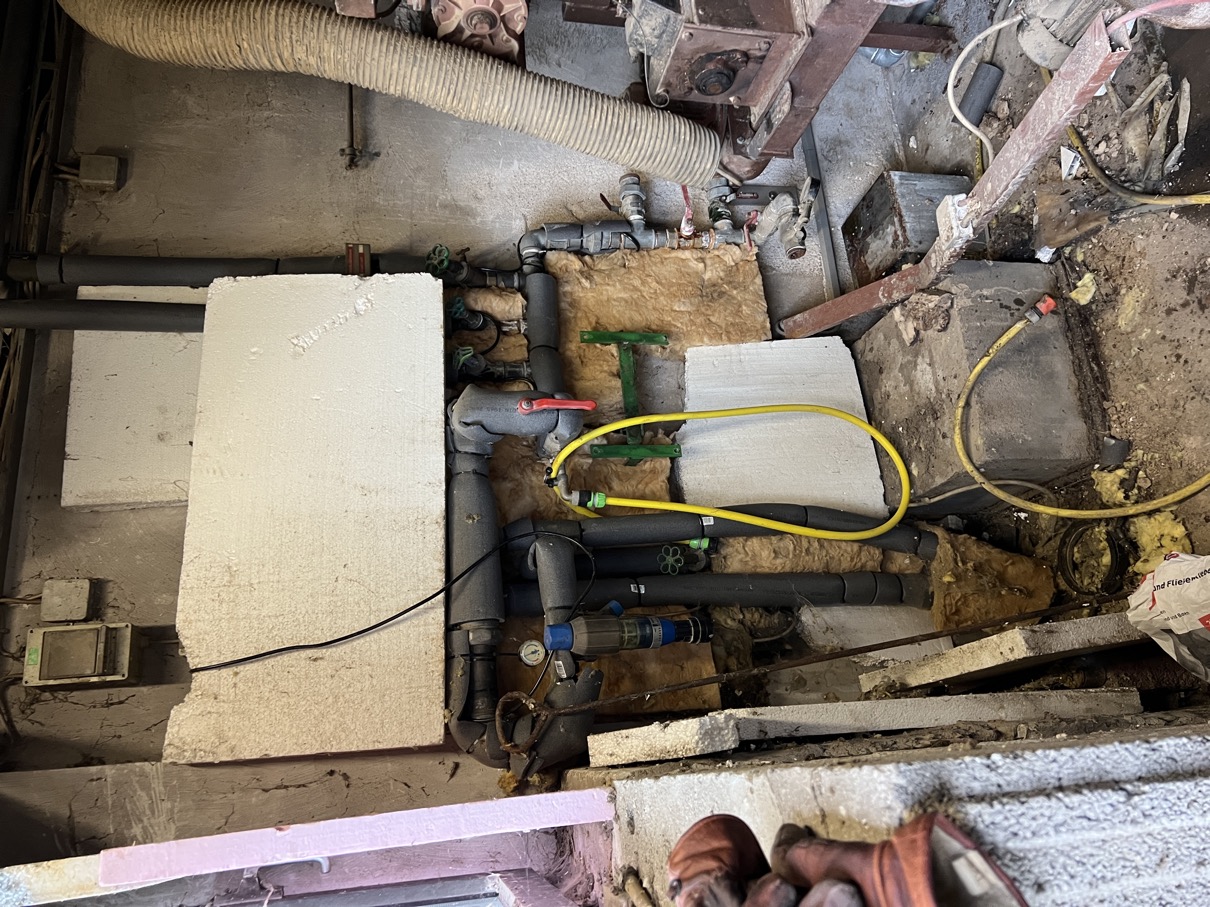 noch in diesem Raum: die gesamte Wasserzuführung und -verteilung auf die einzelnen Gebäude |