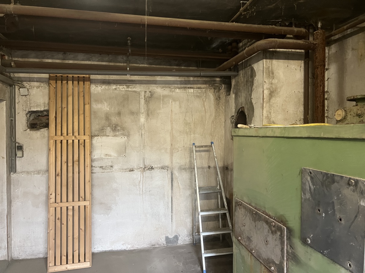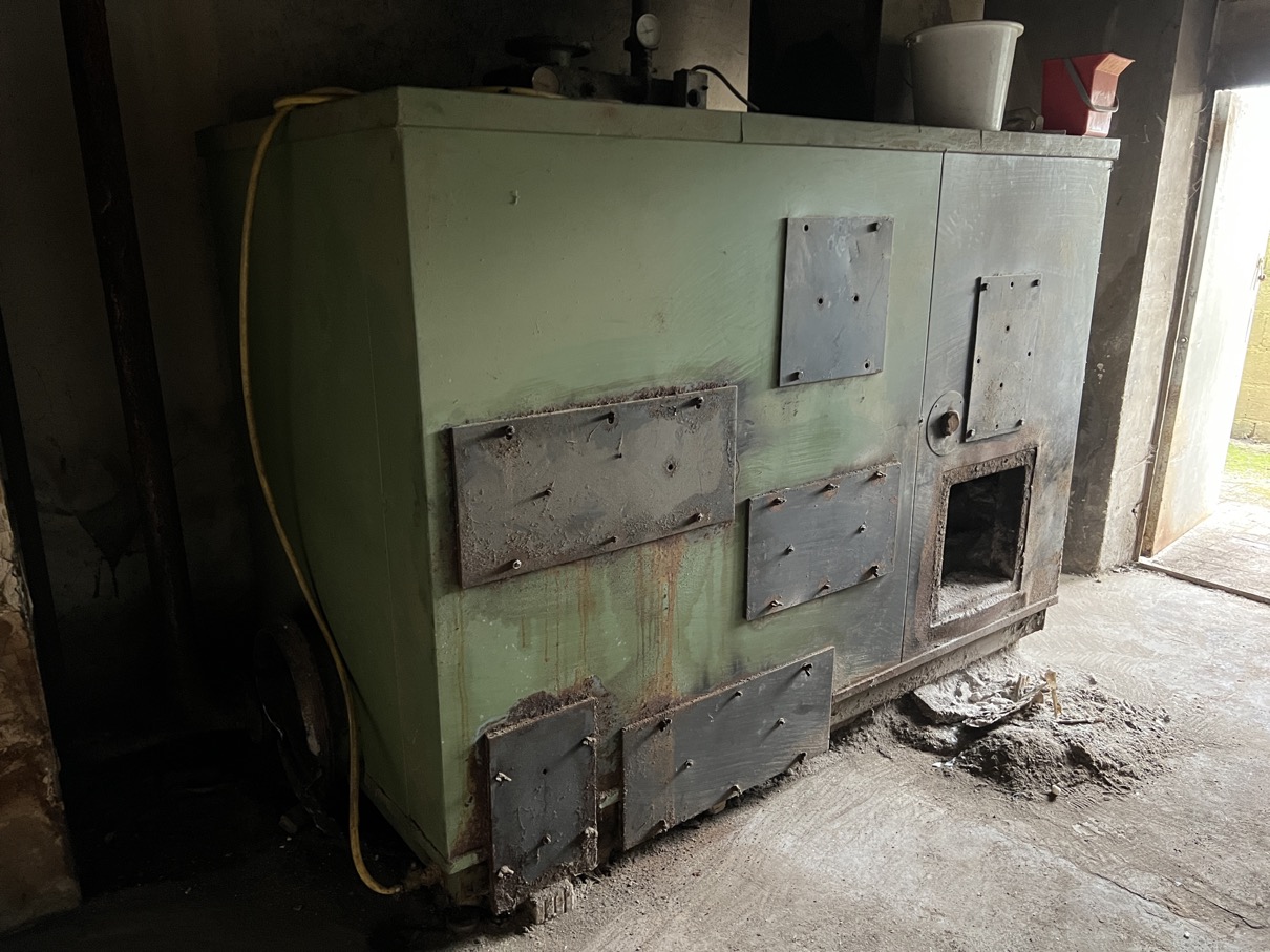 .... und immer noch nicht so ganz fertig ..... weil: in diesem Gebäude gibt es noch einen alten "Heizungsraum", der eine riesige (und schon mindestens 15 Jahre defekte) Holzspäneheizung mit sagenhaften 120 kw Leistung aufweist. Diesen Raum könnte ich brauchen, um die Wechselrichter/Akku´s etc. meiner geplanten Fotovolteiganlage unterzubringen. Heißt aber im ersten Schritt: alles außer der riesigen Kesselanlage (für einen Ausbau bräuchte ich einen Schneidbrenner, den ich nicht habe) muss alles aus dem Raum raus ....