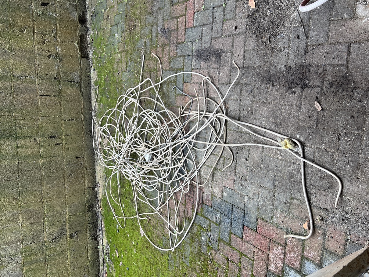 mit vielen Metern Kabel, die nicht mehr benötigt werden |