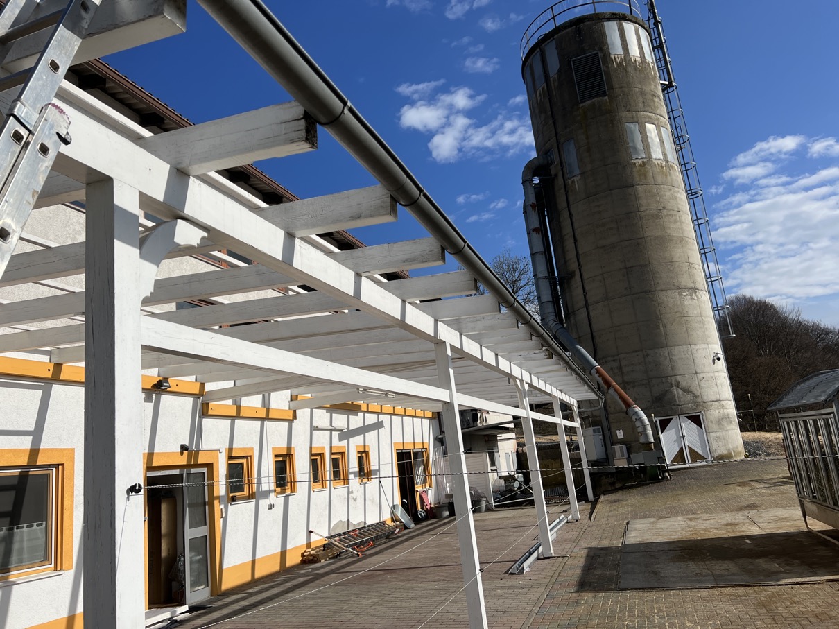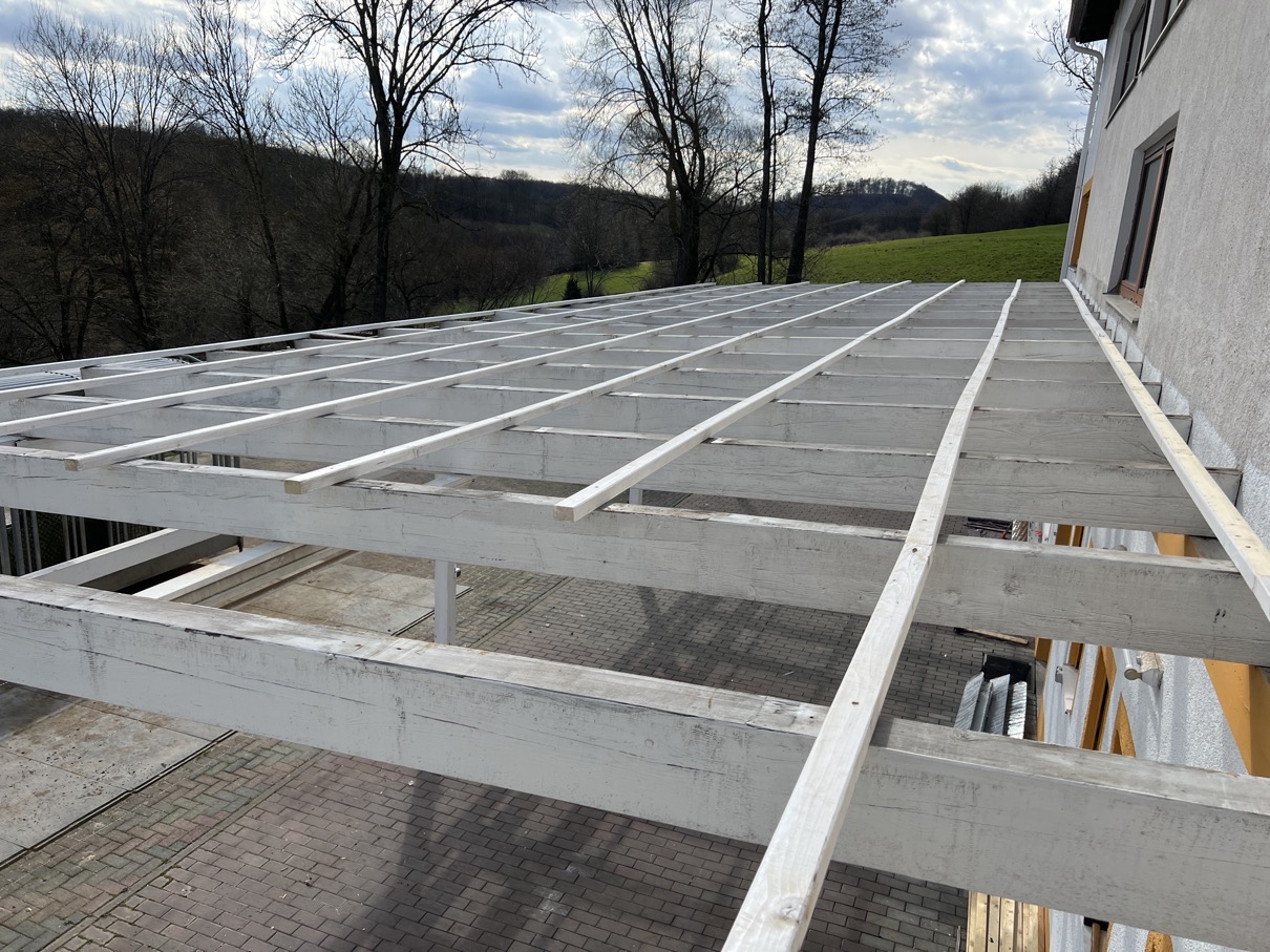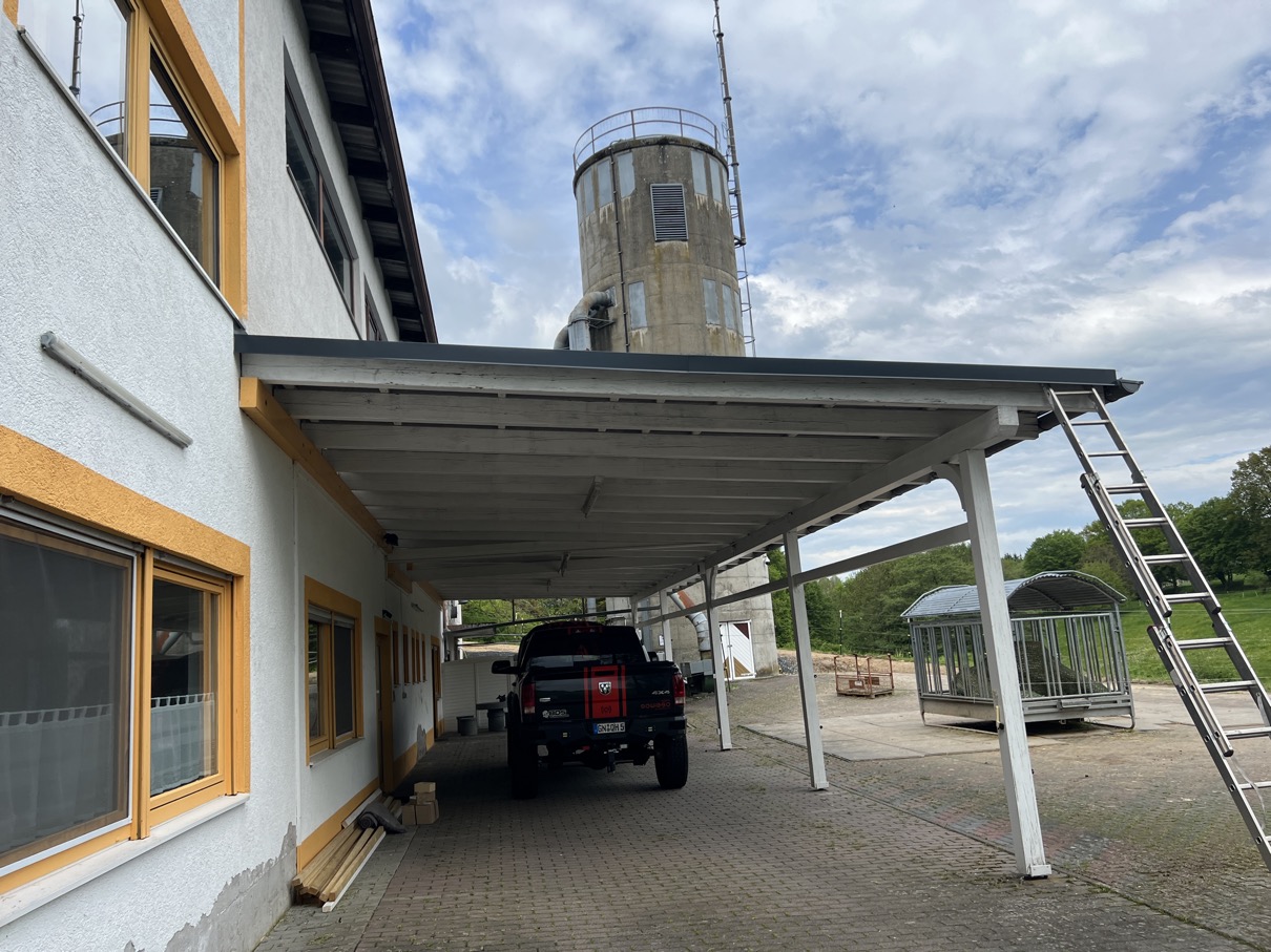 Da nun das Wetter wieder besser wurde (hatten ja im Frühjahr 2023 eine längere Regenperiode) konnte es außen weitergehen mit dem Vordach meines Bürotraktes im Mai 2023: