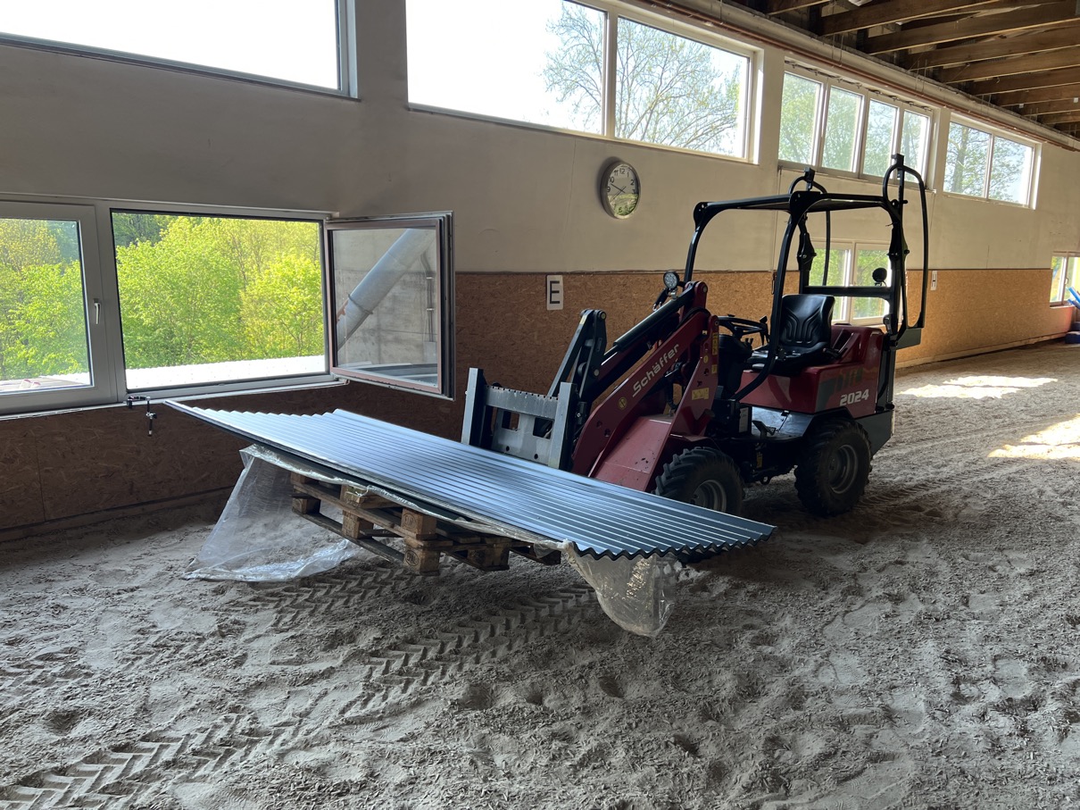 Als schlussendliches Ende der Baumaßnahme der Stallungen bzw. der Bewegungshalle nun noch (Wochenende 25./26.06.2022) der Austausch beider Rolltore und der Reithallentüre. Massig viel Arbeit und ellenlanger Vorlauf (Bestellzeit 28 Wochen !!!) .... sehen aber super aus!