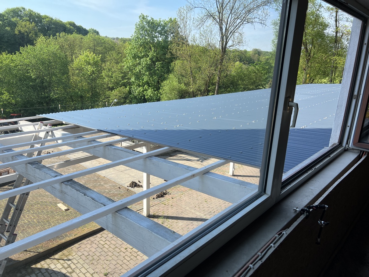 Step 4: neue Platten aufbringen - Dank des schlechten Wetters bis jetzt (21.04.2023) nur 3 Reihen und die Traufbleche legen können .... aber so wird es weitergehen |