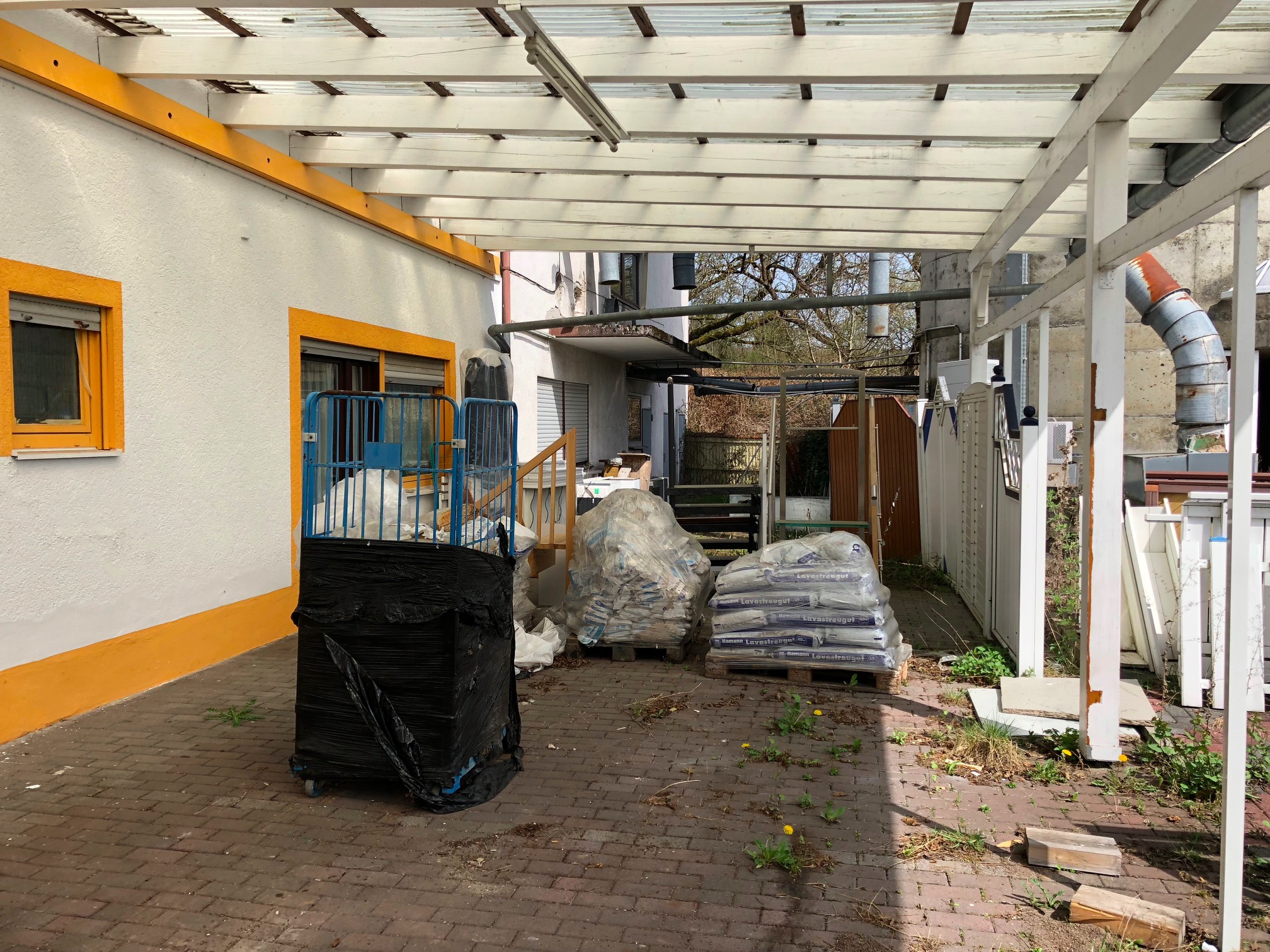Jetzt muss aus der Anschleppung noch das gesamte Metall (Schwerlastregale und Deckenhubkrananlage) entfernt werden - sah leichter aus als es sich dann herausgestellt hat - man wächst an den Herausforderungen. Auch das haben wir drei geschafft