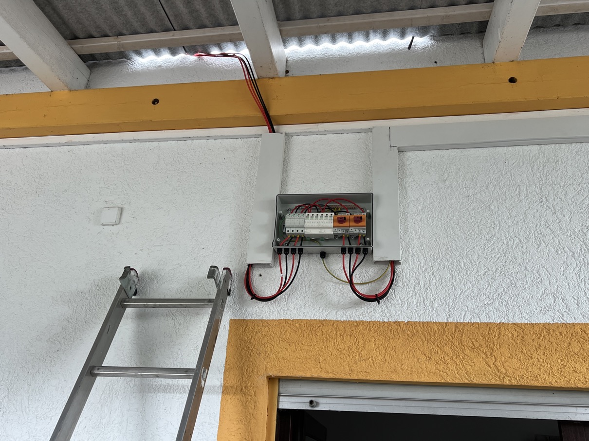 Juli 2023 - und die bestellen Teile der Unterkonstruktion sind noch nicht eingetroffen - also mache ich mit der Vorinstallation der Unterverteilung, der Kabelkanäle für die Strings etc. weiter: