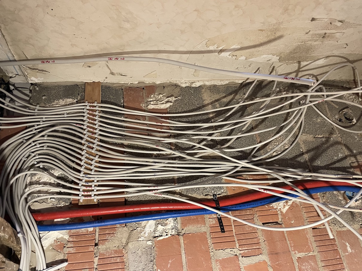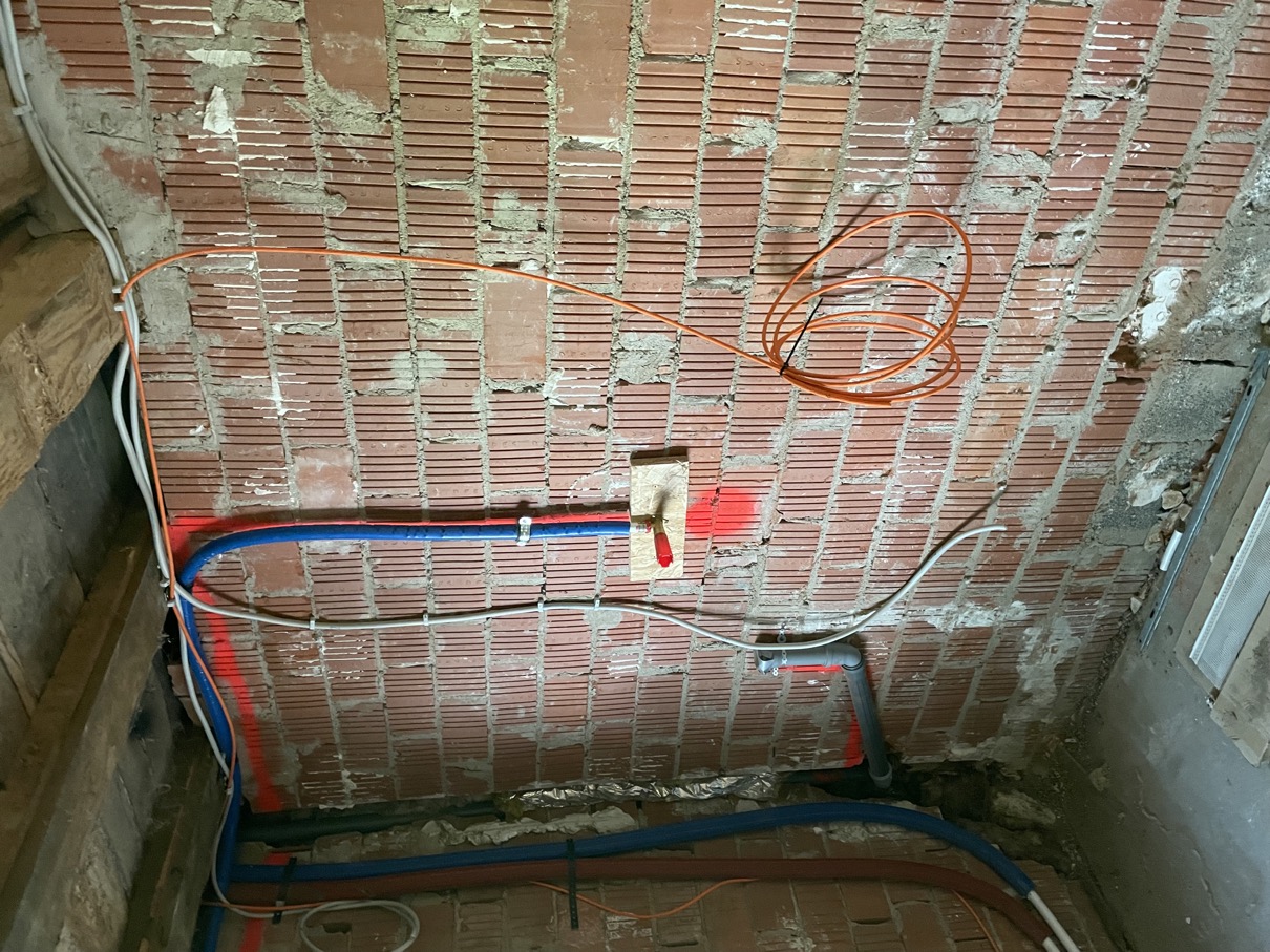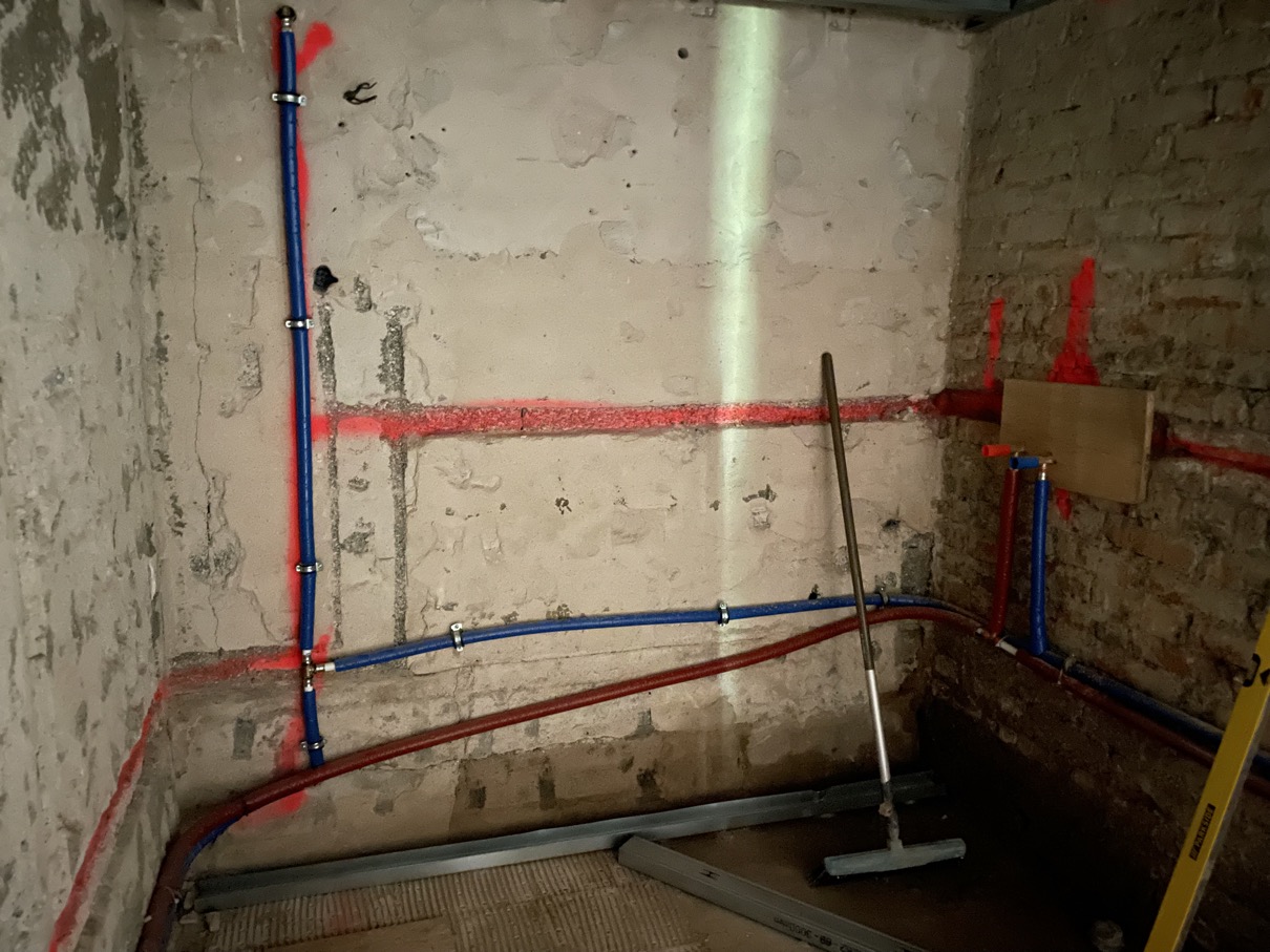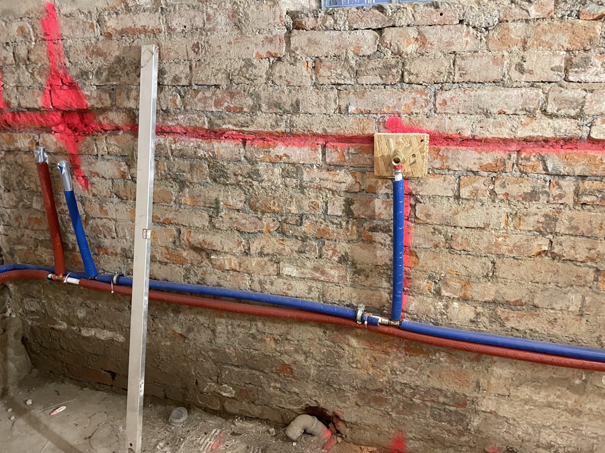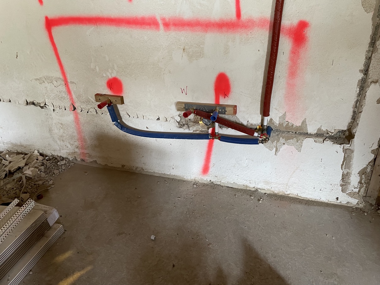 Fertigstellung der Hauptstromzuführungen von der Unterverteilung in die einzelnen Räume stand an und ebenfalls die Druckprüfung der Kaltwasserleitung.