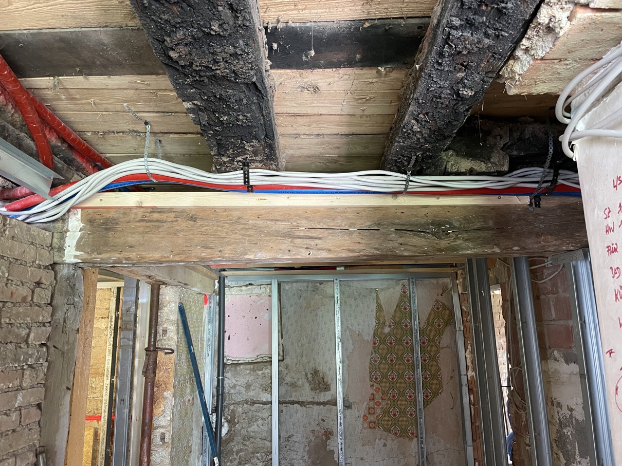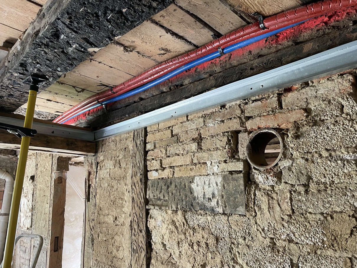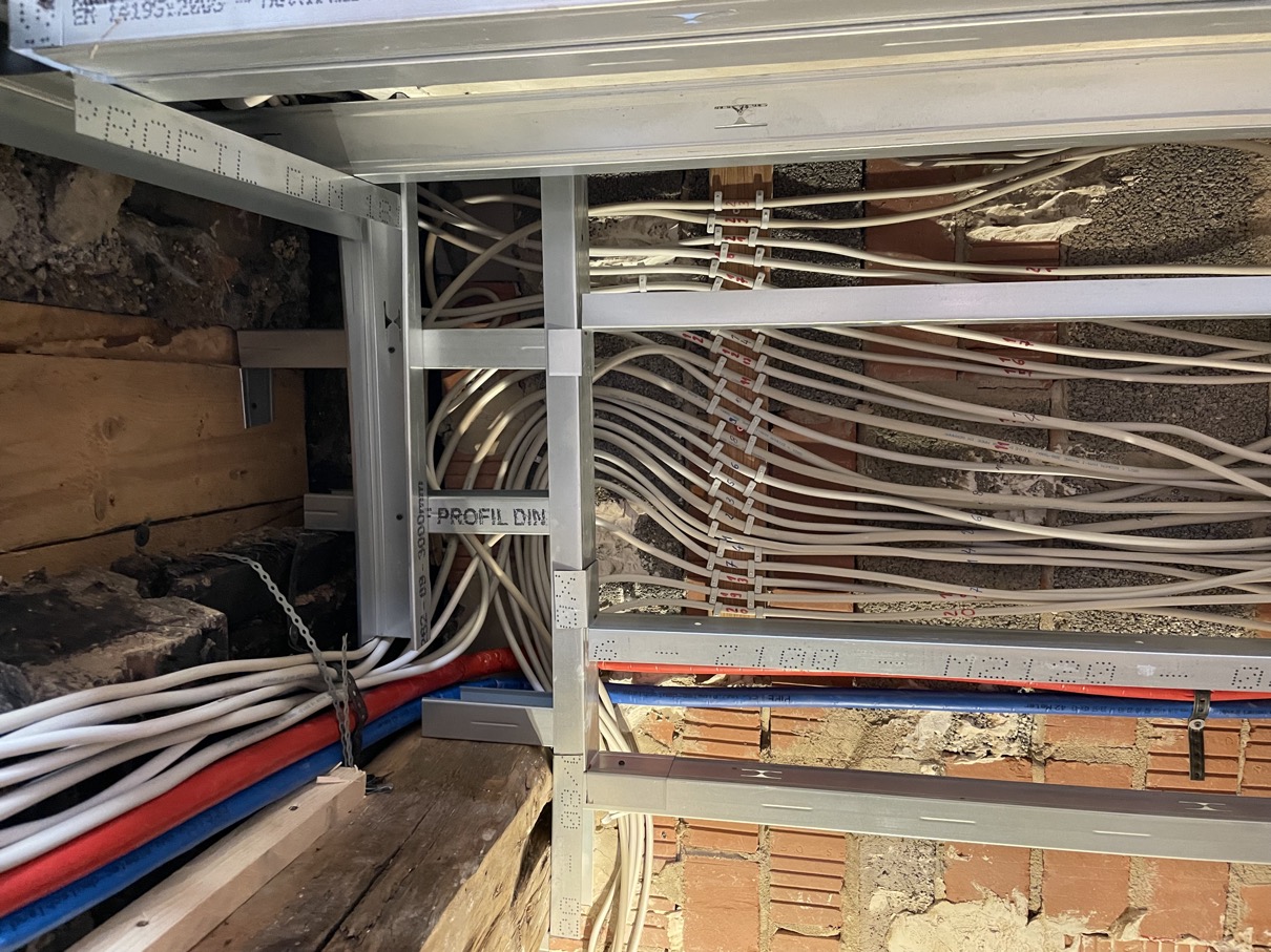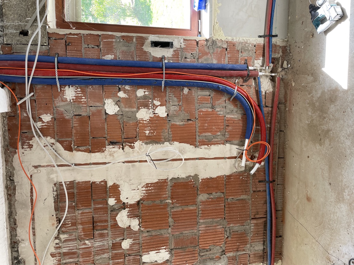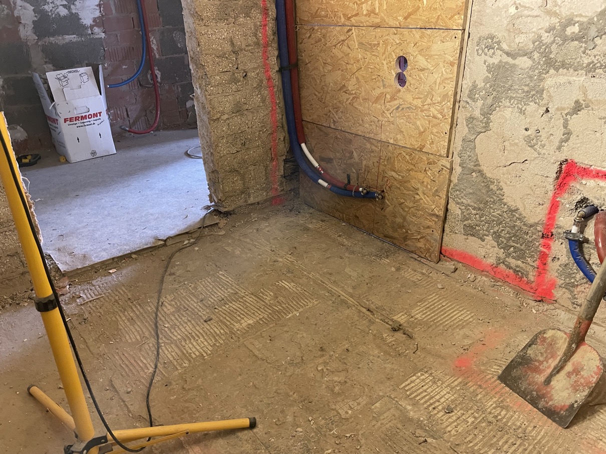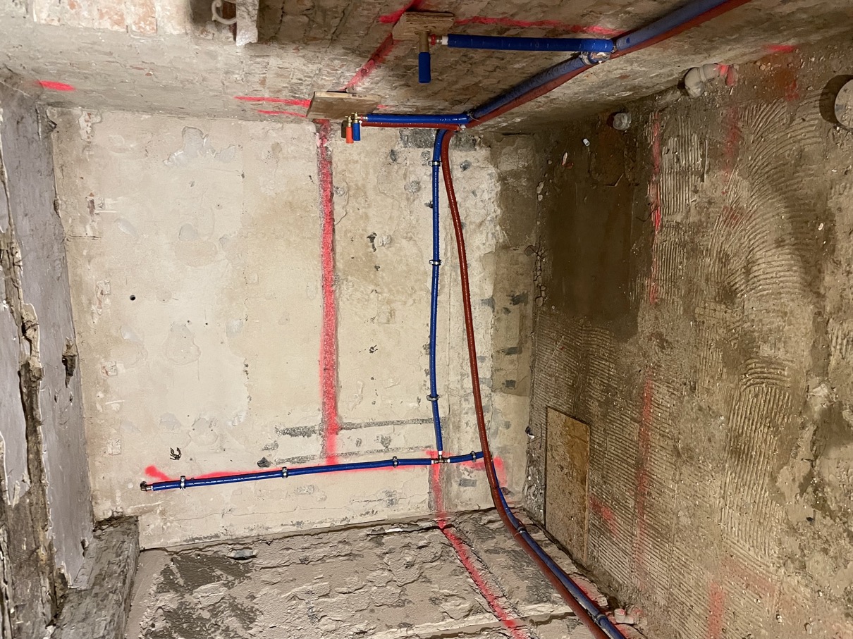 Fertigstellung der Hauptstromzuführungen von der Unterverteilung in die einzelnen Räume stand an und ebenfalls die Druckprüfung der Kaltwasserleitung.