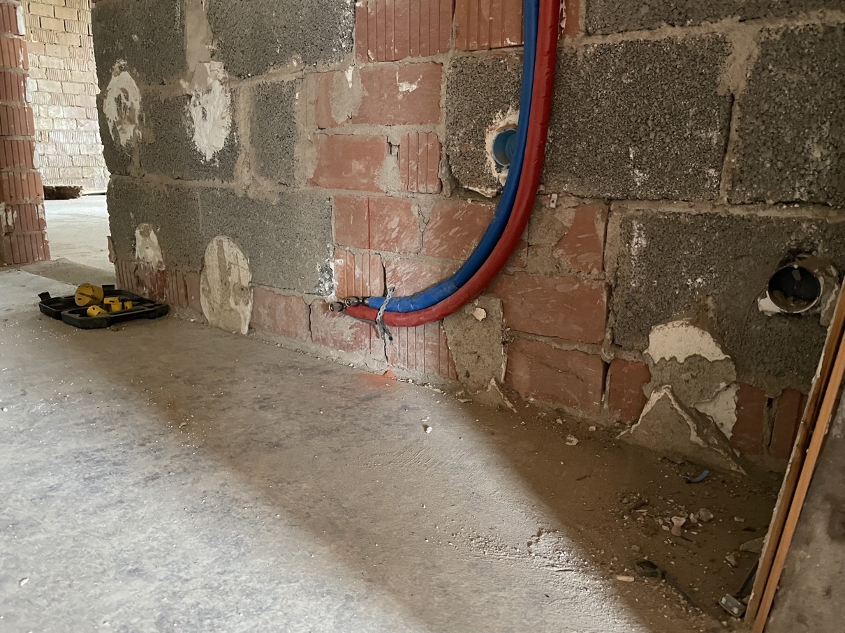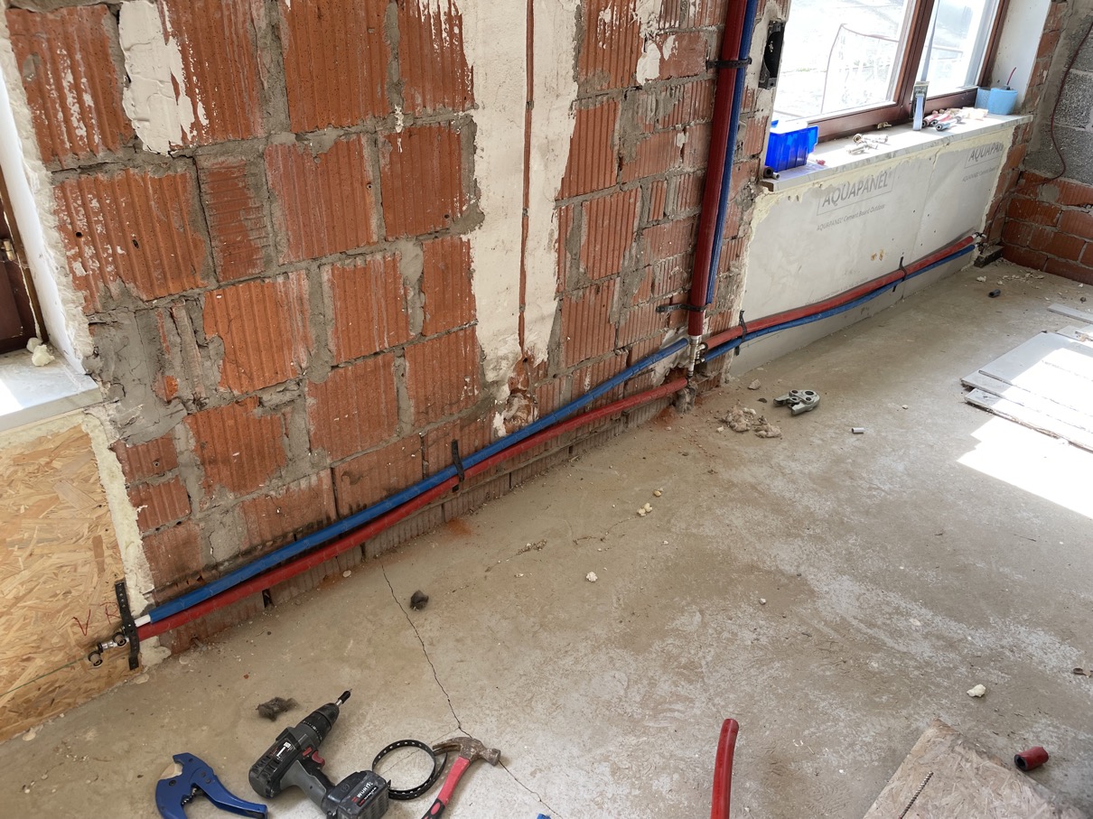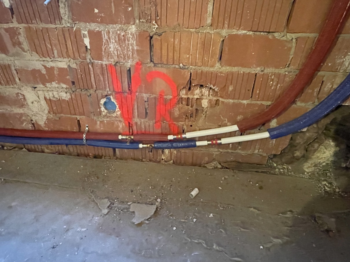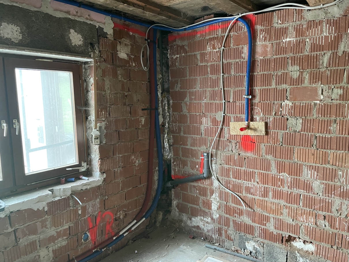 Heizungsrohre für Hauswirtschaftsraum und Durchführung zum Schlafzimmer |