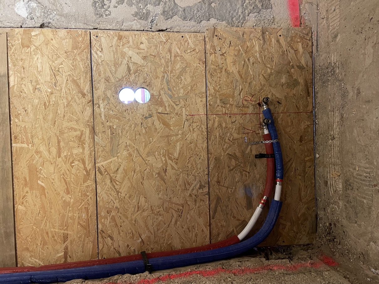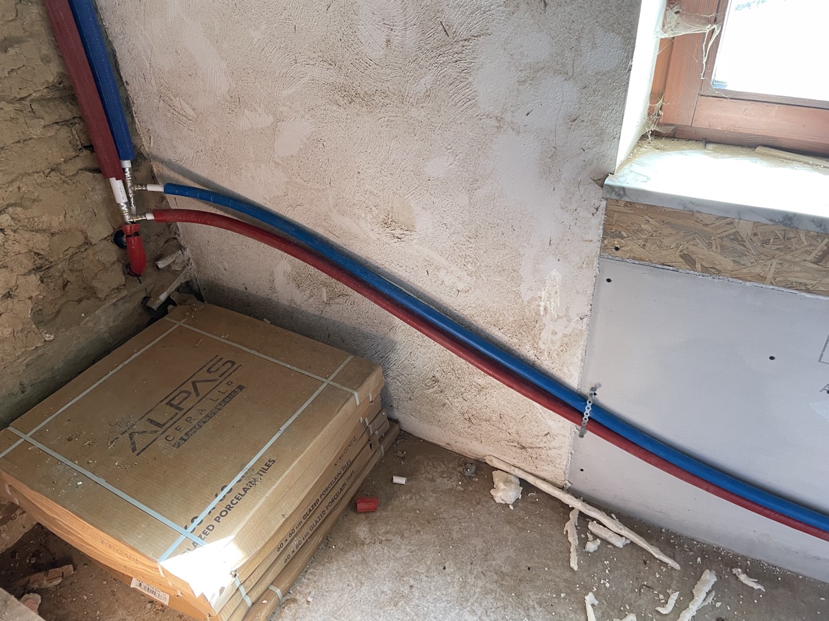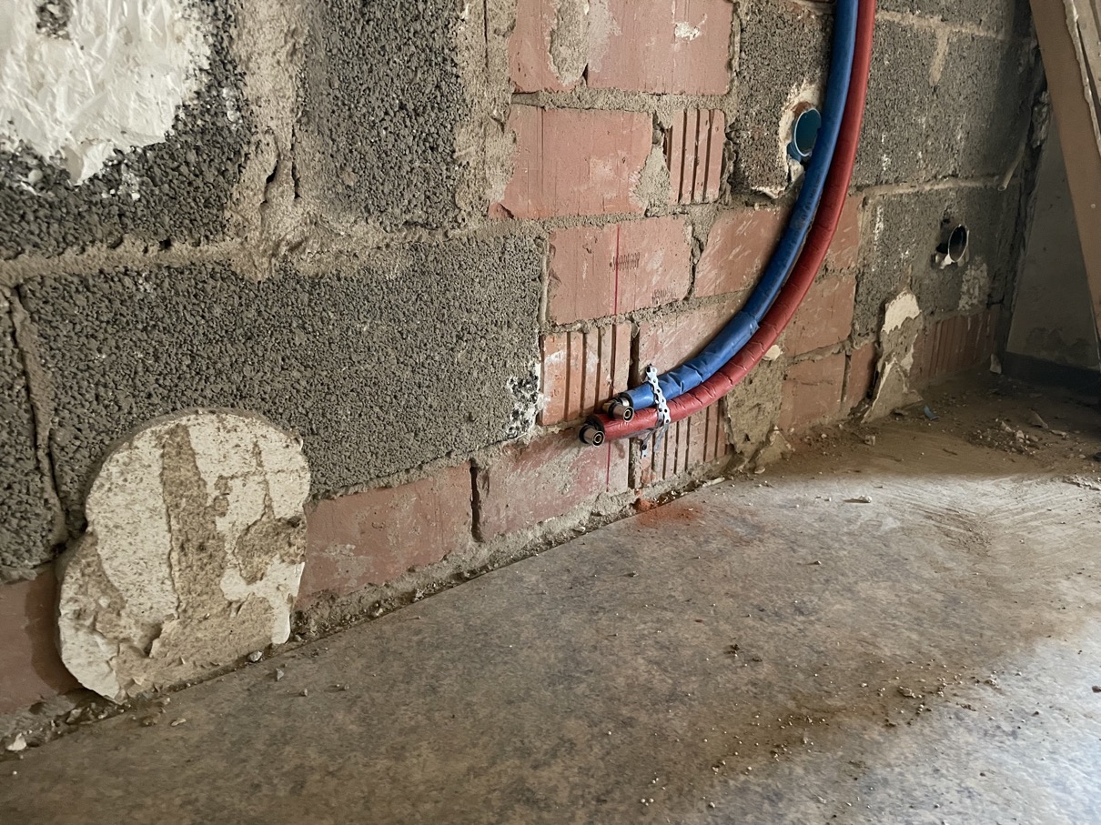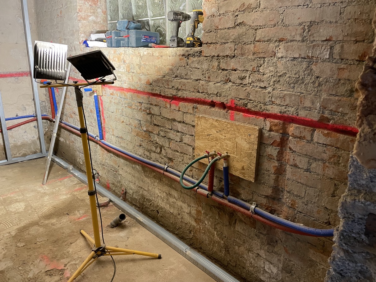 Heizungsrohre für Hauswirtschaftsraum und Durchführung zum Schlafzimmer |