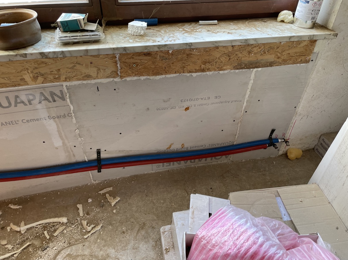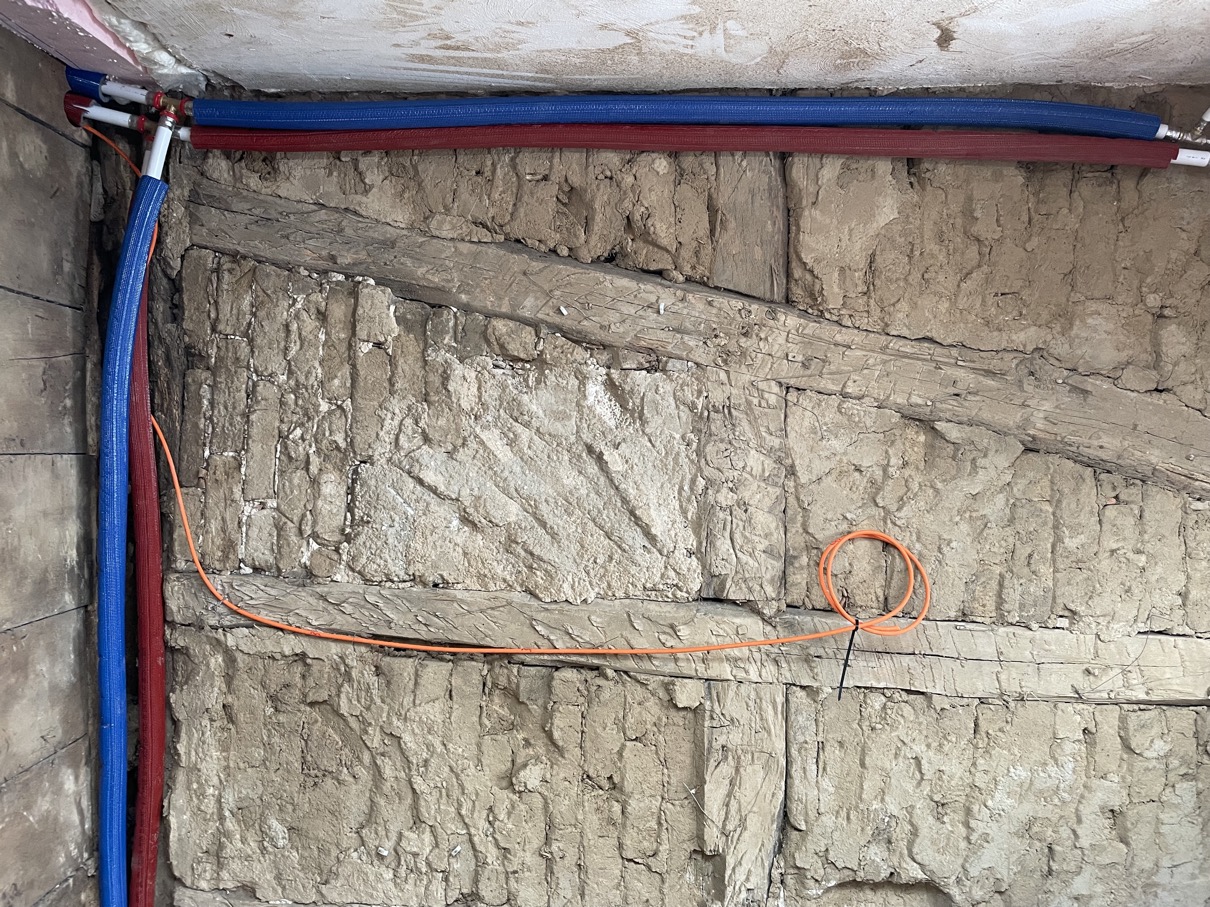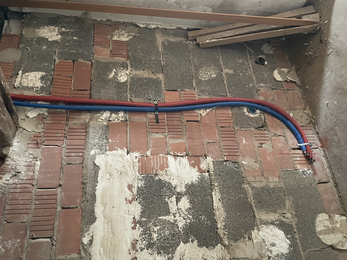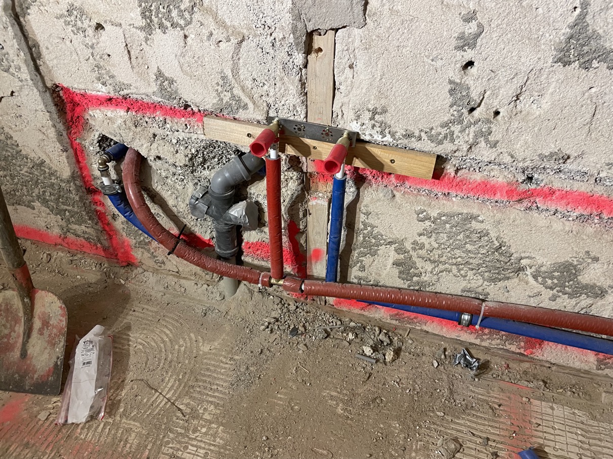 Heizungsrohre für Hauswirtschaftsraum und Durchführung zum Schlafzimmer |