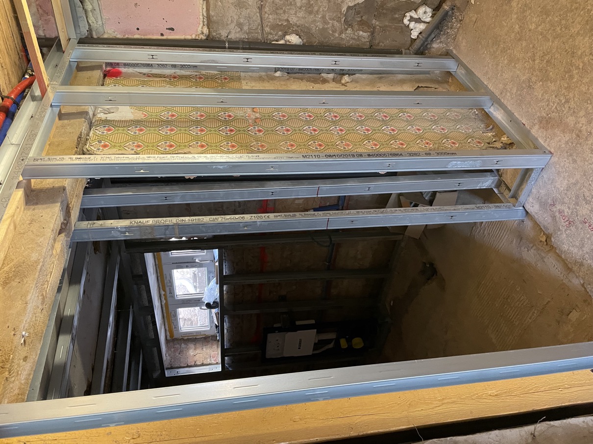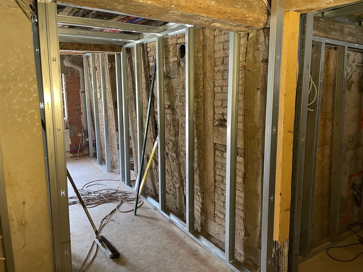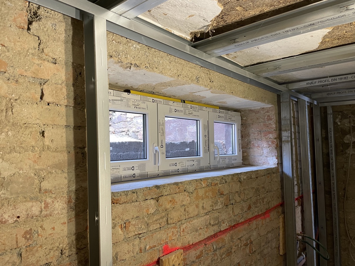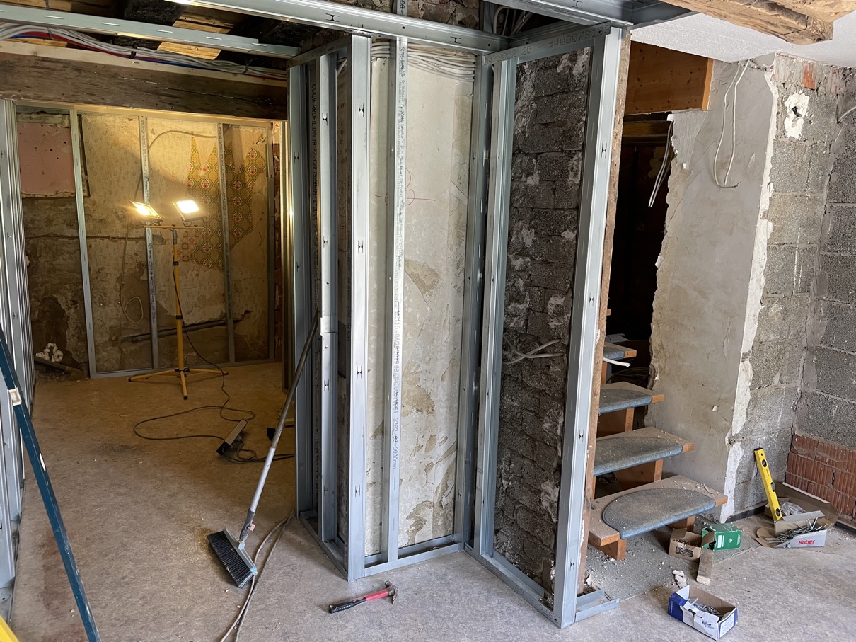 Doch bevor es damit losgeht - Stichwort "Trockenbau" - oder anders formuliert: der Versuch aus dem unwinkligen Gebäude eine gute winklige Struktur zu geben: