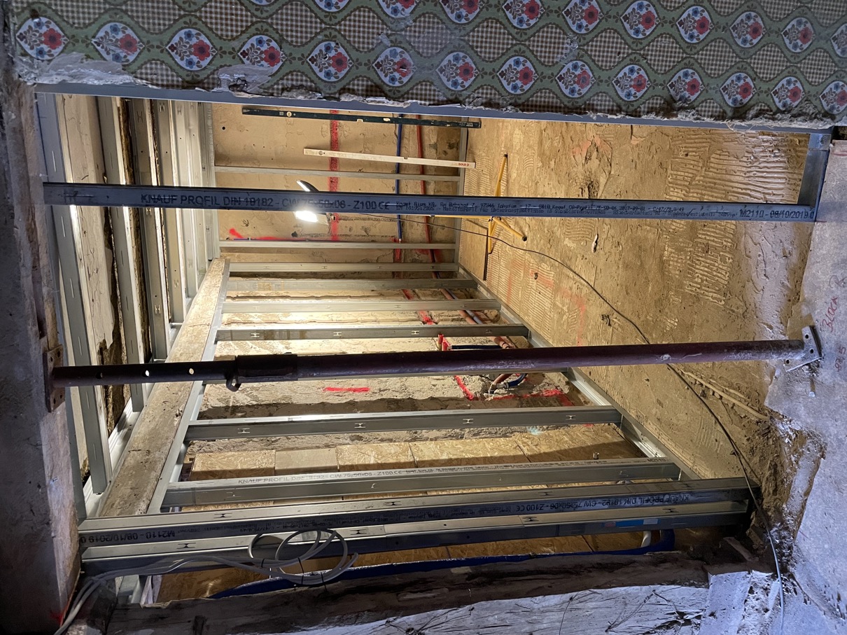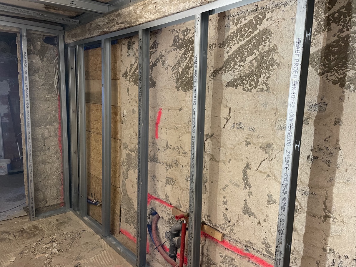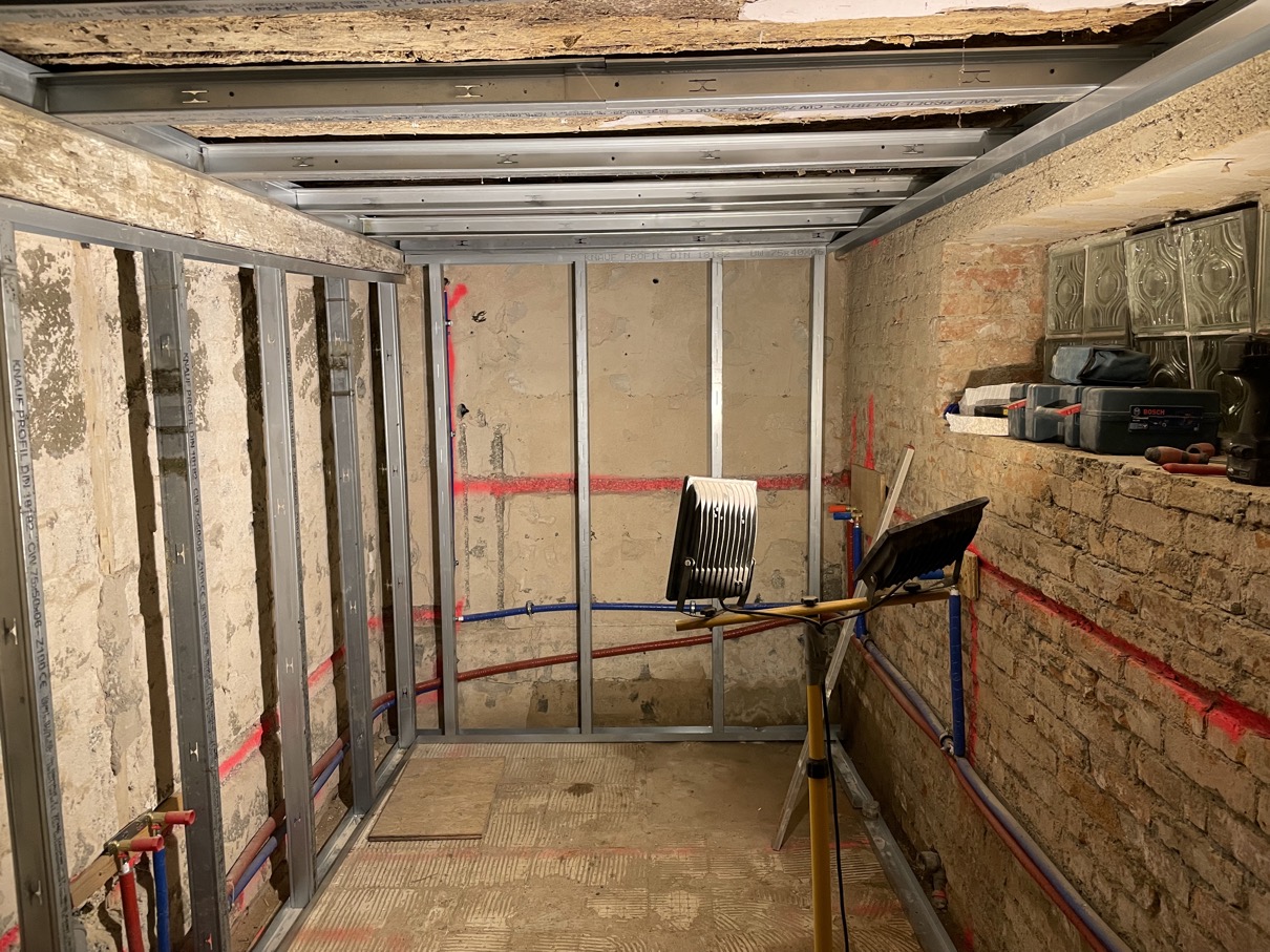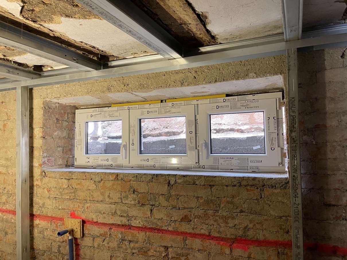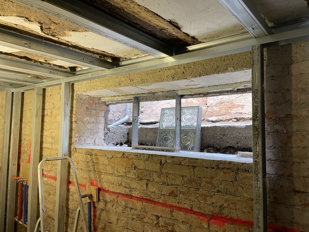 Doch bevor es damit losgeht - Stichwort "Trockenbau" - oder anders formuliert: der Versuch aus dem unwinkligen Gebäude eine gute winklige Struktur zu geben: