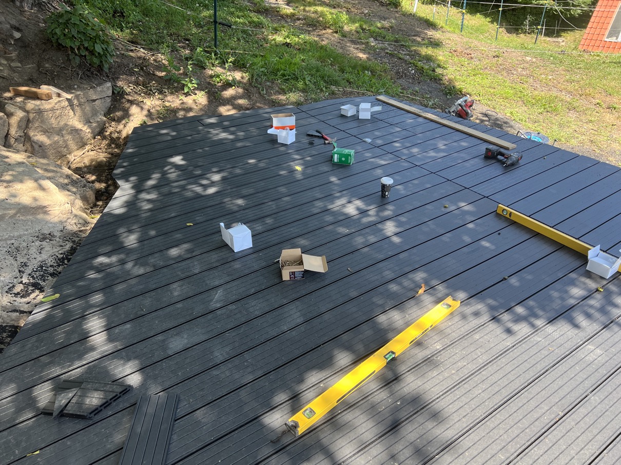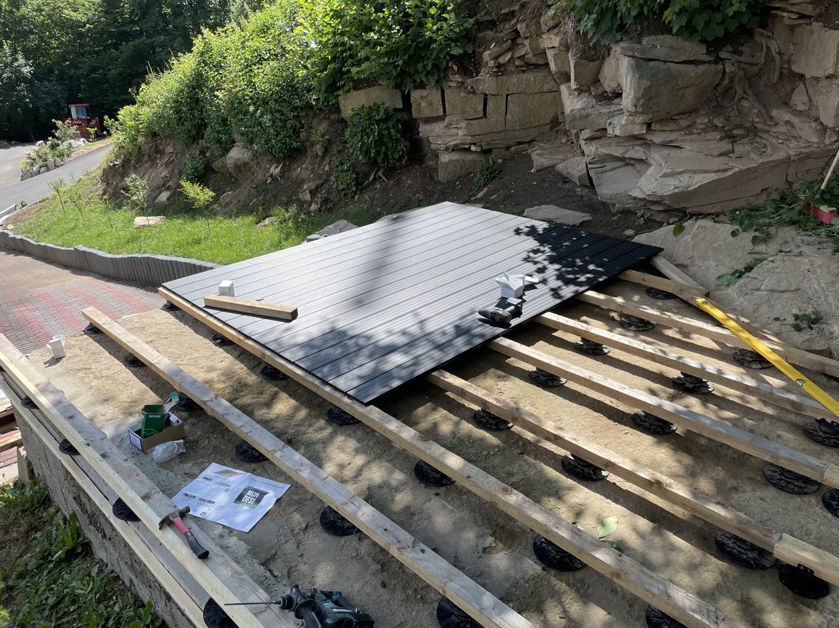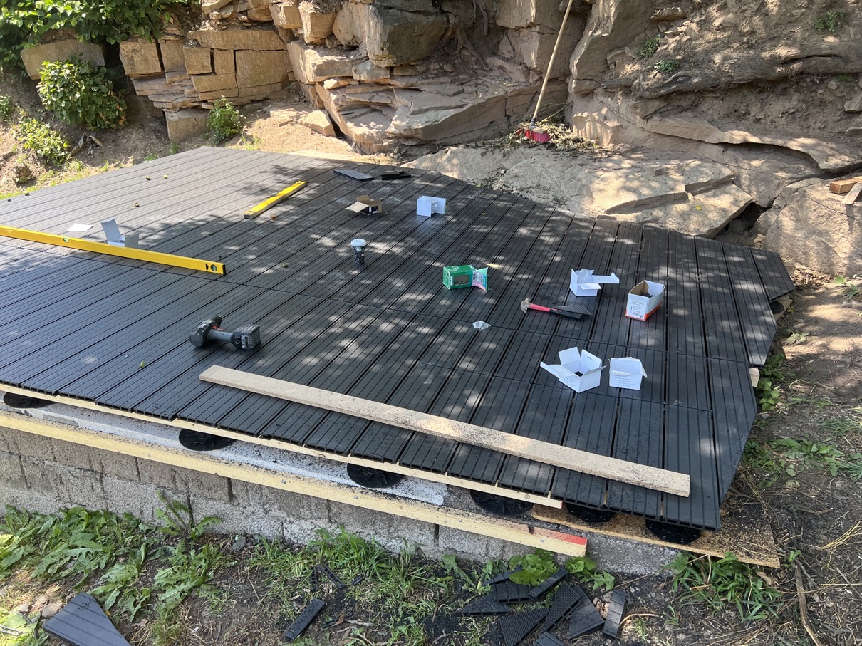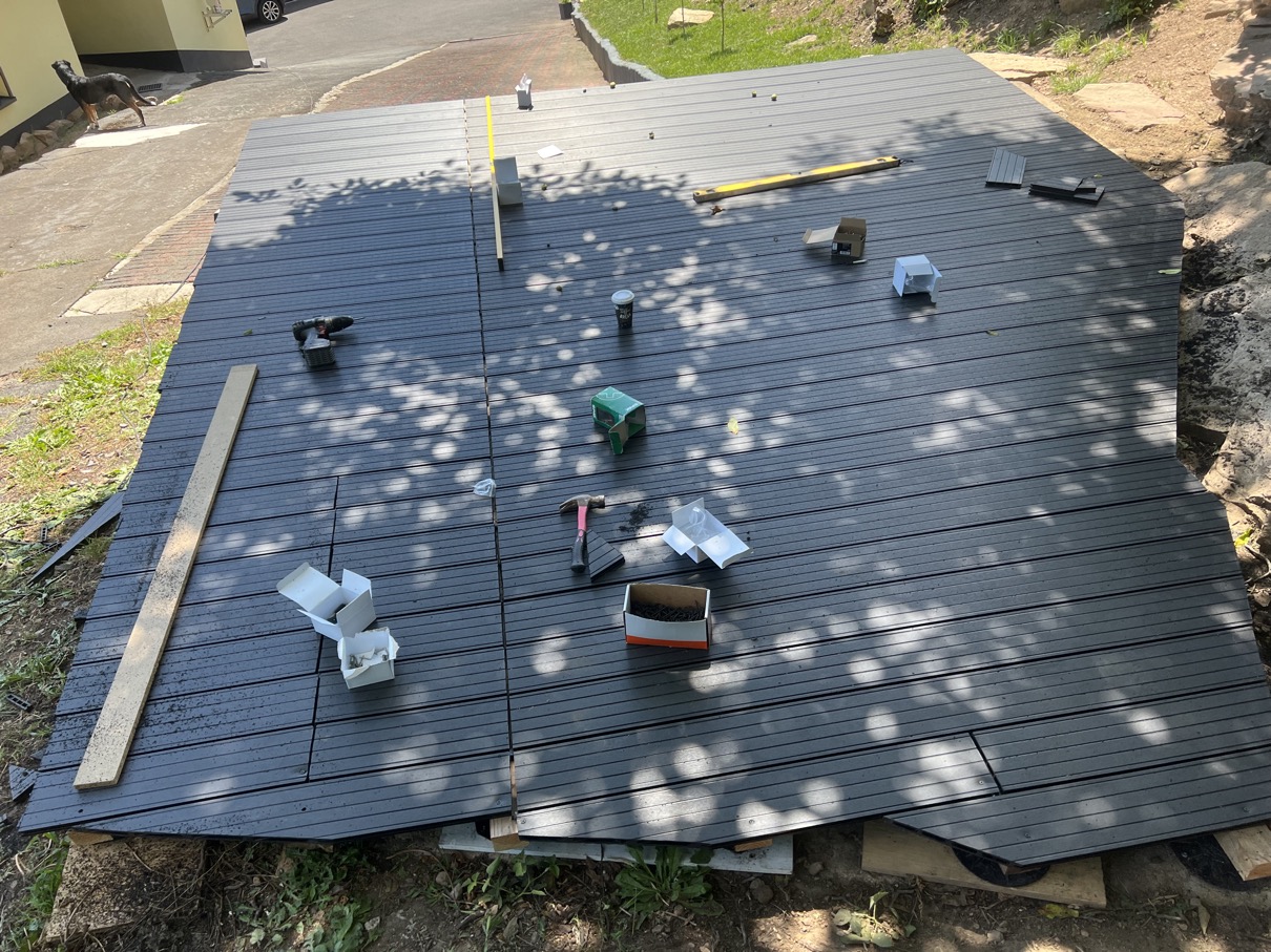 der Freisitz ist nicht winklig, daher muss ich die Ausrichtung anpassen -> dazu fehlen wir aber noch Stelzlager, die ich erst noch bestellen muss. |
