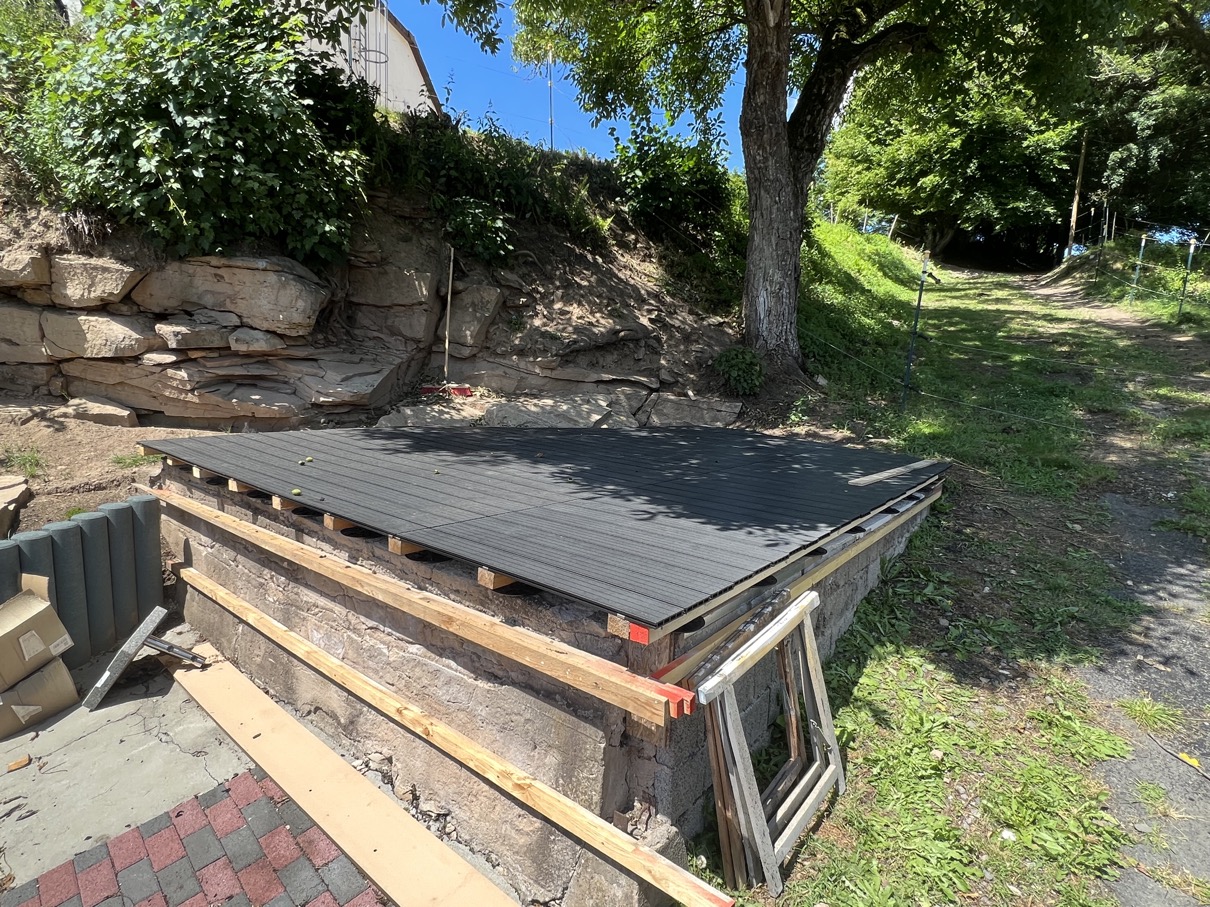jetzt muss ich mir noch die Verkleidung außen herum einfallen lassen ... ich denke, ich werde Profilholzbretter nehmen und diese dann anthrazit streichen sowie eine umlaufenden Abschluss anbringen. |