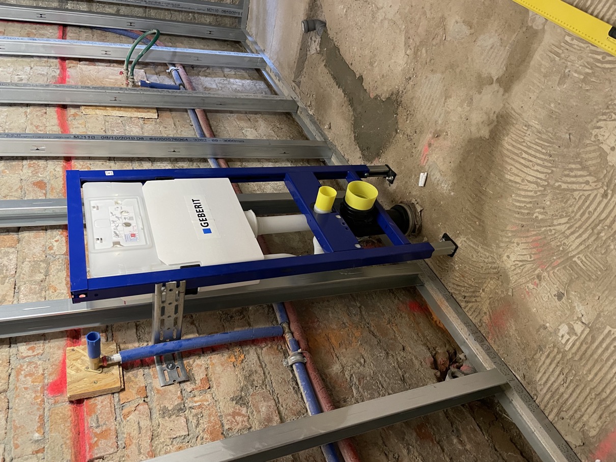 Da der Einbau doch schneller erfolgen konnte als ich zunächst angenommen hatte -- konnte ich auch noch die Grundinstallation des Vorwand-Bad-Elementes vornehmen: