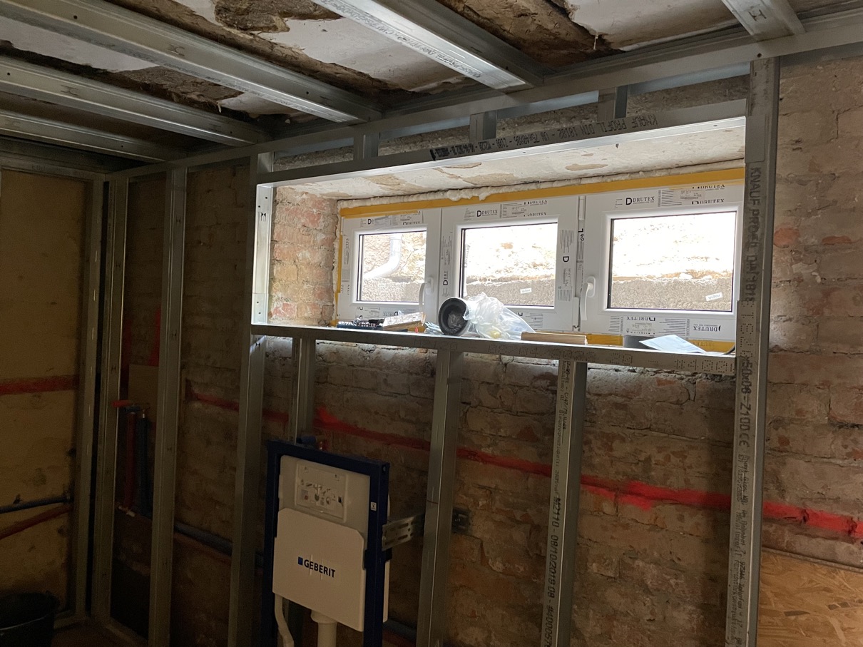 Dann mußten auch noch Kleinigkeiten im Bad fertiggestellt werden - Einhausung des Fensters, damit eine ordentliche Beplankung mit Rigips gewährleistet ist.