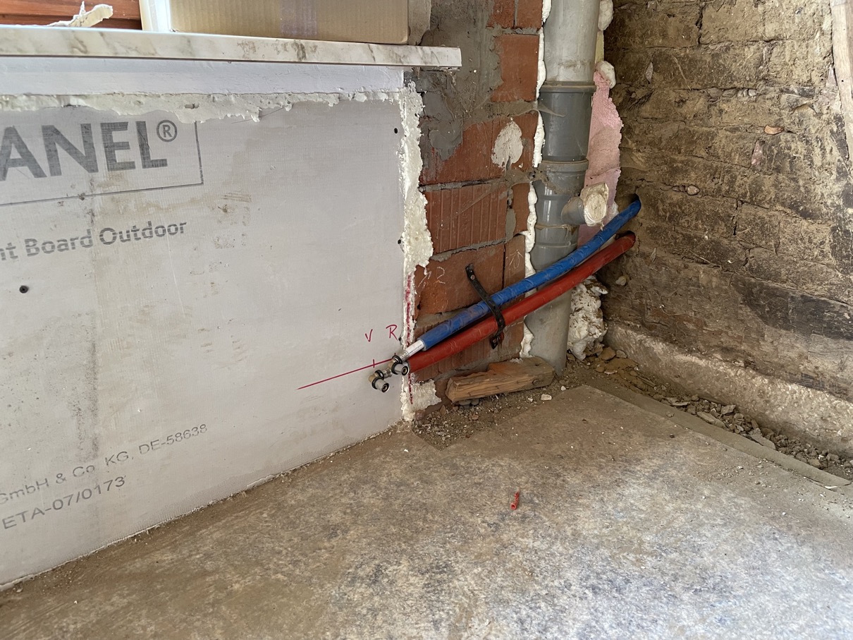 ...und natürlich waren nicht alle Verbindungen bei der Druckprüfung dicht .... hier mal exemplarisch im Bad. Alles entsprechend nachgearbeitet .... dicht! Damit das Thema "Kaltwasser" auch erst mal abgeschlossen.