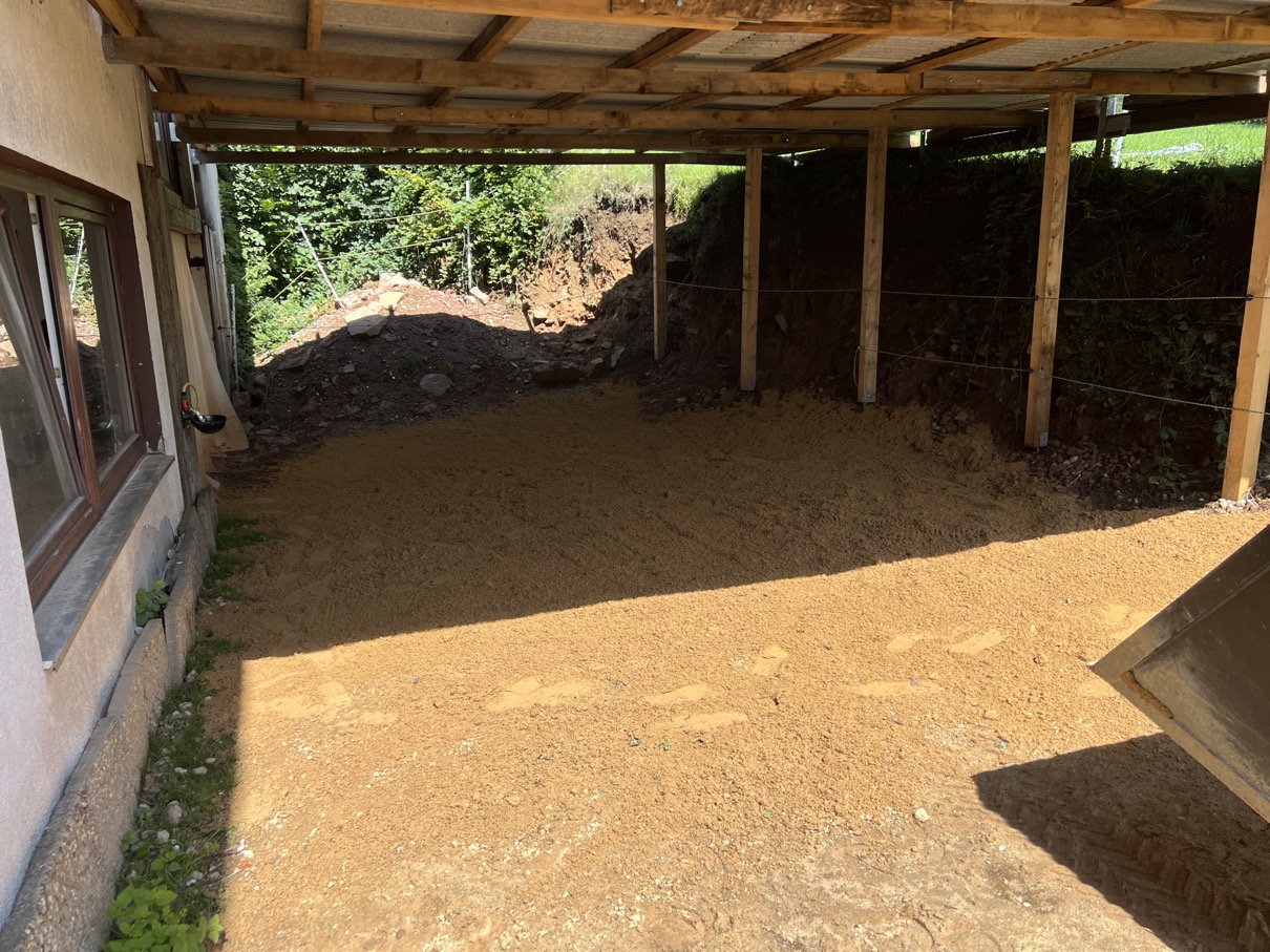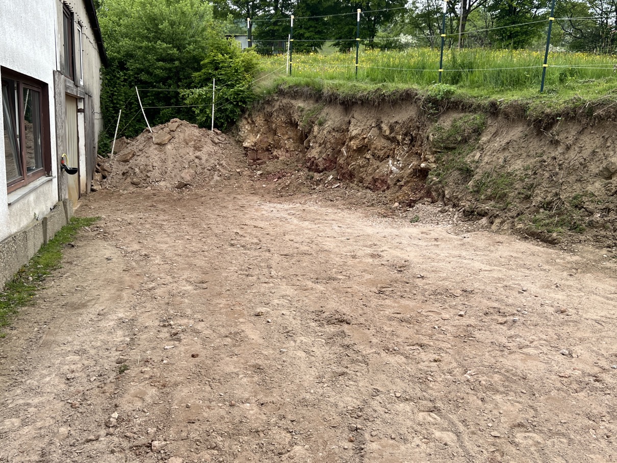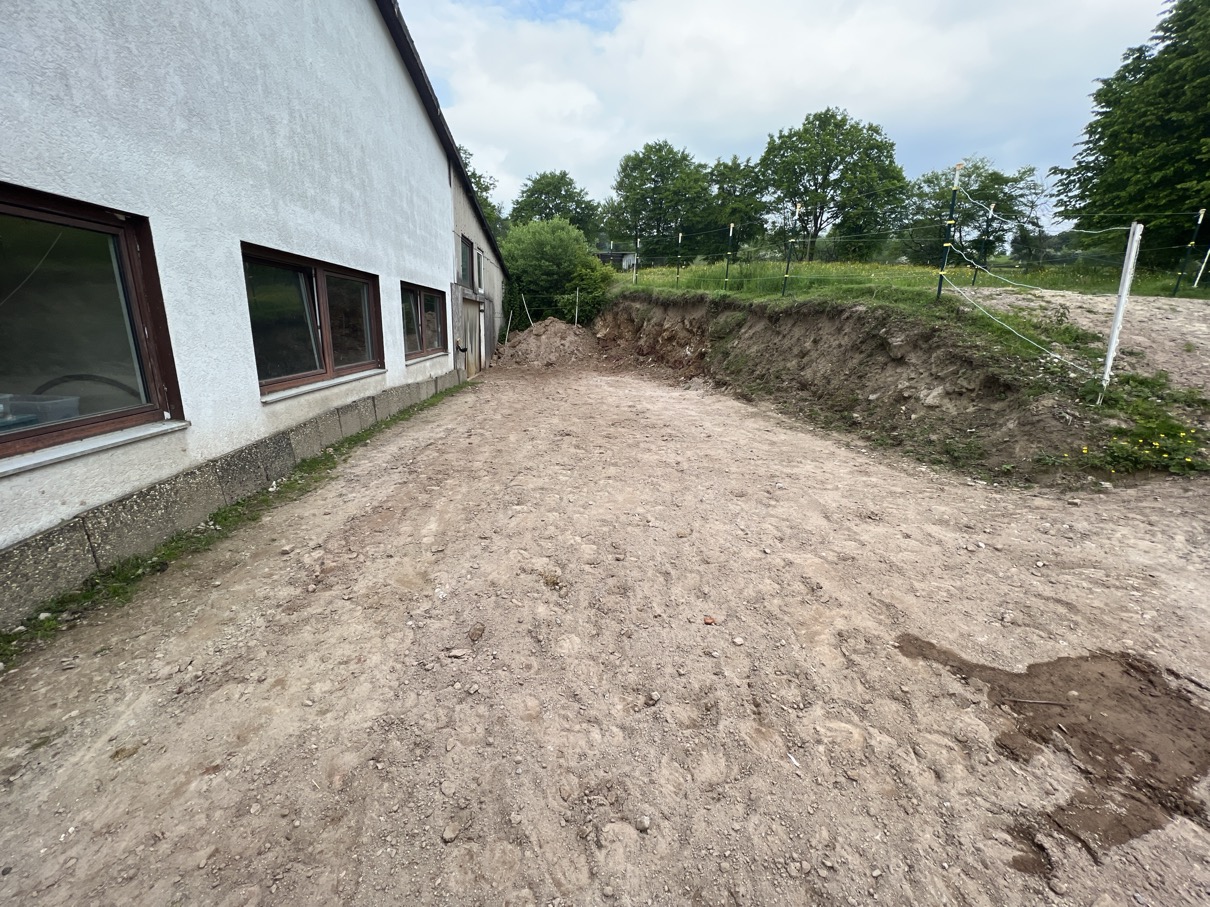 Die ersten Arbeiten hierzu fanden im Mai 2023 statt mit einem leichten Vergrößern der Freifläche vor dem Eingang zum Offenstall: