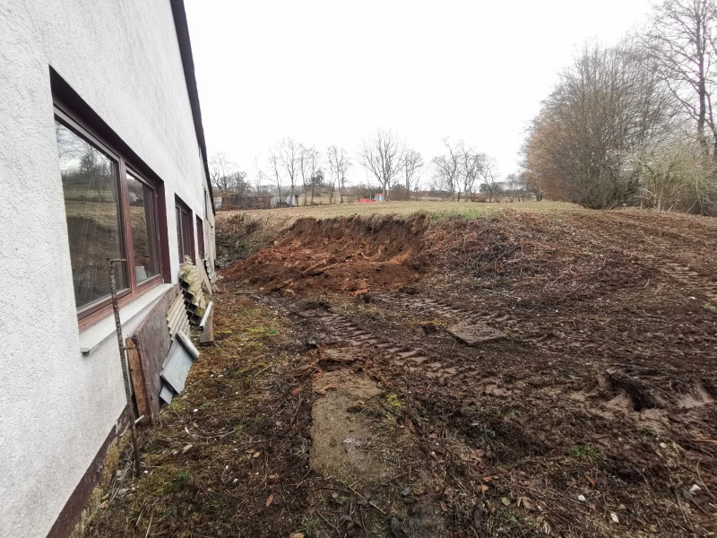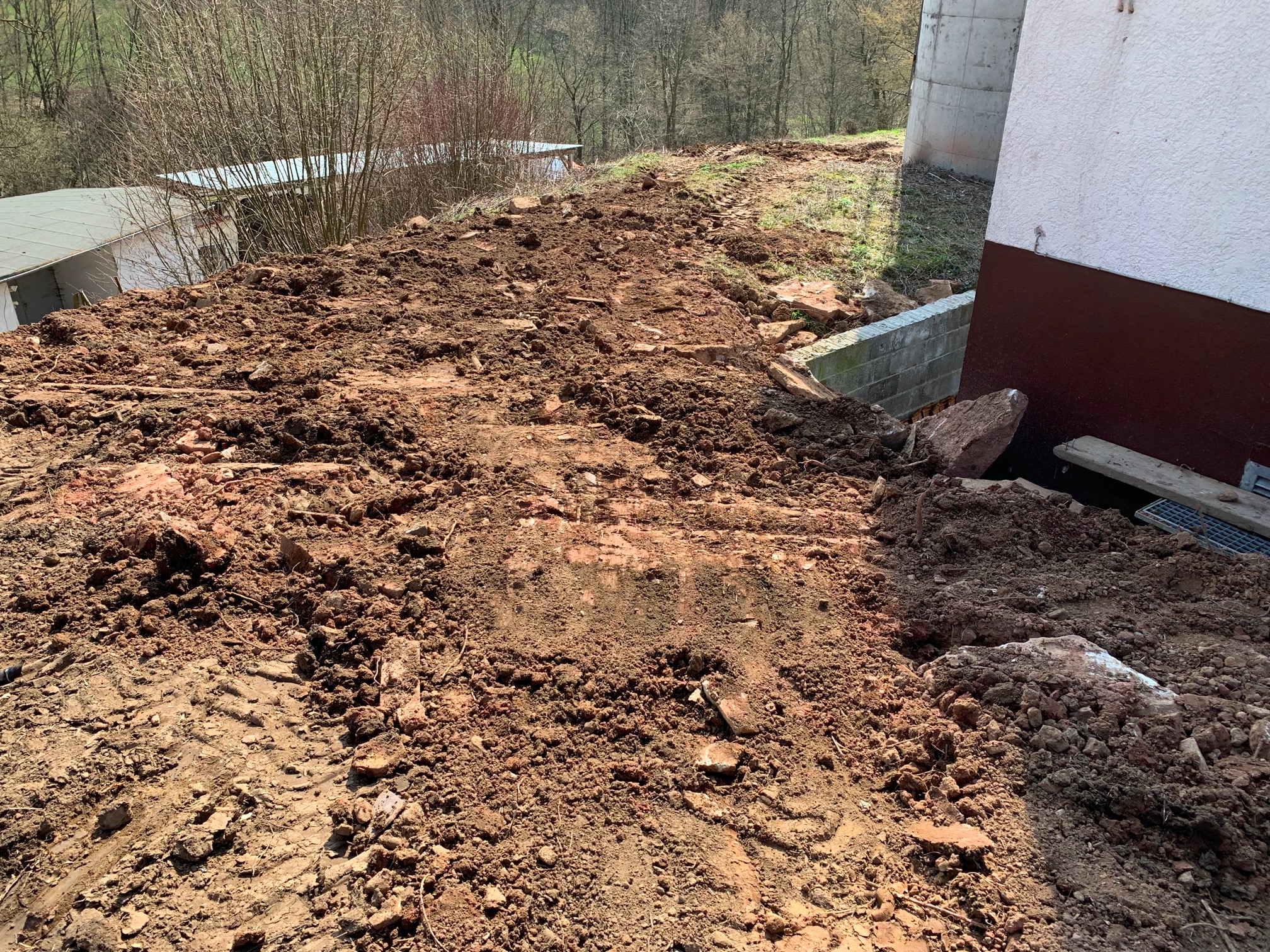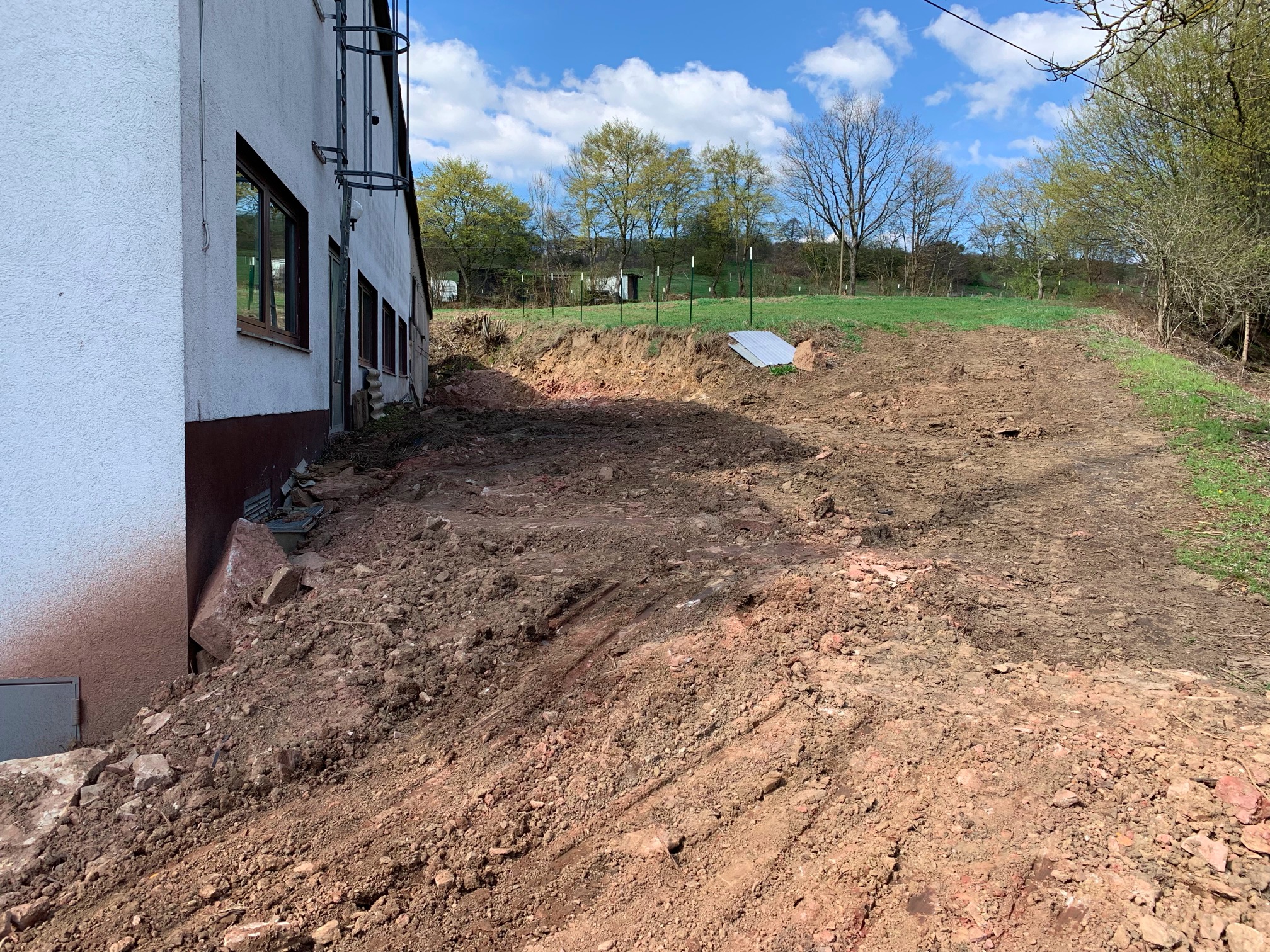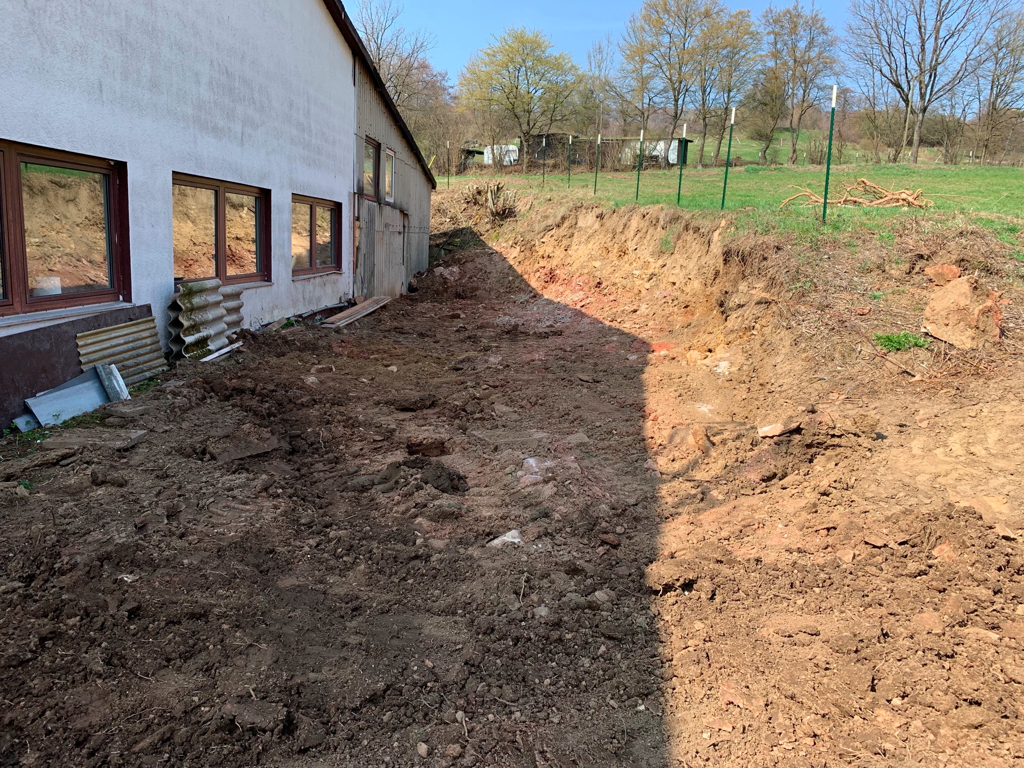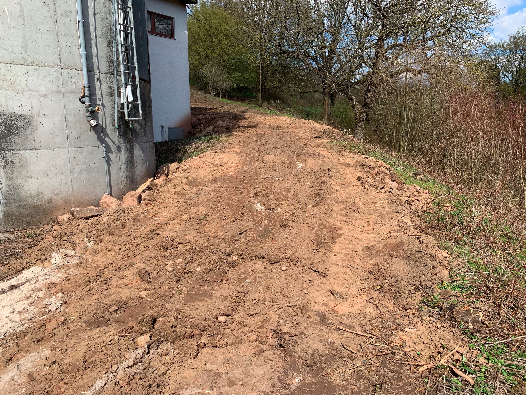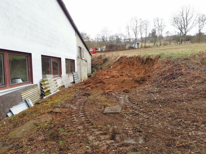 Erdreich leicht abgetragen und (der Einfachheit halber) nach vorne geschoben (meinem Baggerlader sei Dank 😄) |