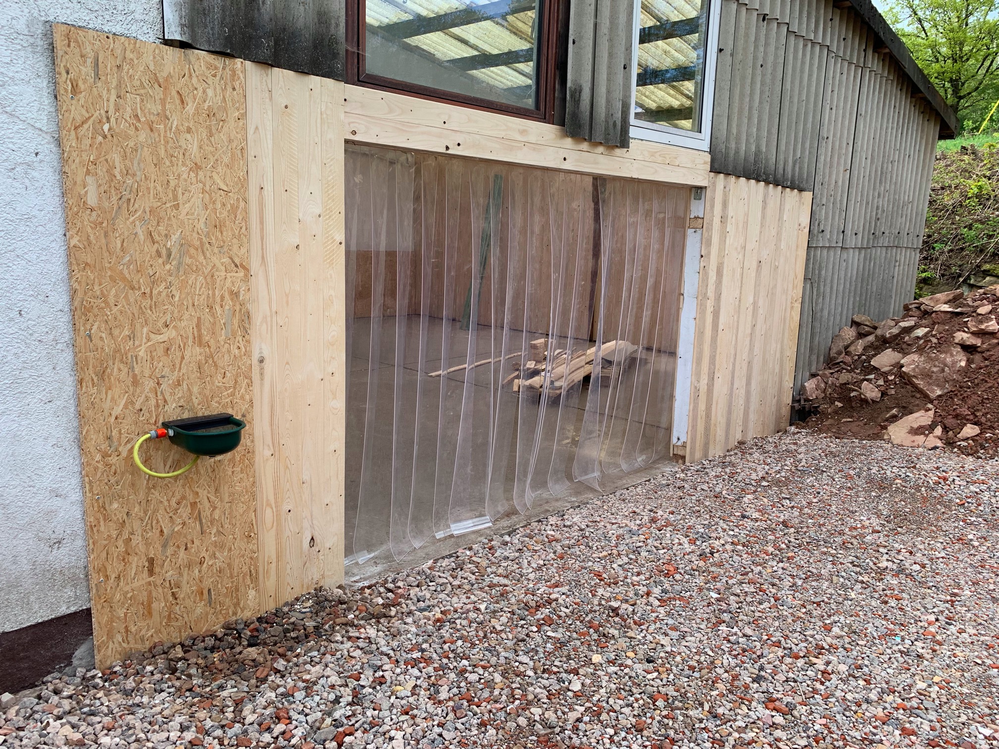 Heißt aber auch, dass jetzt der eigentliche Ausgang vom Offenstall zum Paddock gebaut werden kann --- na, hier ist er: