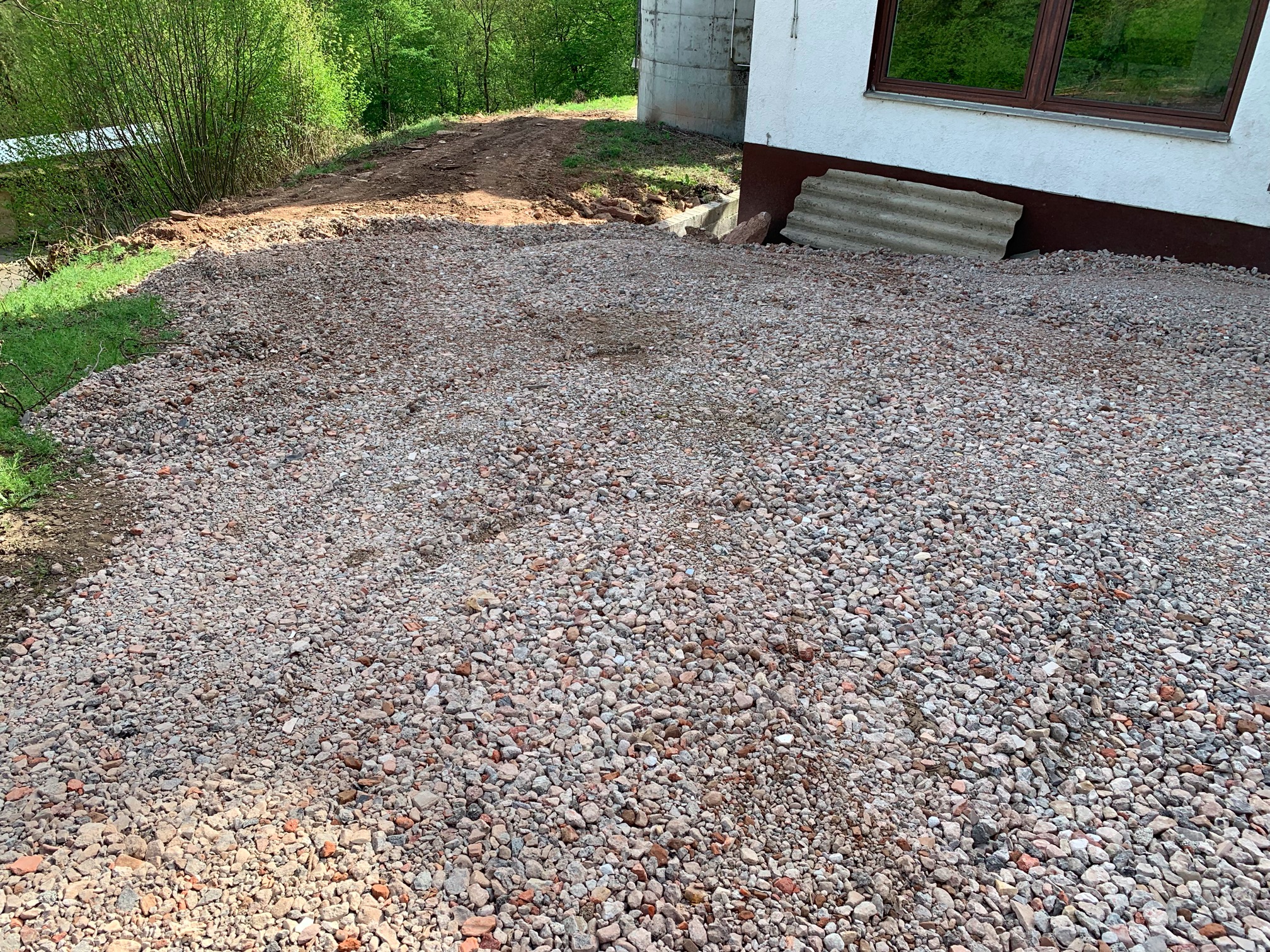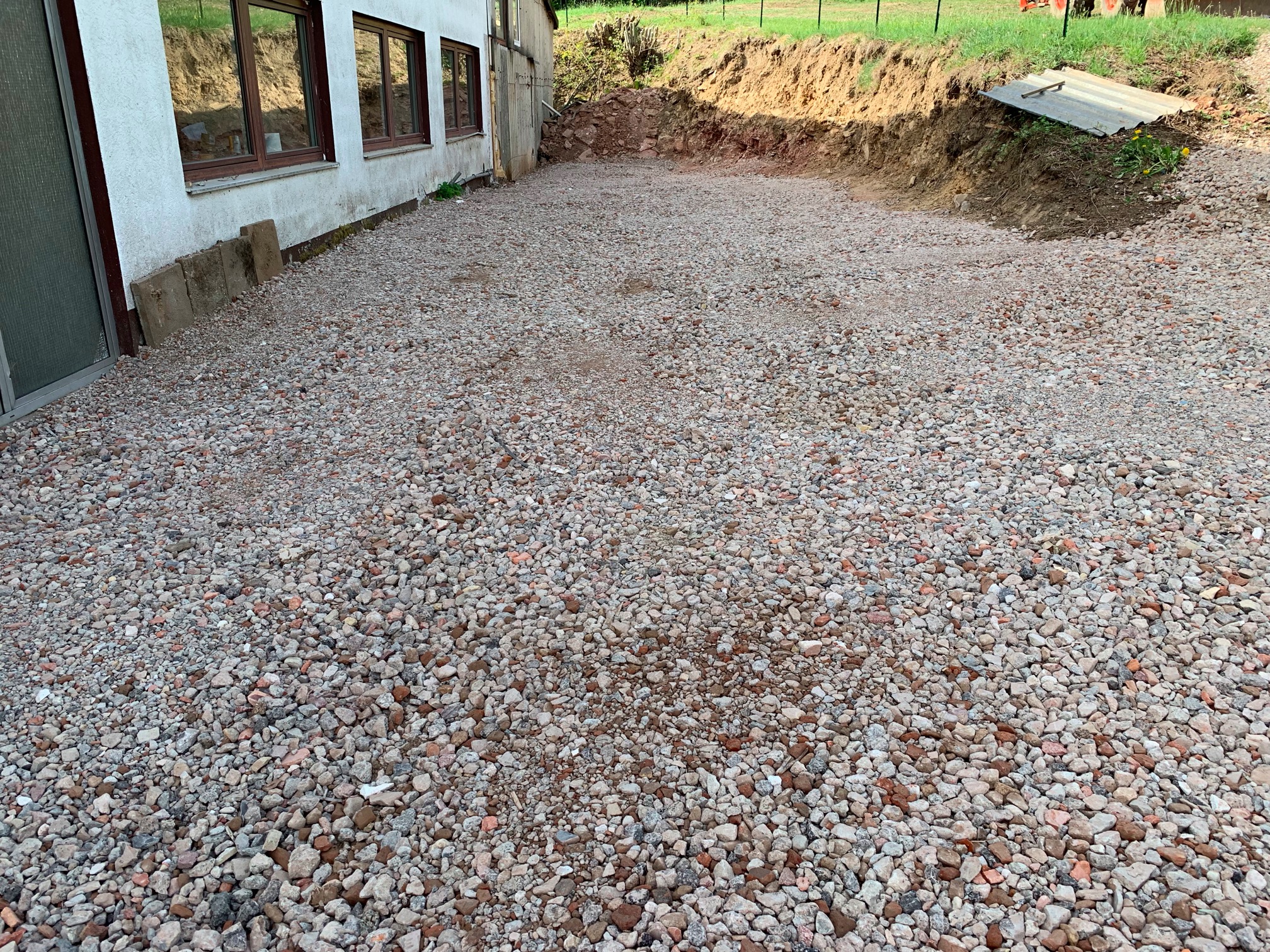 Hierauf soll jetzt noch mal eine Lage (48 to) Recycling-Sand (0/5) aufgebracht werden -- ist auch schon bestellt, muss aber noch geliefert werden.