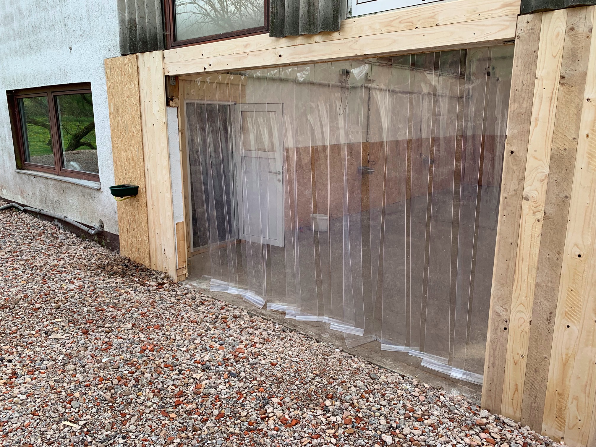 ... und wenn man (also ich) schon mal dran ist, kann auch noch "schnell" eine Außentränke zusätzlich installiert werden, damit "die armen Tiere" nicht wegen eines Schlucks Wasser immer durch den Vorhang müssen