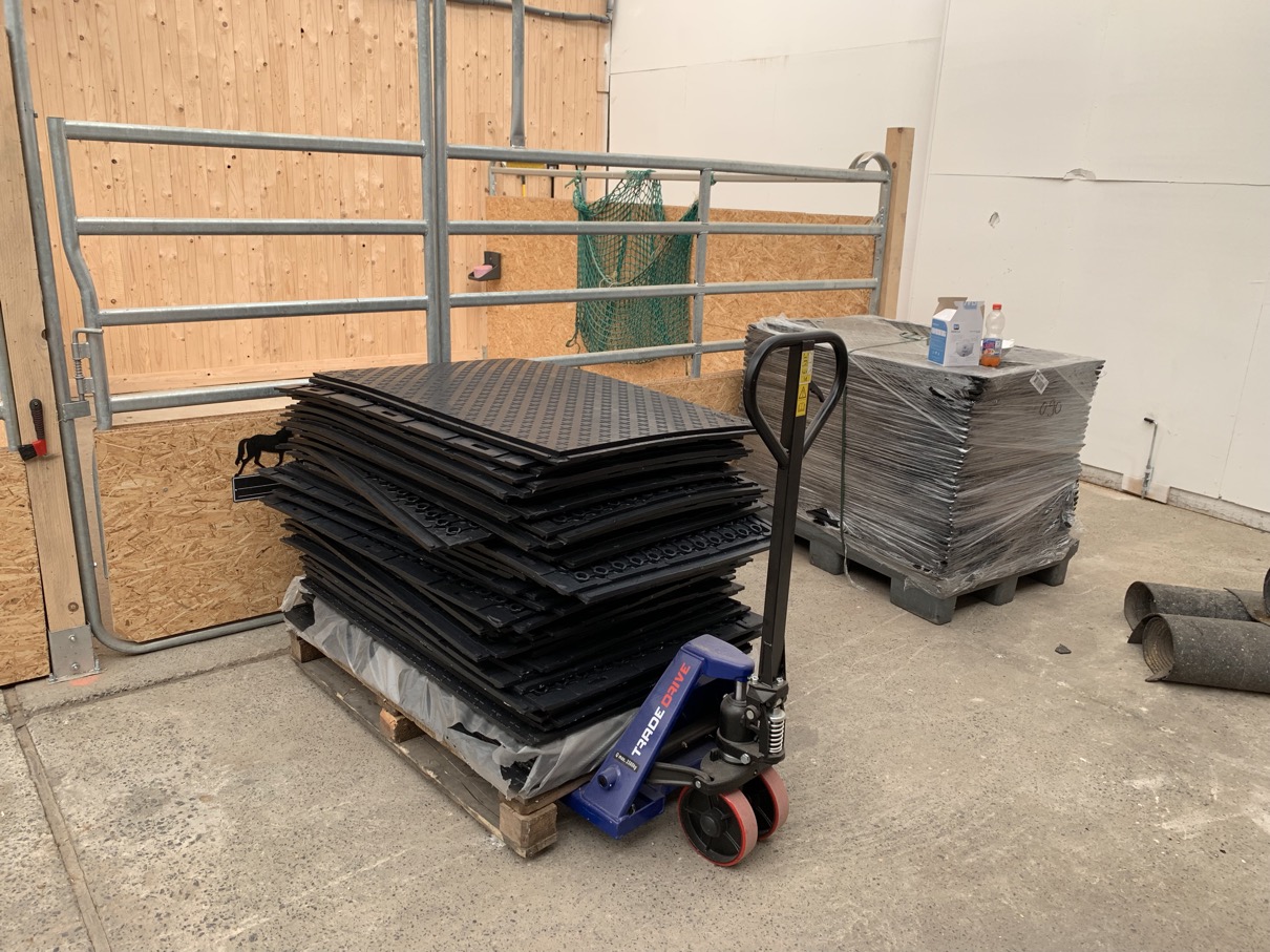 Hilft nichts -> auch die Gummibahnen müssen wieder entfernt werden und durch "richtige" Stallmatten ersetzt werden - und wenn wir schon mal dran sind werden auch gleich die vier Ställe mit Gummimatten ausgelegt: