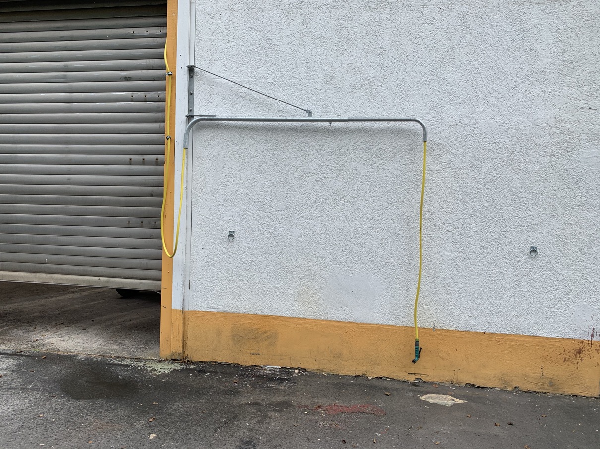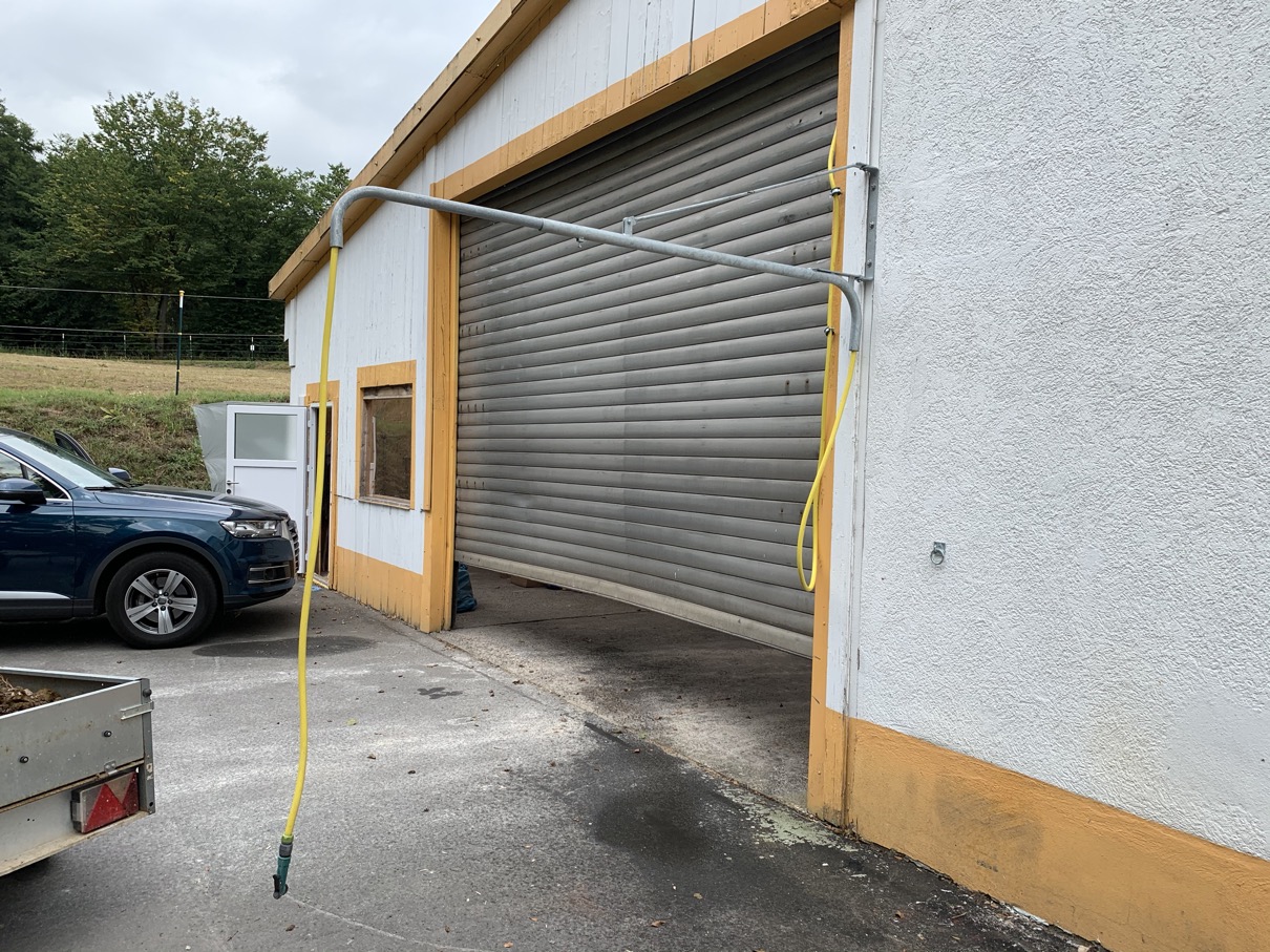 die Pferde können somit aus dem Stallbereich direkt zur Außendusche geführt und ggf. angehalftert angebunden werden, um dann die Dusche zu genießen ..... tuto bene 👌