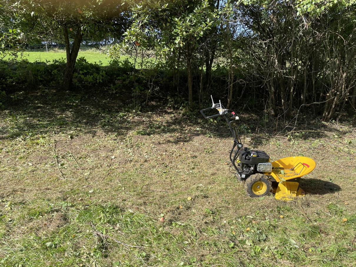kann ich aber nicht mit dem Traktor/Mulcher bewältigen (zu steil - geht nur mit dem Tellermäher; das jedoch funktioniert ausgezeichnet). |